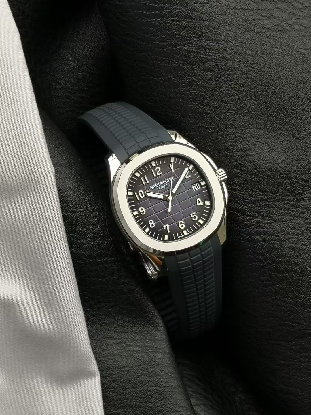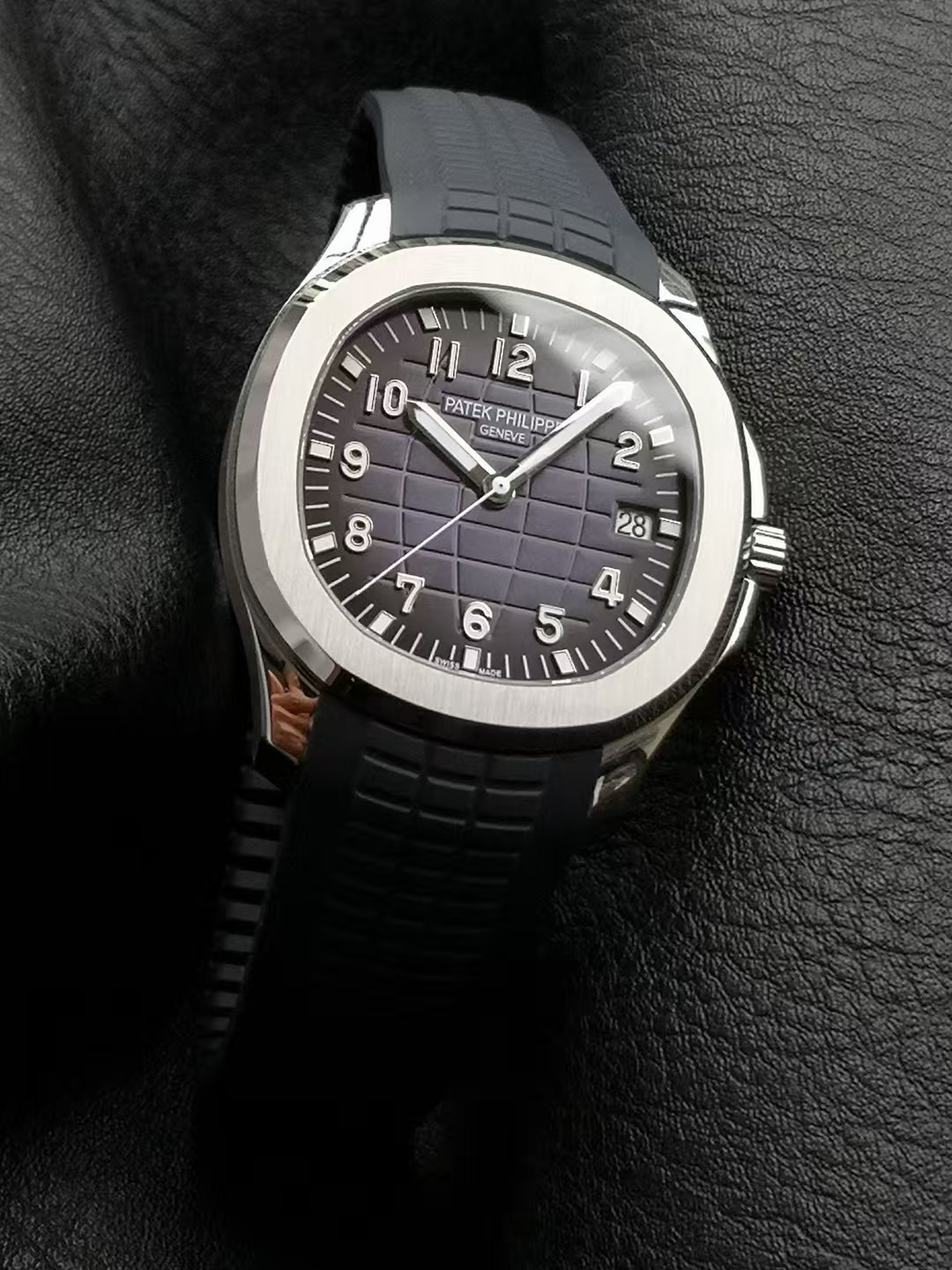 这款手表是AAAAA 1:1 质量 (非常棒). 使用了和原版一模一样的材料. 商标部分也保持了和百达翡丽/Patek Philippe一样. 图片拍摄是实物手表拍摄, 您所收到的实物保证和我们图片一模一样.