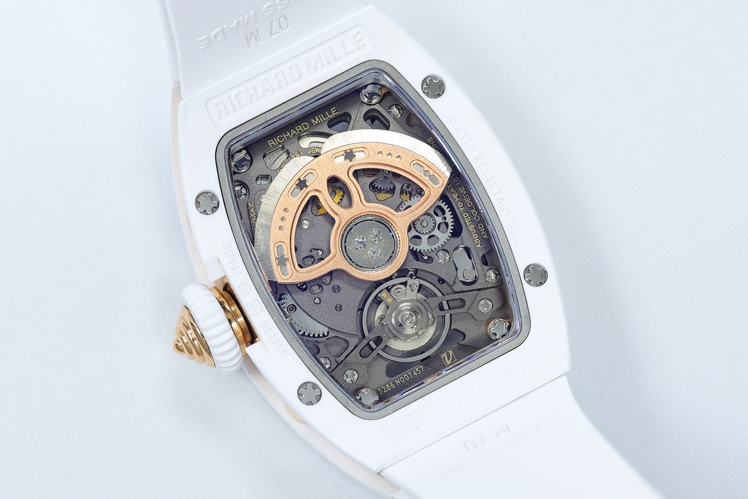 这款手表是AAAAA 1:1 质量 (非常棒). 使用了和原版一模一样的材料. 商标部分也保持了和理查德·米尔/Richard Mille一样. 图片拍摄是实物手表拍摄, 您所收到的实物保证和我们图片一模一样.