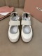 这款鞋子是AAAAA 1:1 质量 (非常棒). 使用了和原版一模一样的材料. 商标部分也保持了和缪缪/Miu Miu一样. 图片拍摄是实物鞋子拍摄, 您所收到的实物保证和我们图片一模一样.