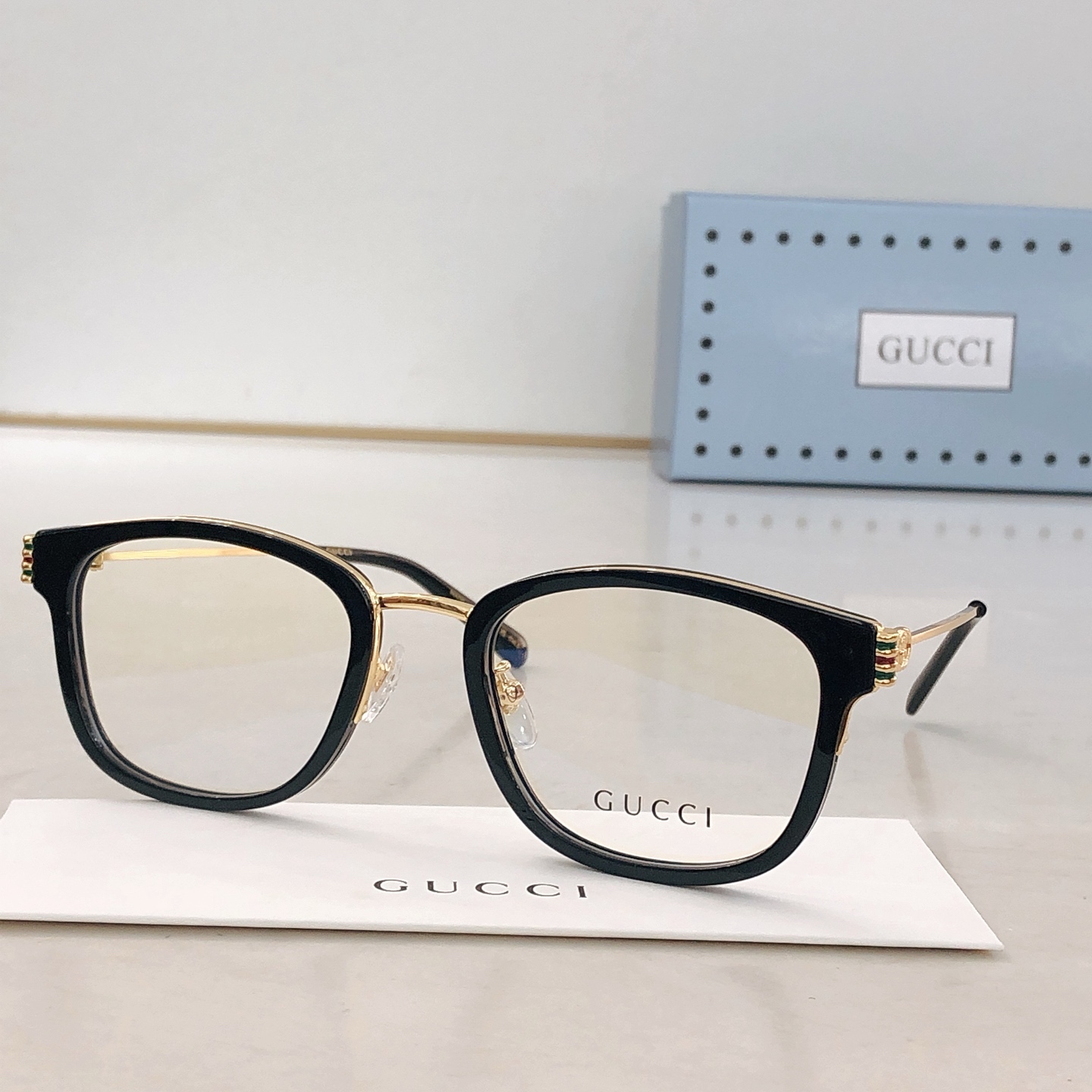 这款太阳眼镜是AAAAA 1:1 质量 (非常棒). 使用了和原版一模一样的材料. 商标部分也保持了和古奇/Gucci一样. 图片拍摄是实物太阳眼镜拍摄, 您所收到的实物保证和我们图片一模一样.