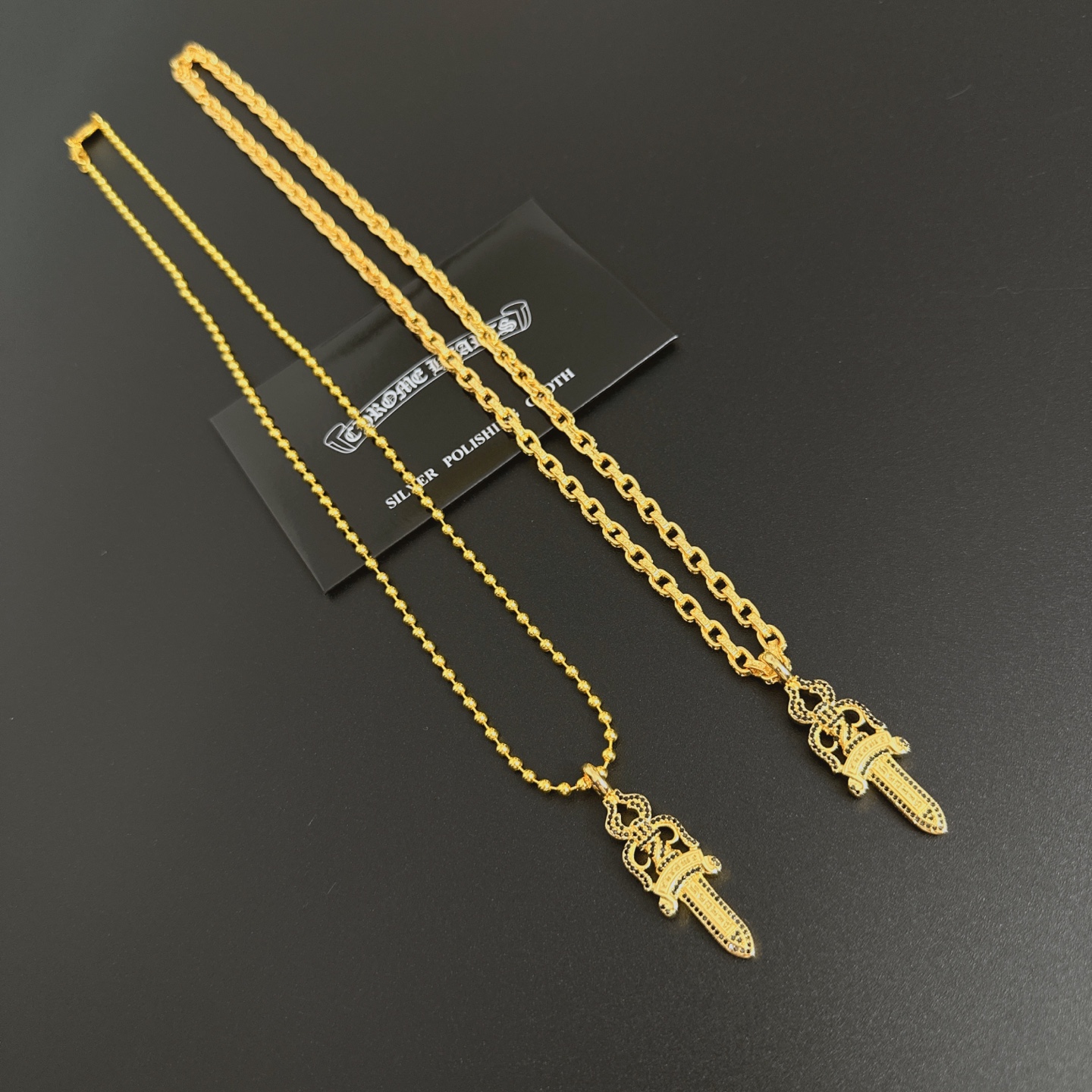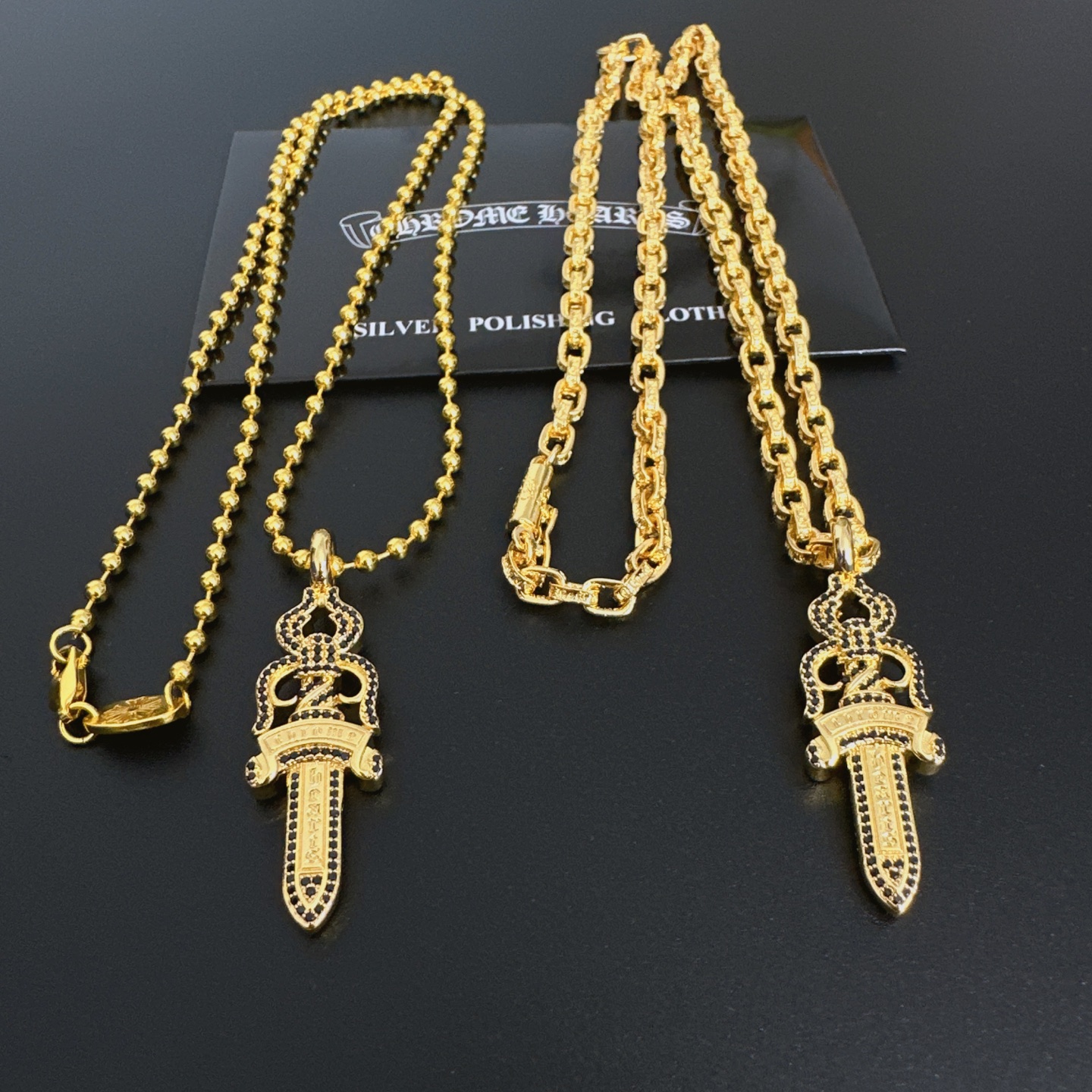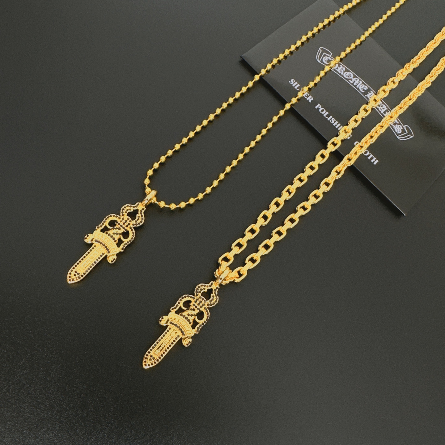 这款首饰是AAAAA 1:1 质量 (非常棒). 使用了和原版一模一样的材料. 商标部分也保持了和克罗心/Chrome Hearts一样. 图片拍摄是实物首饰拍摄, 您所收到的实物保证和我们图片一模一样.