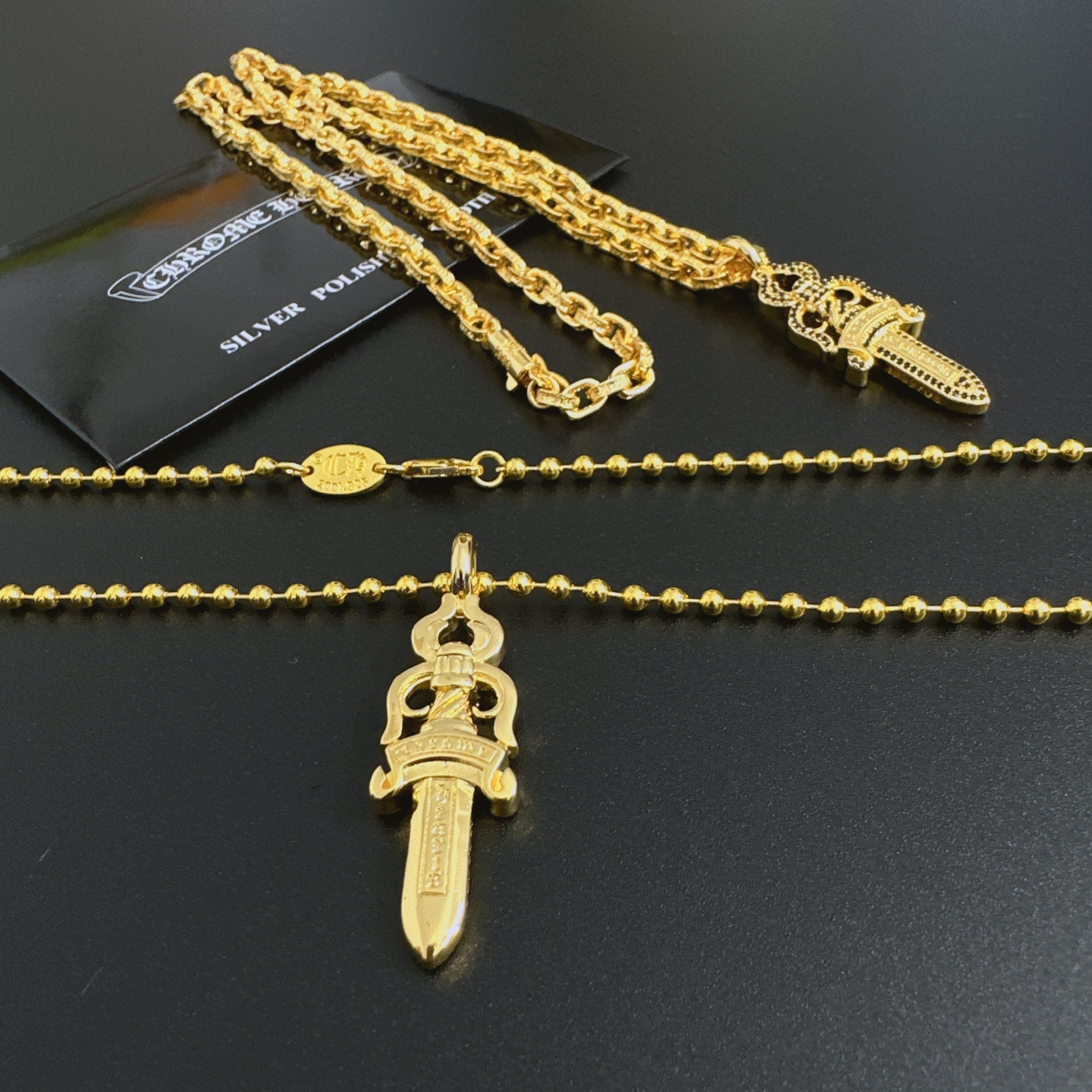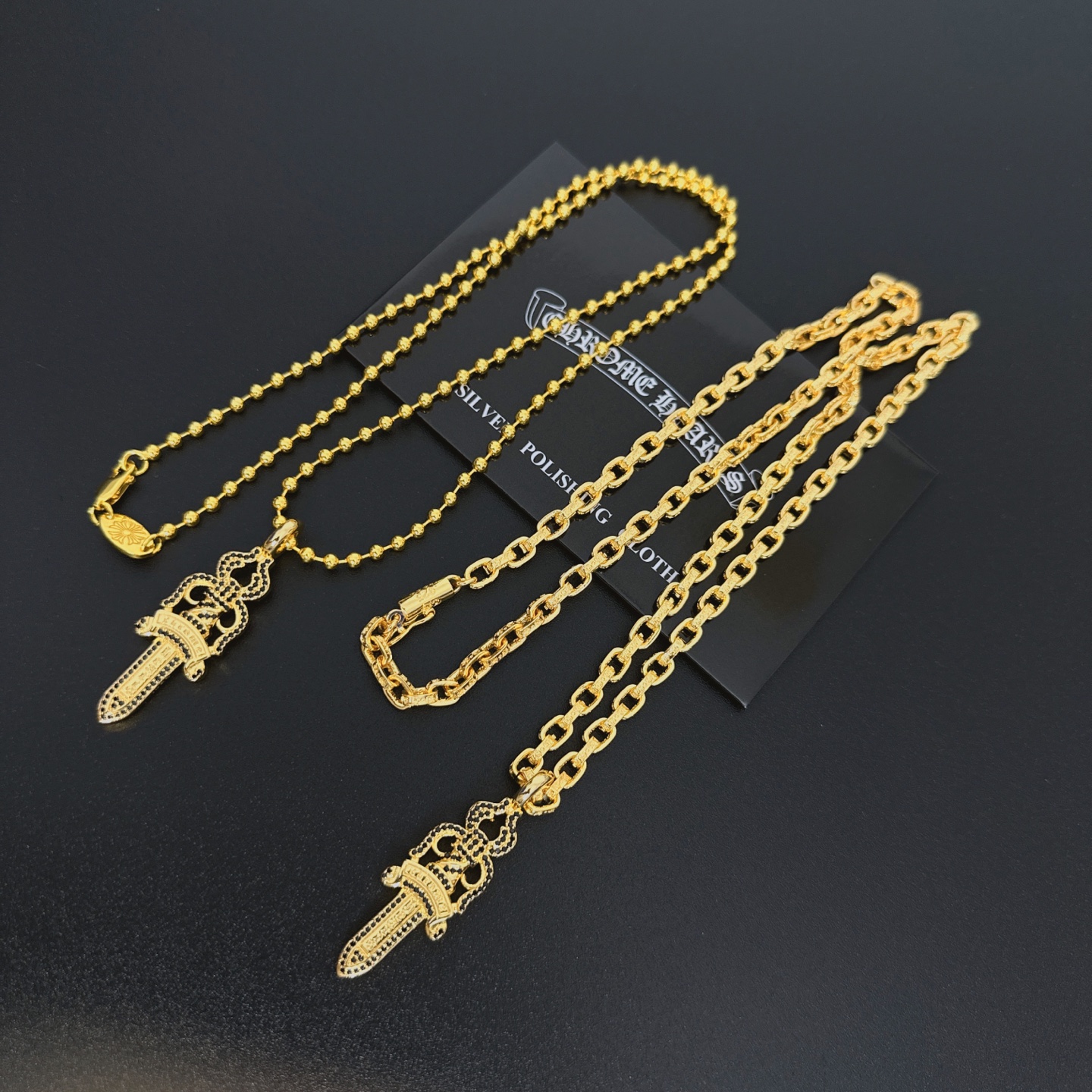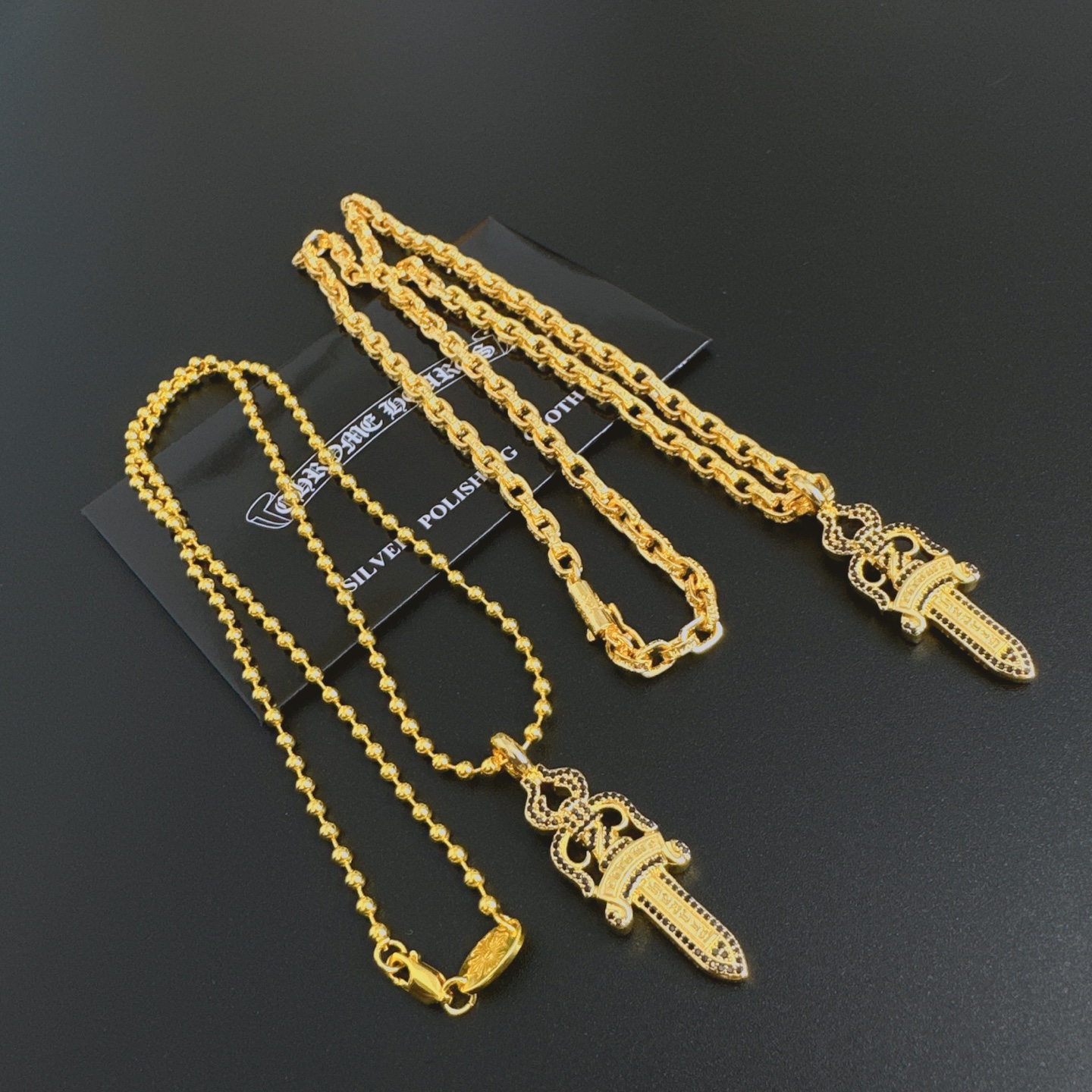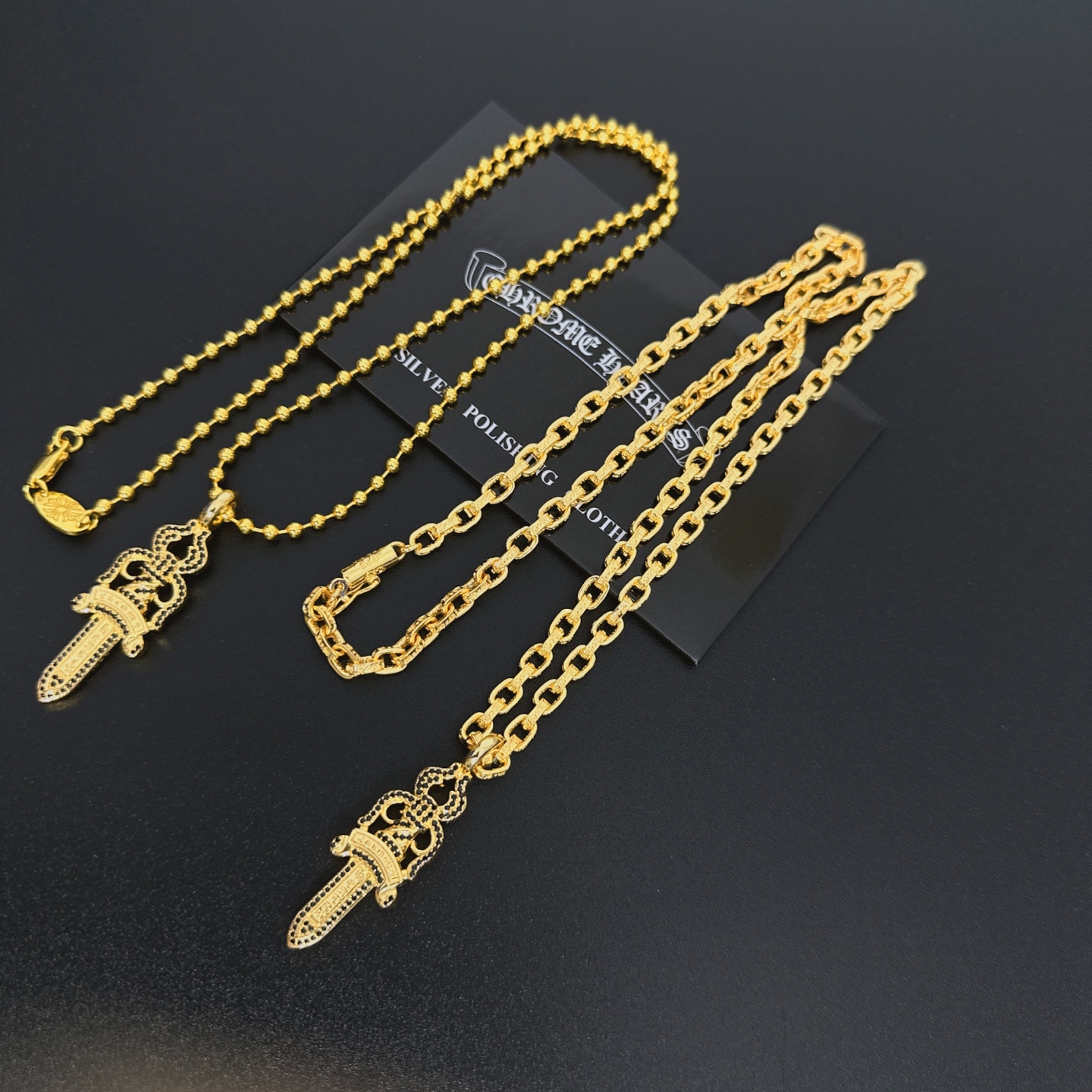 这款首饰是AAAAA 1:1 质量 (非常棒). 使用了和原版一模一样的材料. 商标部分也保持了和克罗心/Chrome Hearts一样. 图片拍摄是实物首饰拍摄, 您所收到的实物保证和我们图片一模一样.