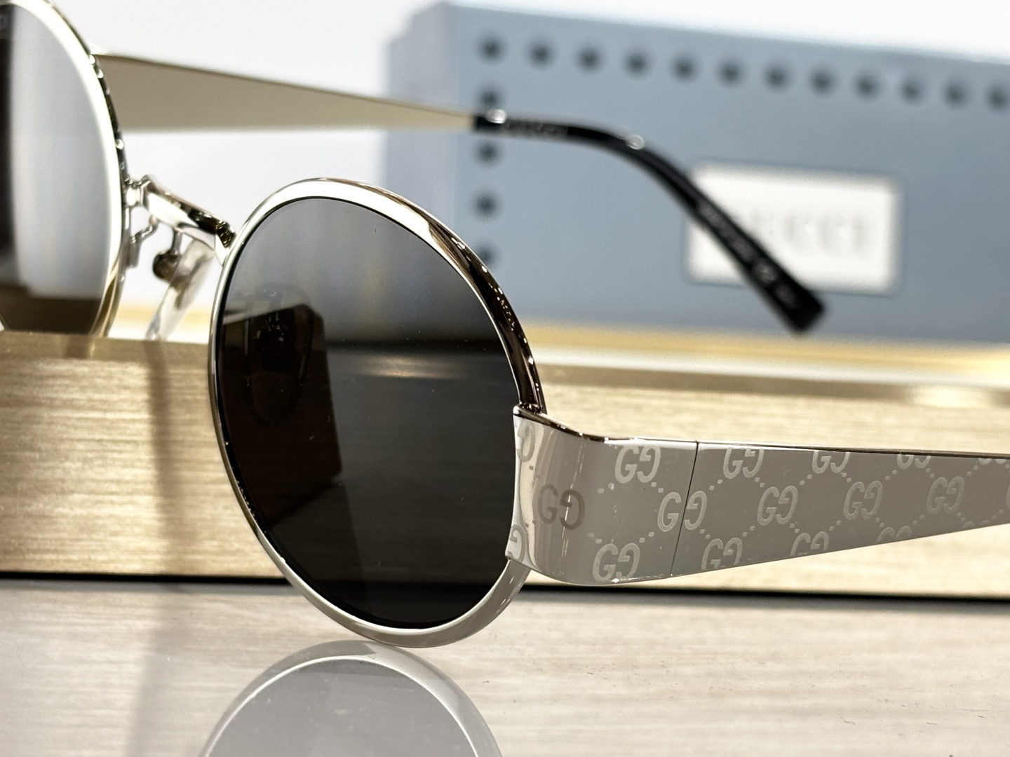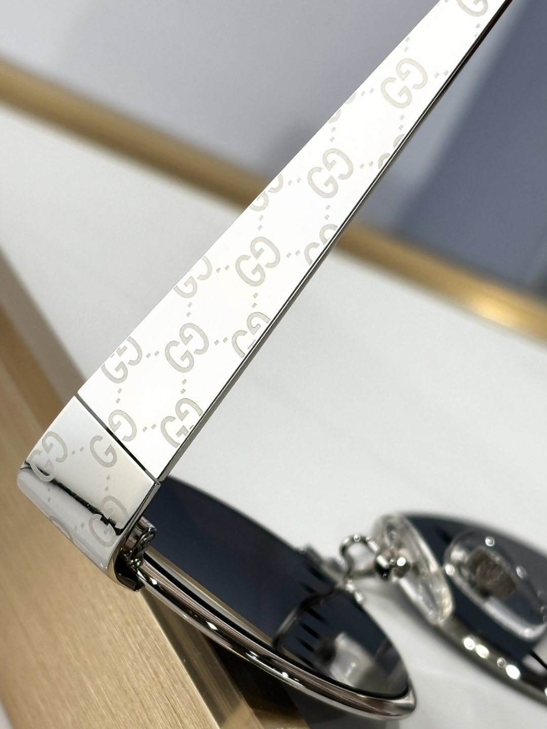 这款太阳眼镜是AAAAA 1:1 质量 (非常棒). 使用了和原版一模一样的材料. 商标部分也保持了和古奇/Gucci一样. 图片拍摄是实物太阳眼镜拍摄, 您所收到的实物保证和我们图片一模一样.