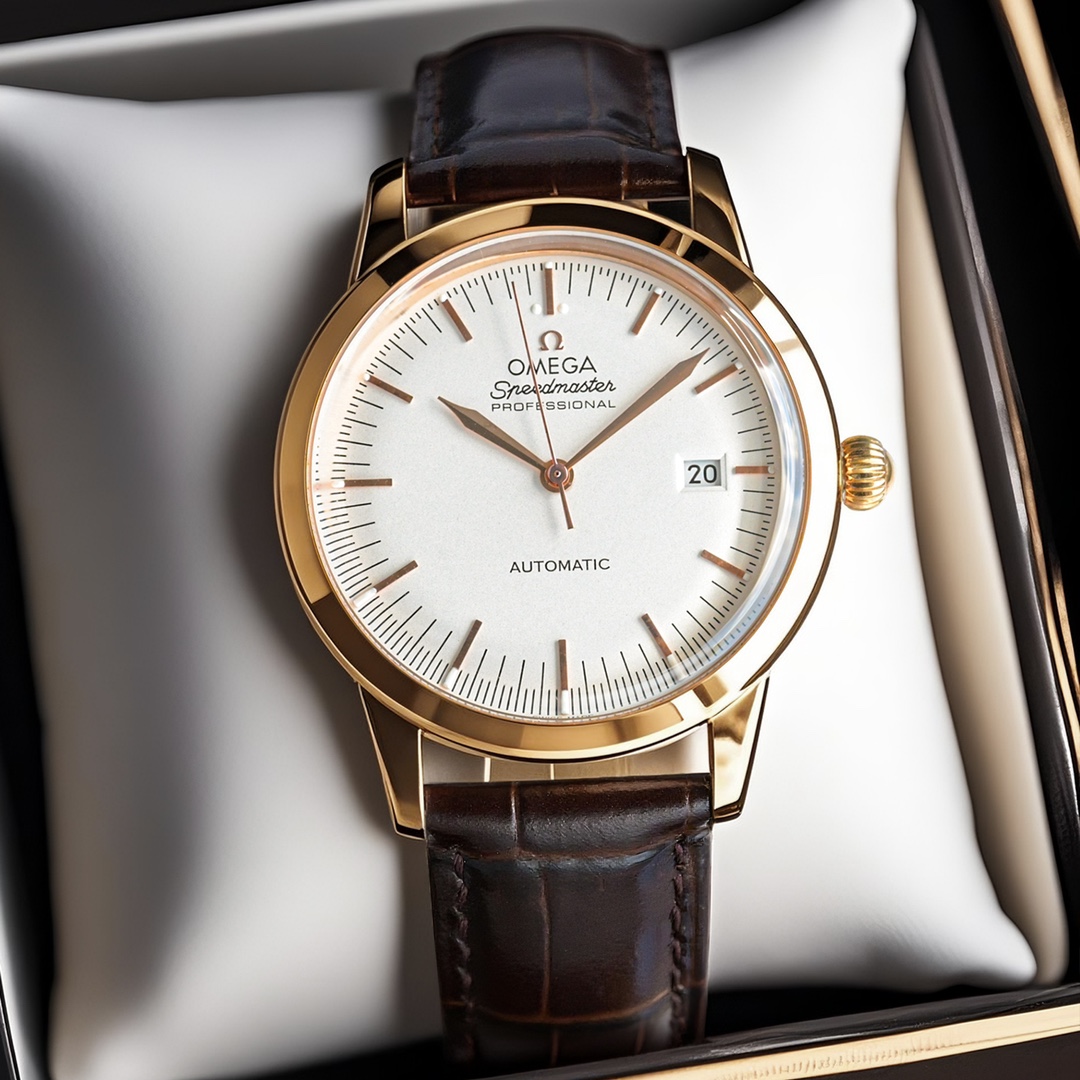 这款手表是AAAAA 1:1 质量 (非常棒). 使用了和原版一模一样的材料. 商标部分也保持了和欧米茄/Omega一样. 图片拍摄是实物手表拍摄, 您所收到的实物保证和我们图片一模一样.