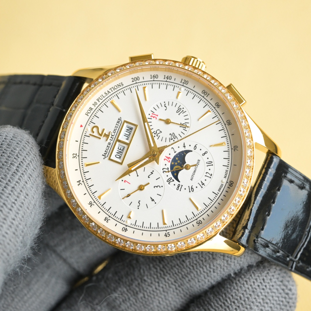 这款手表是AAAAA 1:1 质量 (非常棒). 使用了和原版一模一样的材料. 商标部分也保持了和Jaeger Lecoultre一样. 图片拍摄是实物手表拍摄, 您所收到的实物保证和我们图片一模一样.