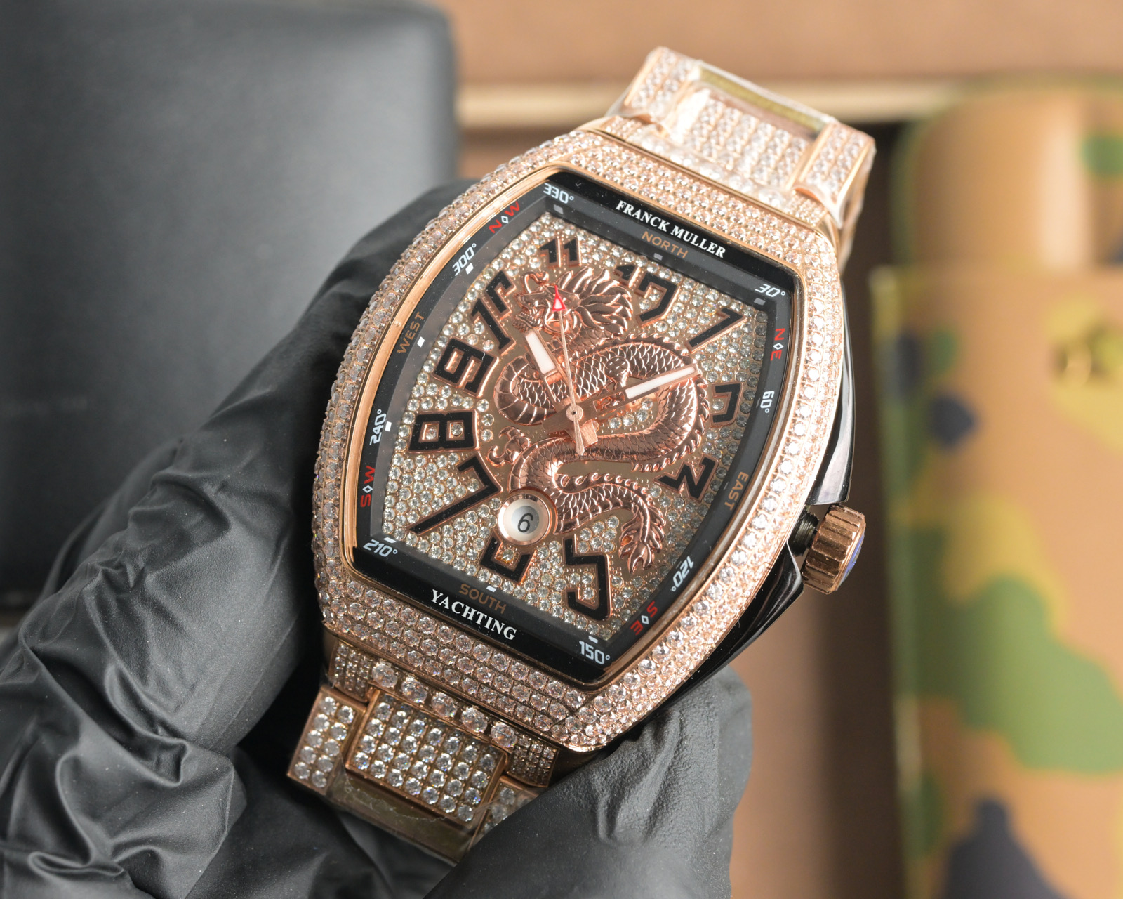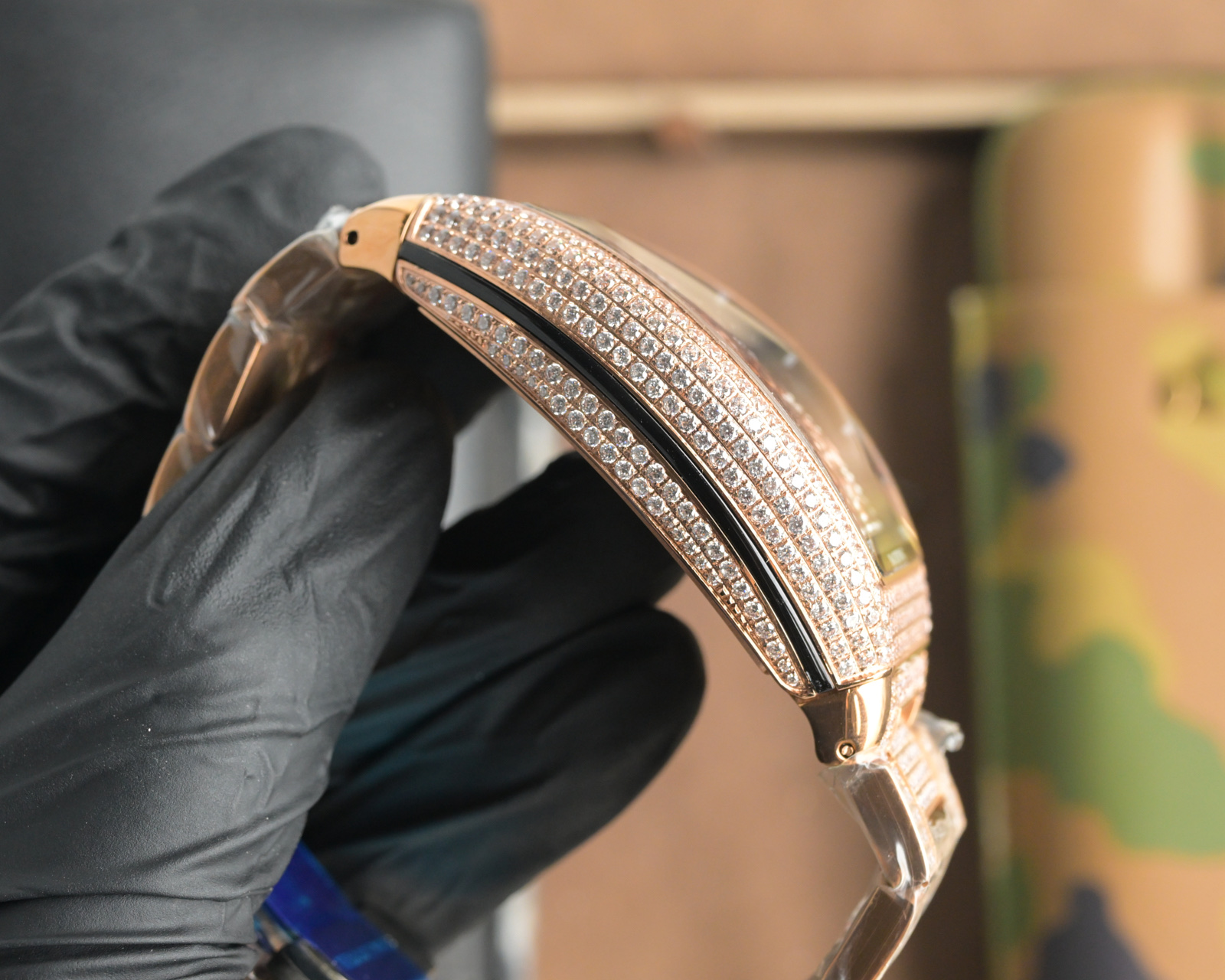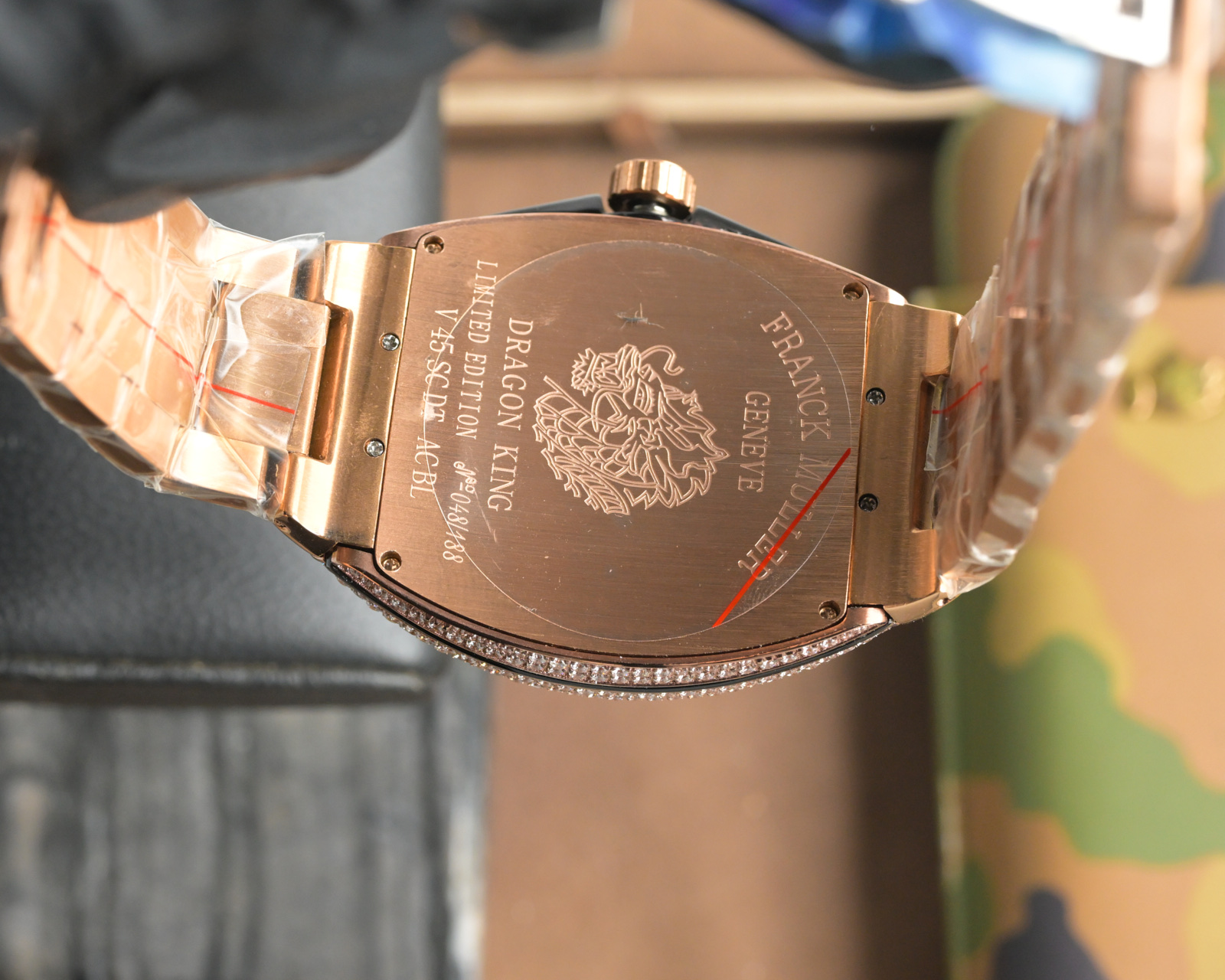 这款手表是AAAAA 1:1 质量 (非常棒). 使用了和原版一模一样的材料. 商标部分也保持了和Franck Mulle一样. 图片拍摄是实物手表拍摄, 您所收到的实物保证和我们图片一模一样.