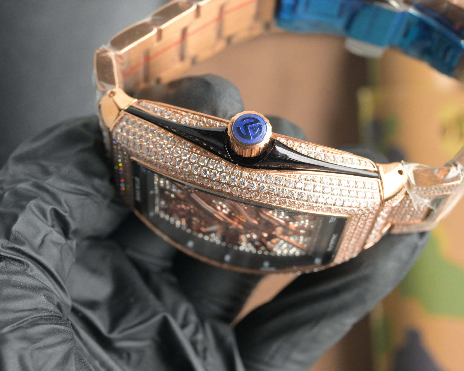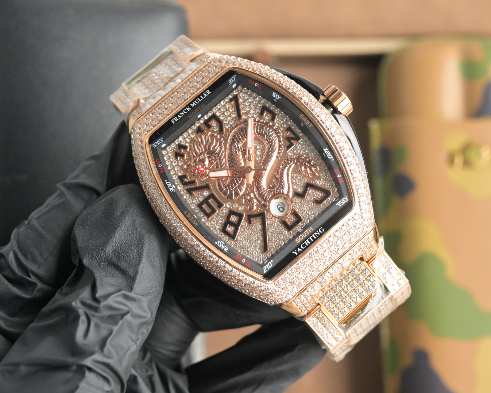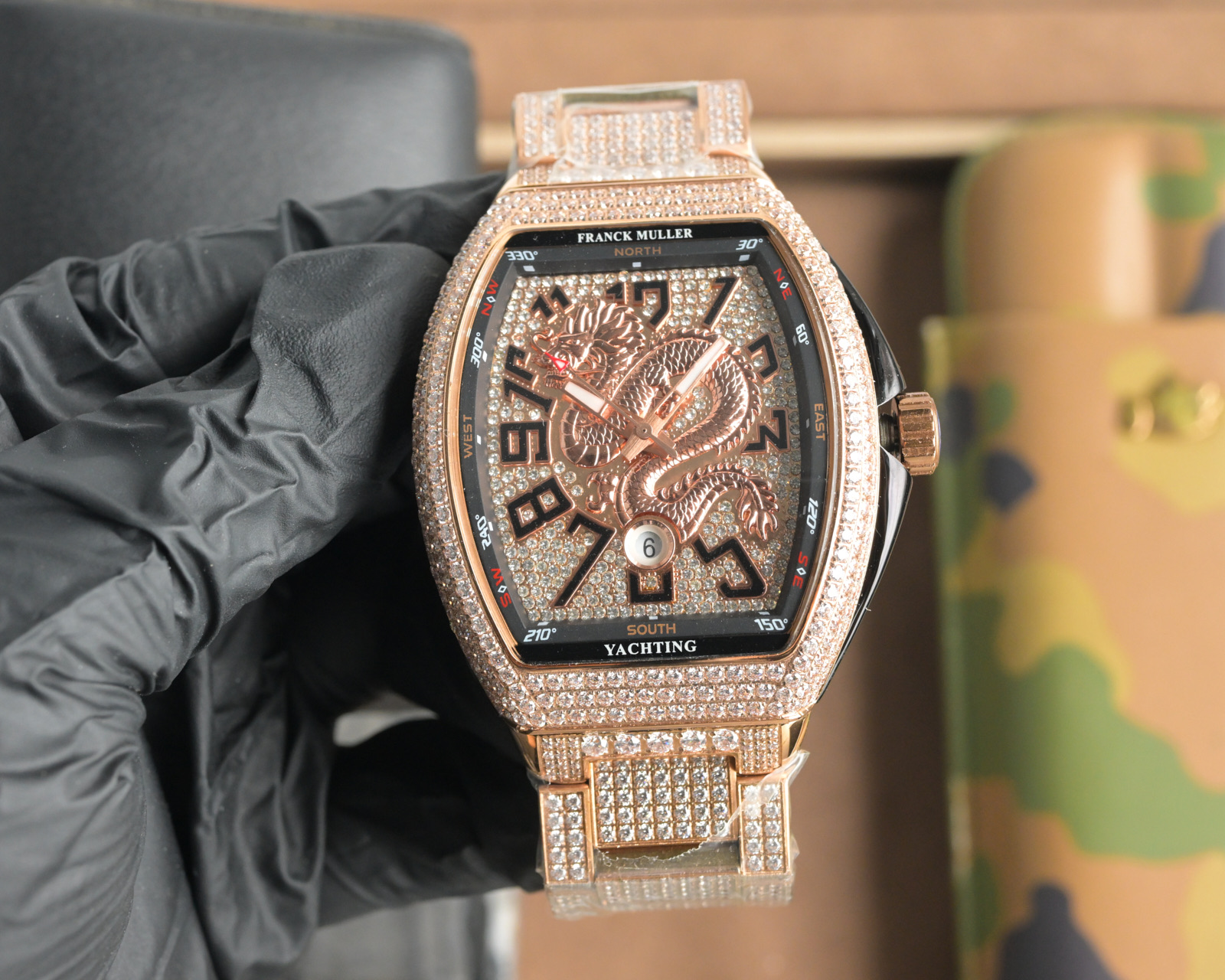 这款手表是AAAAA 1:1 质量 (非常棒). 使用了和原版一模一样的材料. 商标部分也保持了和Franck Mulle一样. 图片拍摄是实物手表拍摄, 您所收到的实物保证和我们图片一模一样.