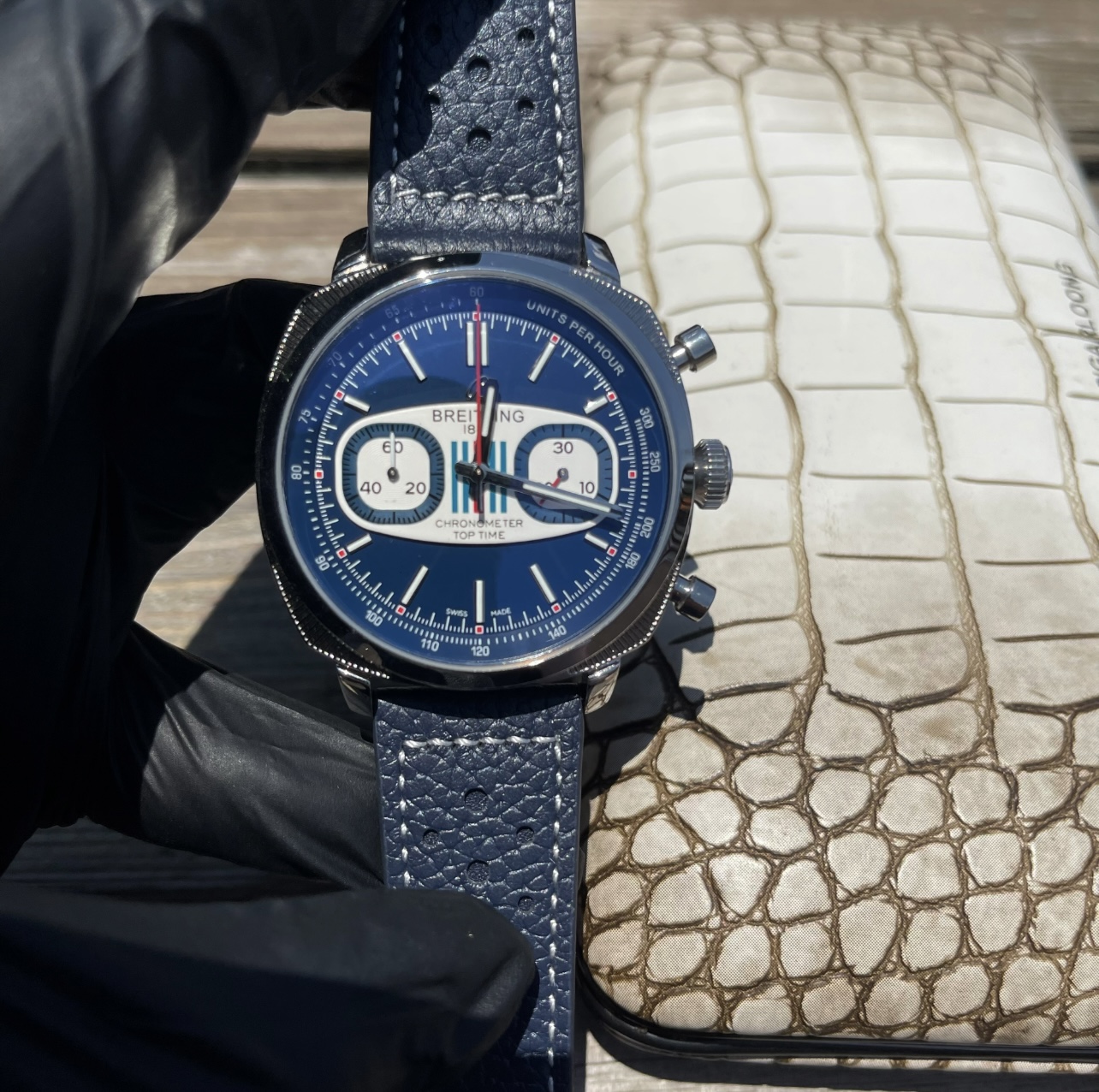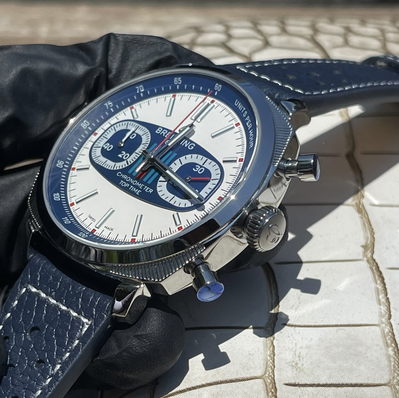 这款手表是AAAAA 1:1 质量 (非常棒). 使用了和原版一模一样的材料. 商标部分也保持了和Breitling一样. 图片拍摄是实物手表拍摄, 您所收到的实物保证和我们图片一模一样.