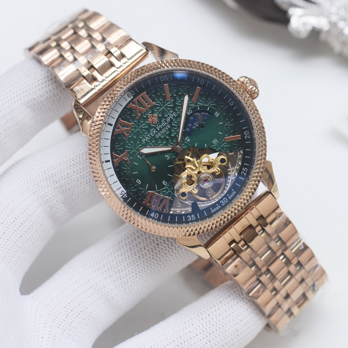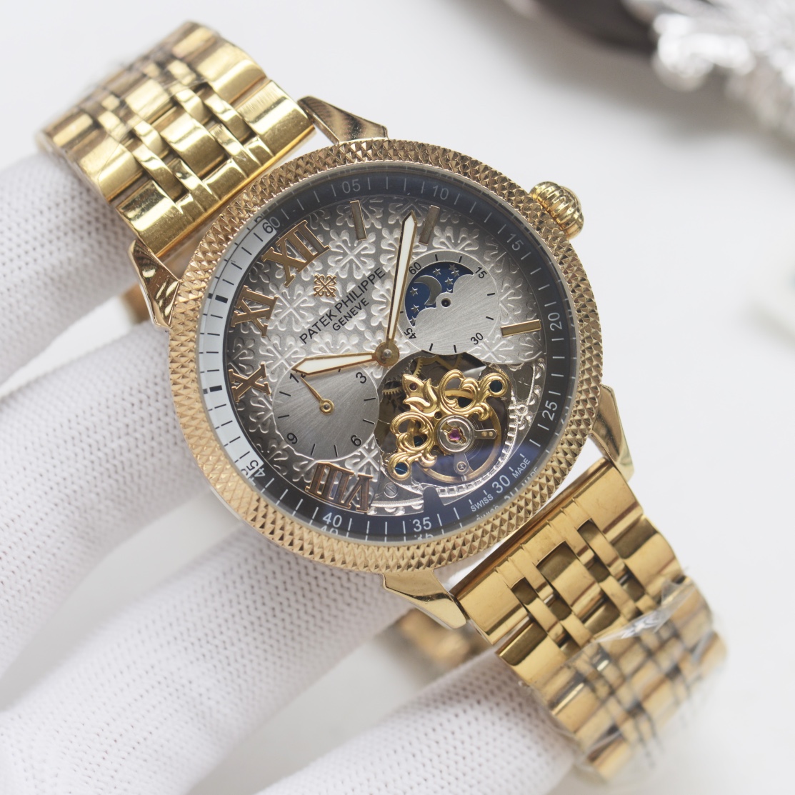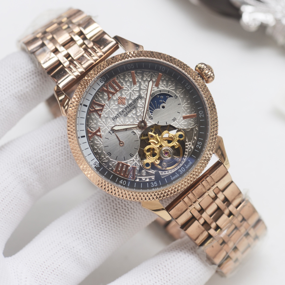 这款手表是AAAAA 1:1 质量 (非常棒). 使用了和原版一模一样的材料. 商标部分也保持了和百达翡丽/Patek Philippe一样. 图片拍摄是实物手表拍摄, 您所收到的实物保证和我们图片一模一样.