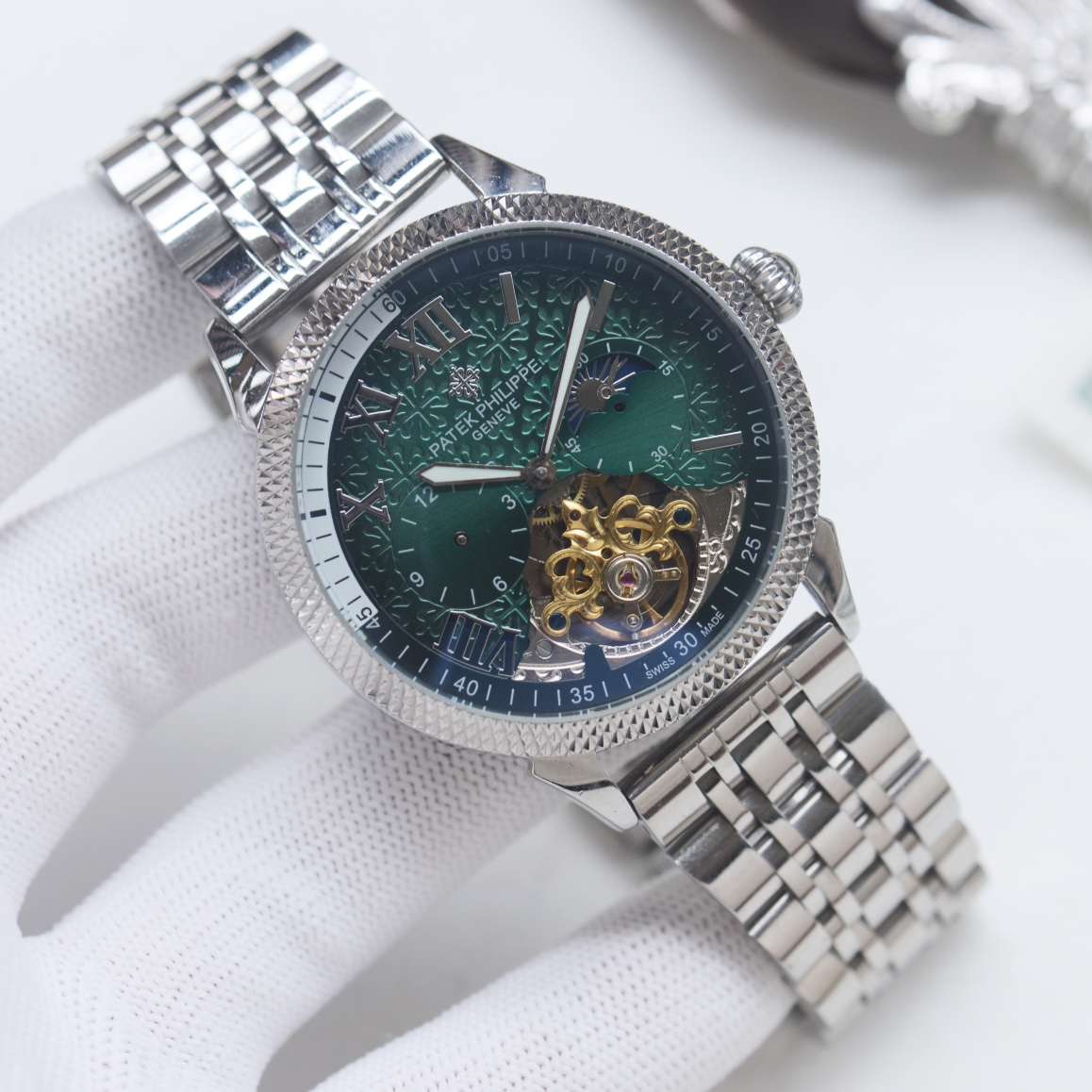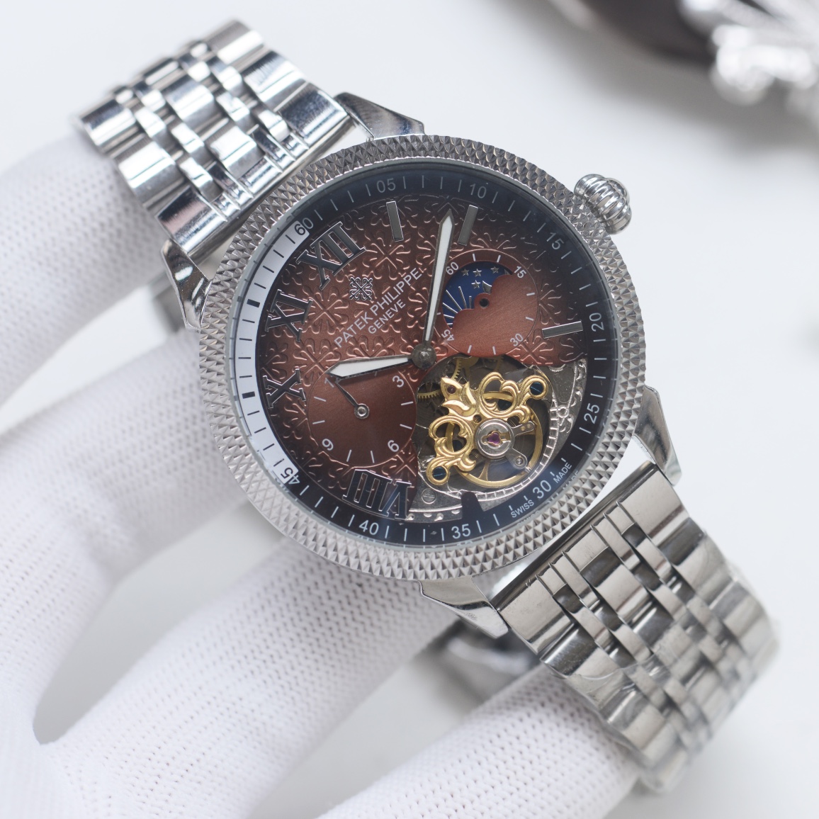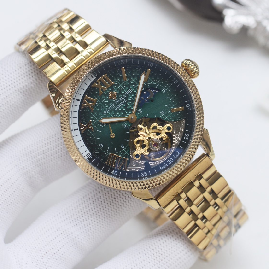这款手表是AAAAA 1:1 质量 (非常棒). 使用了和原版一模一样的材料. 商标部分也保持了和百达翡丽/Patek Philippe一样. 图片拍摄是实物手表拍摄, 您所收到的实物保证和我们图片一模一样.