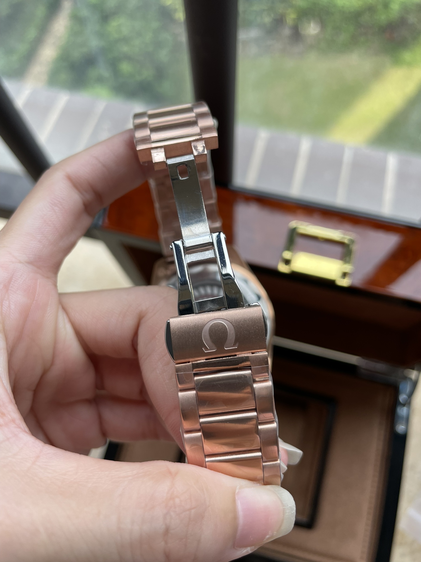这款手表是AAAAA 1:1 质量 (非常棒). 使用了和原版一模一样的材料. 商标部分也保持了和欧米茄/Omega一样. 图片拍摄是实物手表拍摄, 您所收到的实物保证和我们图片一模一样.