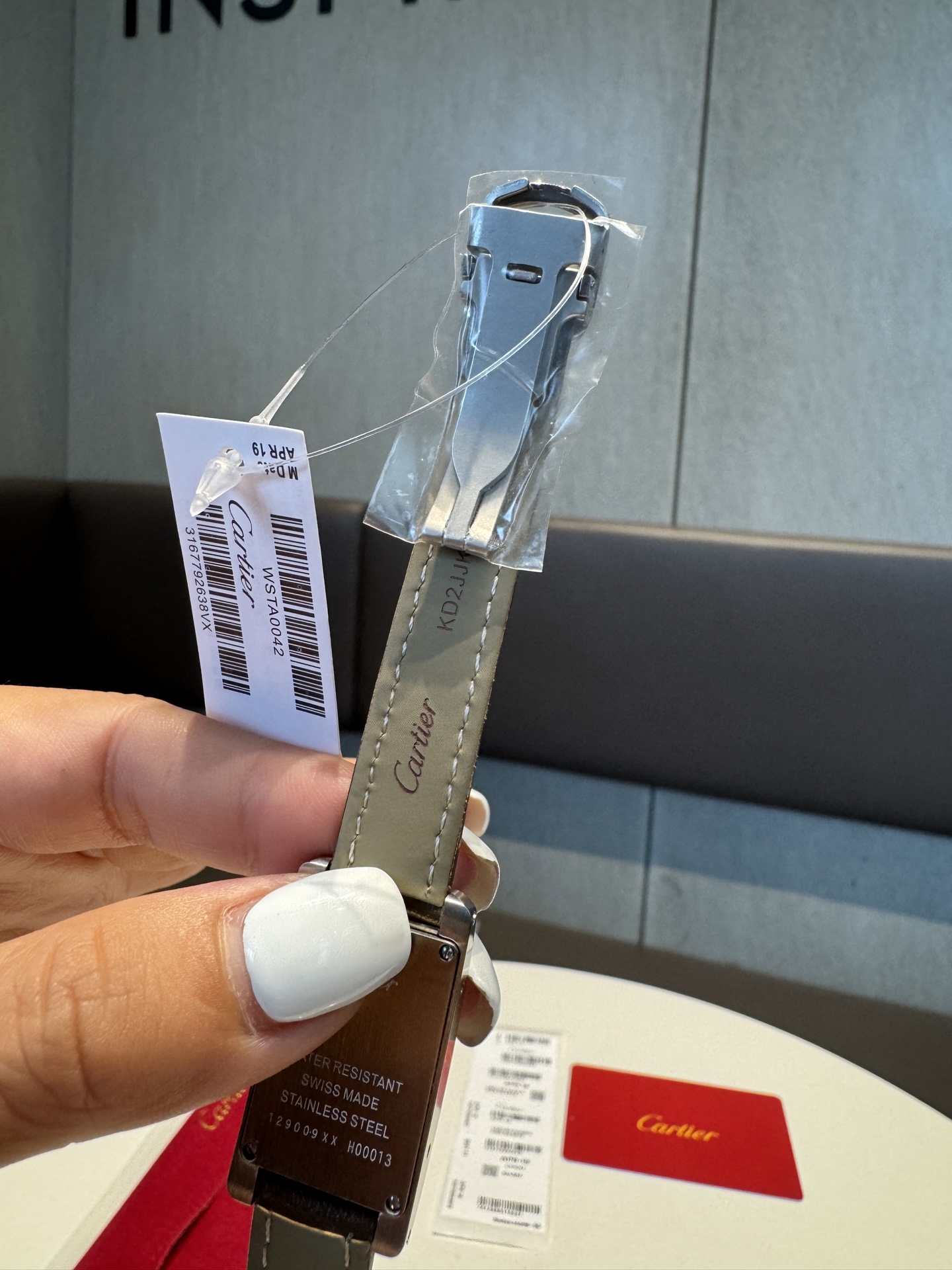 这款手表是AAAAA 1:1 质量 (非常棒). 使用了和原版一模一样的材料. 商标部分也保持了和卡地亚/Cartier一样. 图片拍摄是实物手表拍摄, 您所收到的实物保证和我们图片一模一样.