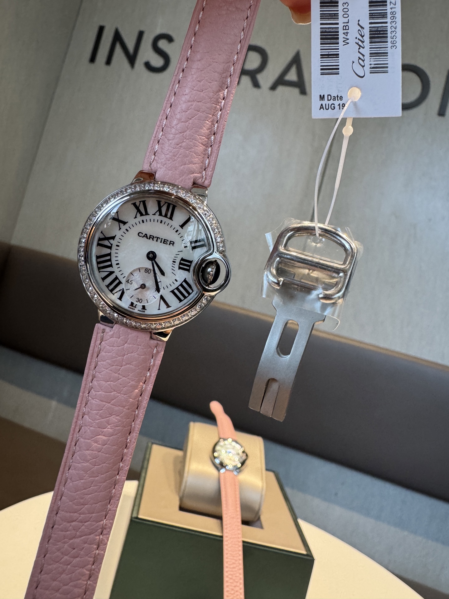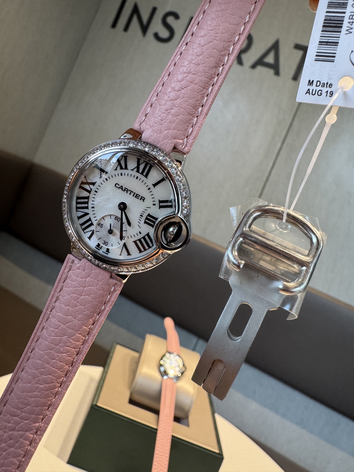 这款手表是AAAAA 1:1 质量 (非常棒). 使用了和原版一模一样的材料. 商标部分也保持了和卡地亚/Cartier一样. 图片拍摄是实物手表拍摄, 您所收到的实物保证和我们图片一模一样.