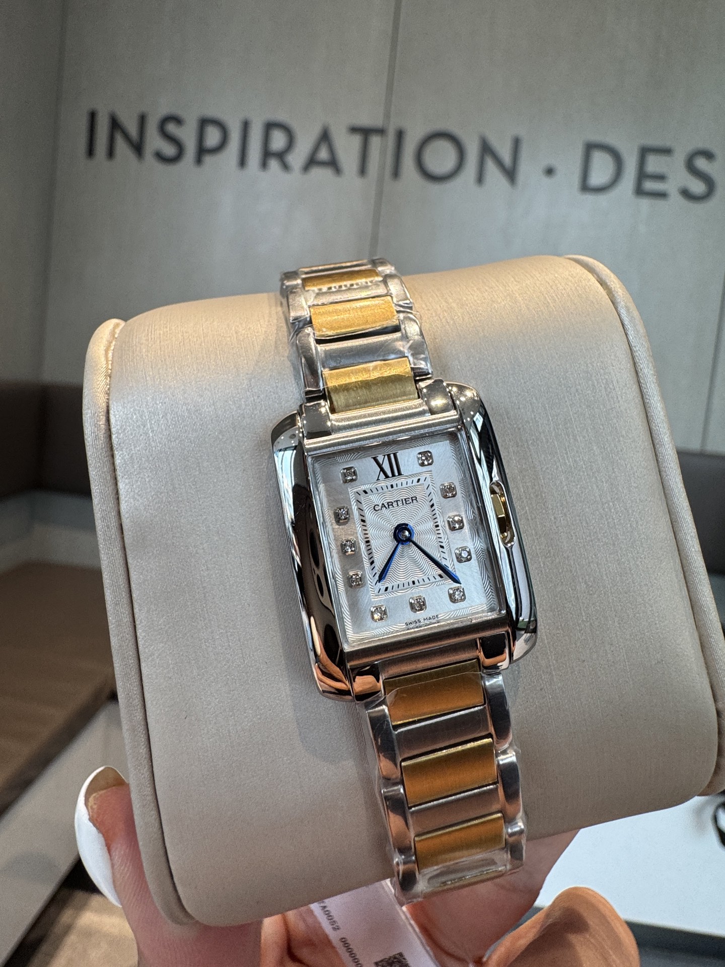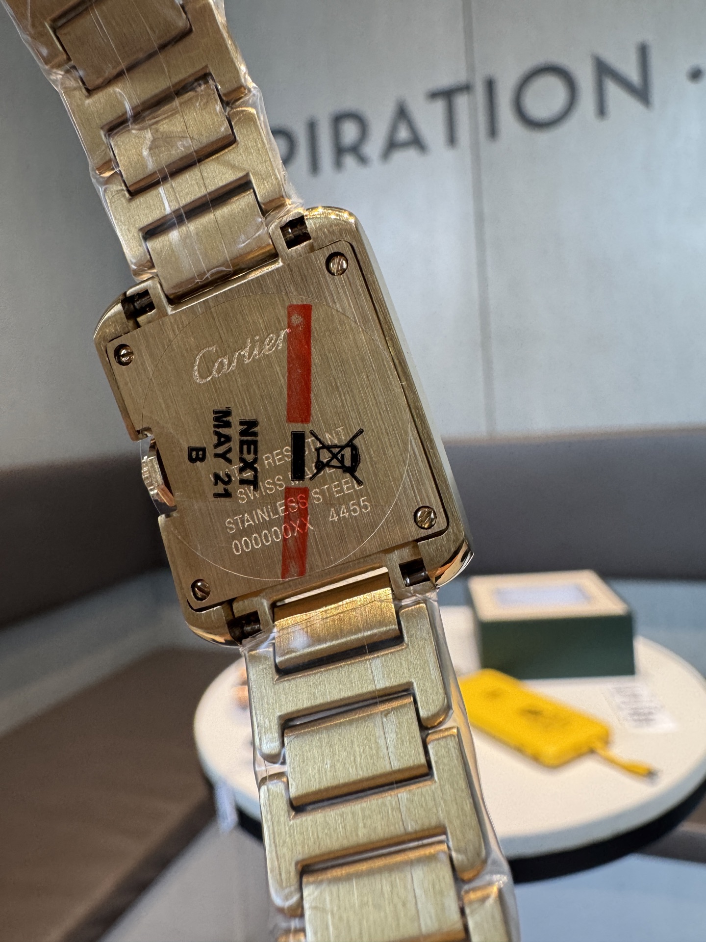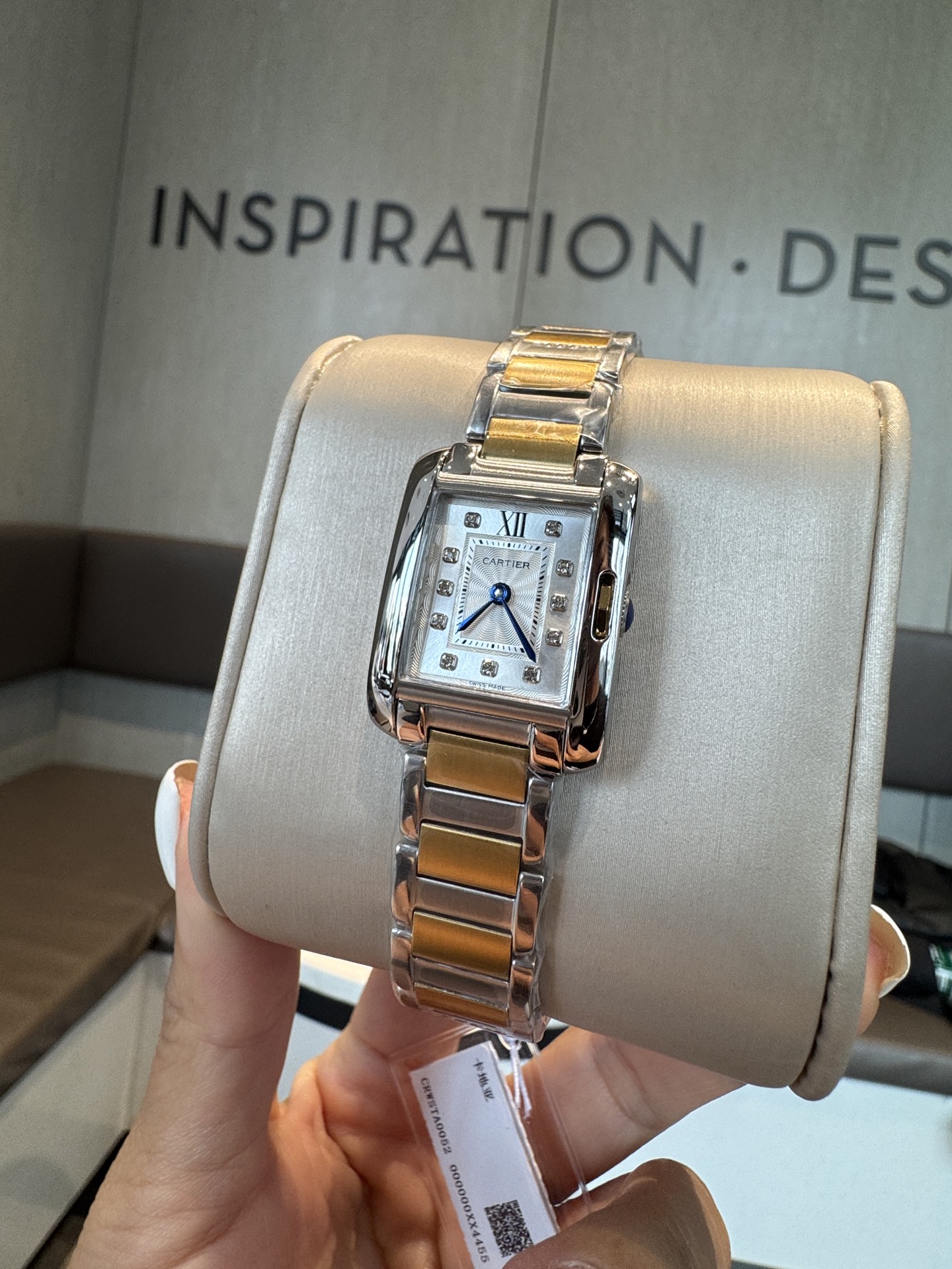 这款手表是AAAAA 1:1 质量 (非常棒). 使用了和原版一模一样的材料. 商标部分也保持了和卡地亚/Cartier一样. 图片拍摄是实物手表拍摄, 您所收到的实物保证和我们图片一模一样.