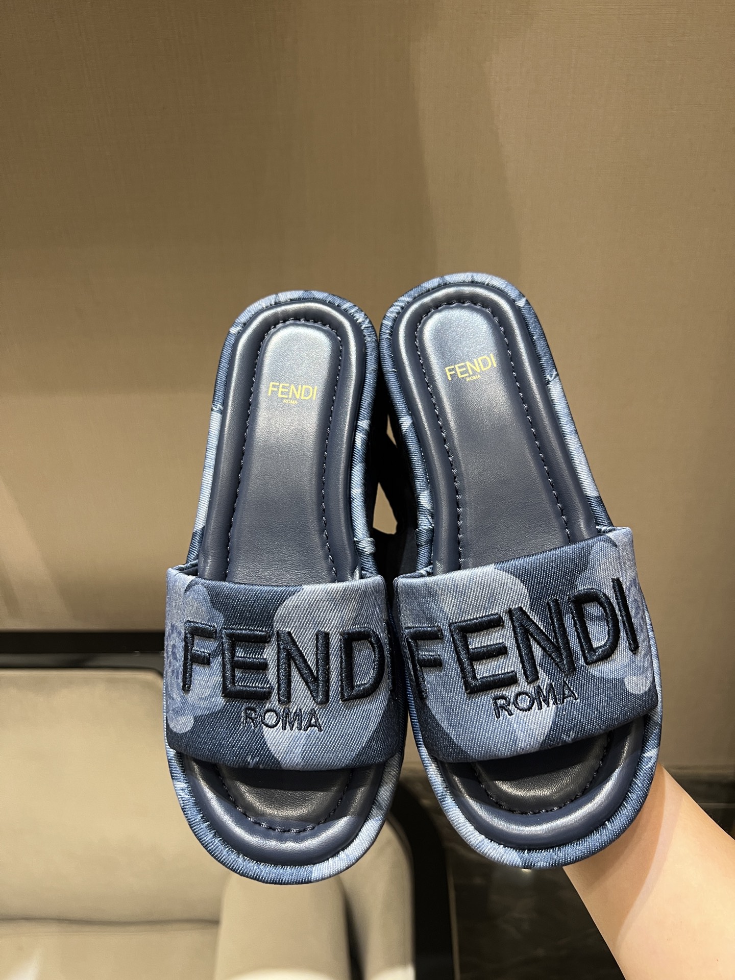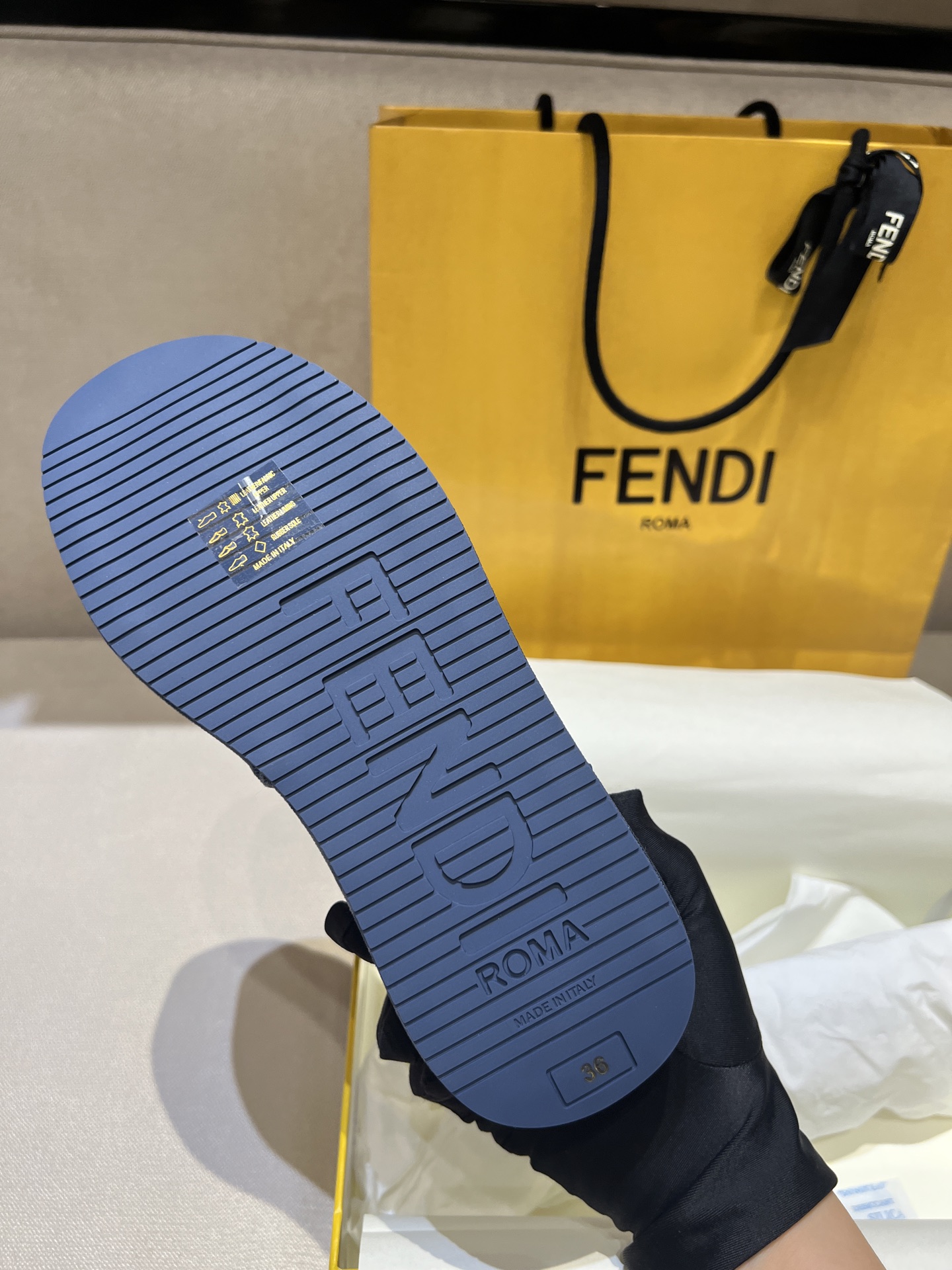 这款鞋子是AAAAA 1:1 质量 (非常棒). 使用了和原版一模一样的材料. 商标部分也保持了和芬迪/Fendi一样. 图片拍摄是实物鞋子拍摄, 您所收到的实物保证和我们图片一模一样.