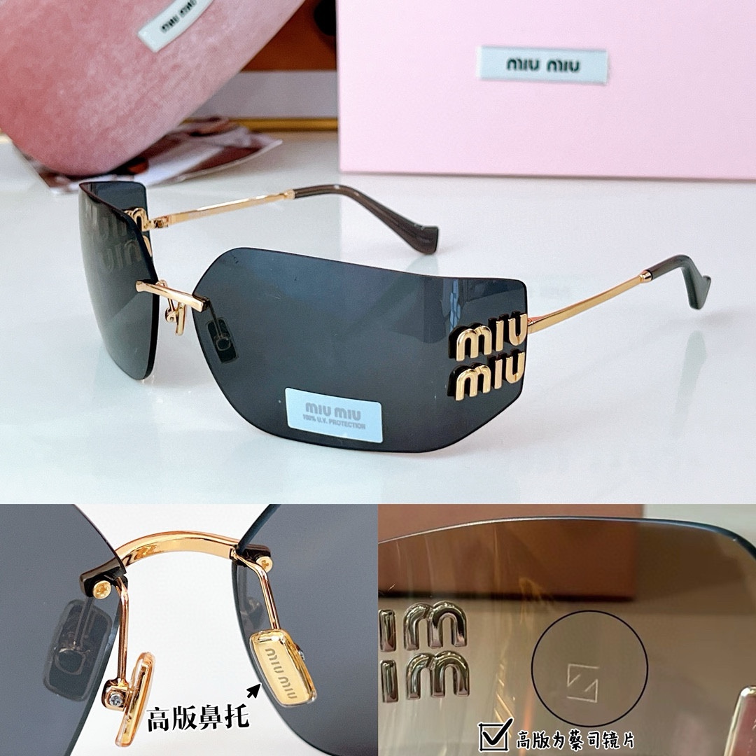 这款太阳眼镜是AAAAA 1:1 质量 (非常棒). 使用了和原版一模一样的材料. 商标部分也保持了和缪缪/Miu Miu一样. 图片拍摄是实物太阳眼镜拍摄, 您所收到的实物保证和我们图片一模一样.
