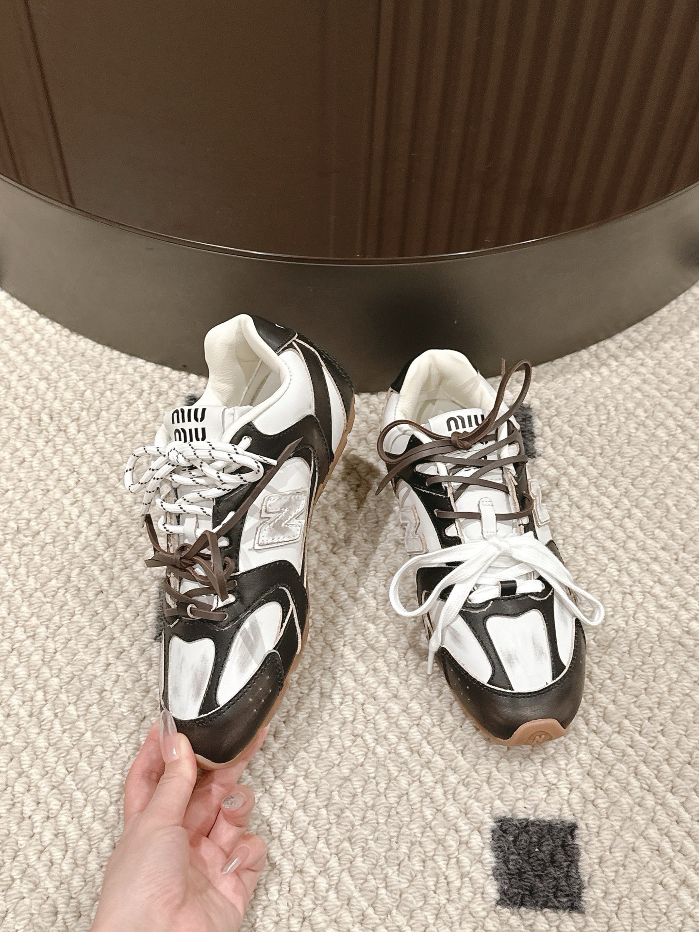 这款鞋子是AAAAA 1:1 质量 (非常棒). 使用了和原版一模一样的材料. 商标部分也保持了和缪缪/Miu Miu一样. 图片拍摄是实物鞋子拍摄, 您所收到的实物保证和我们图片一模一样.