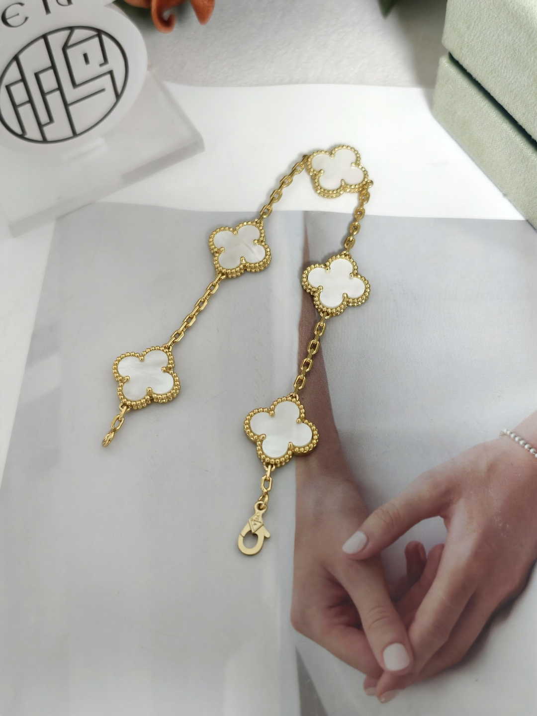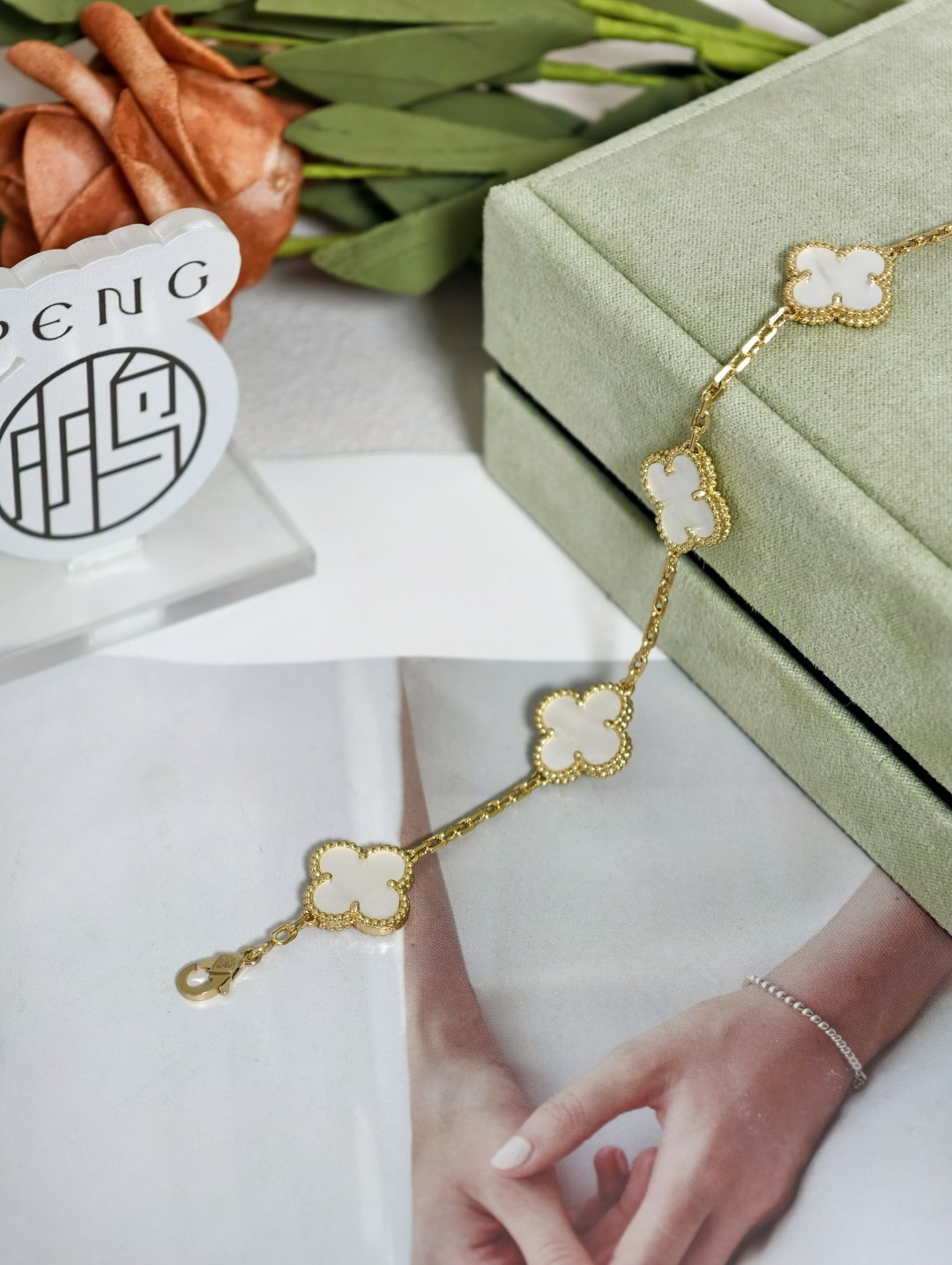 这款首饰是AAAAA 1:1 质量 (非常棒). 使用了和原版一模一样的材料. 商标部分也保持了和梵克雅宝/Van Cleef & Arpels一样. 图片拍摄是实物首饰拍摄, 您所收到的实物保证和我们图片一模一样.