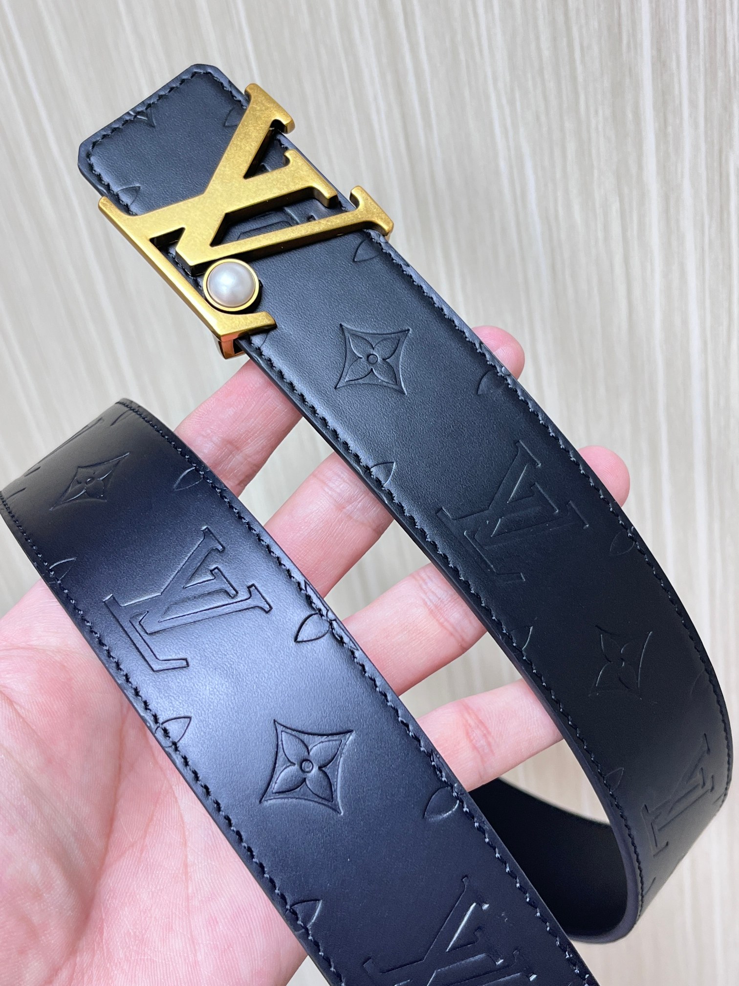 这款皮带是AAAAA 1:1 质量 (非常棒). 使用了和原版一模一样的材料. 商标部分也保持了和路易威登/Louis Vuitton一样. 图片拍摄是实物皮带拍摄, 您所收到的实物保证和我们图片一模一样.