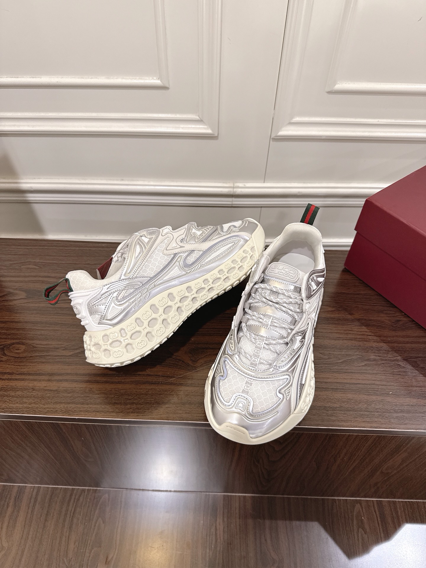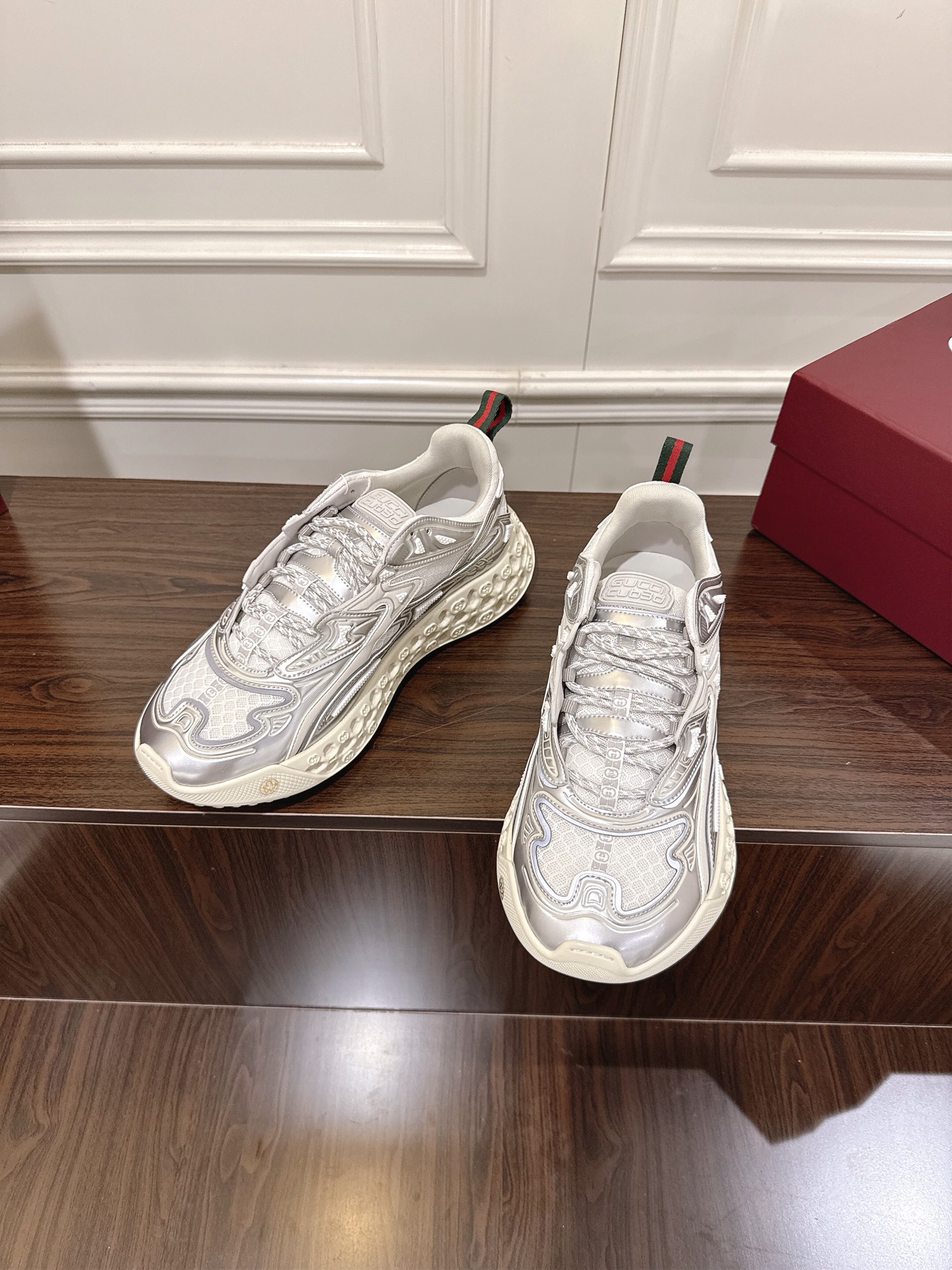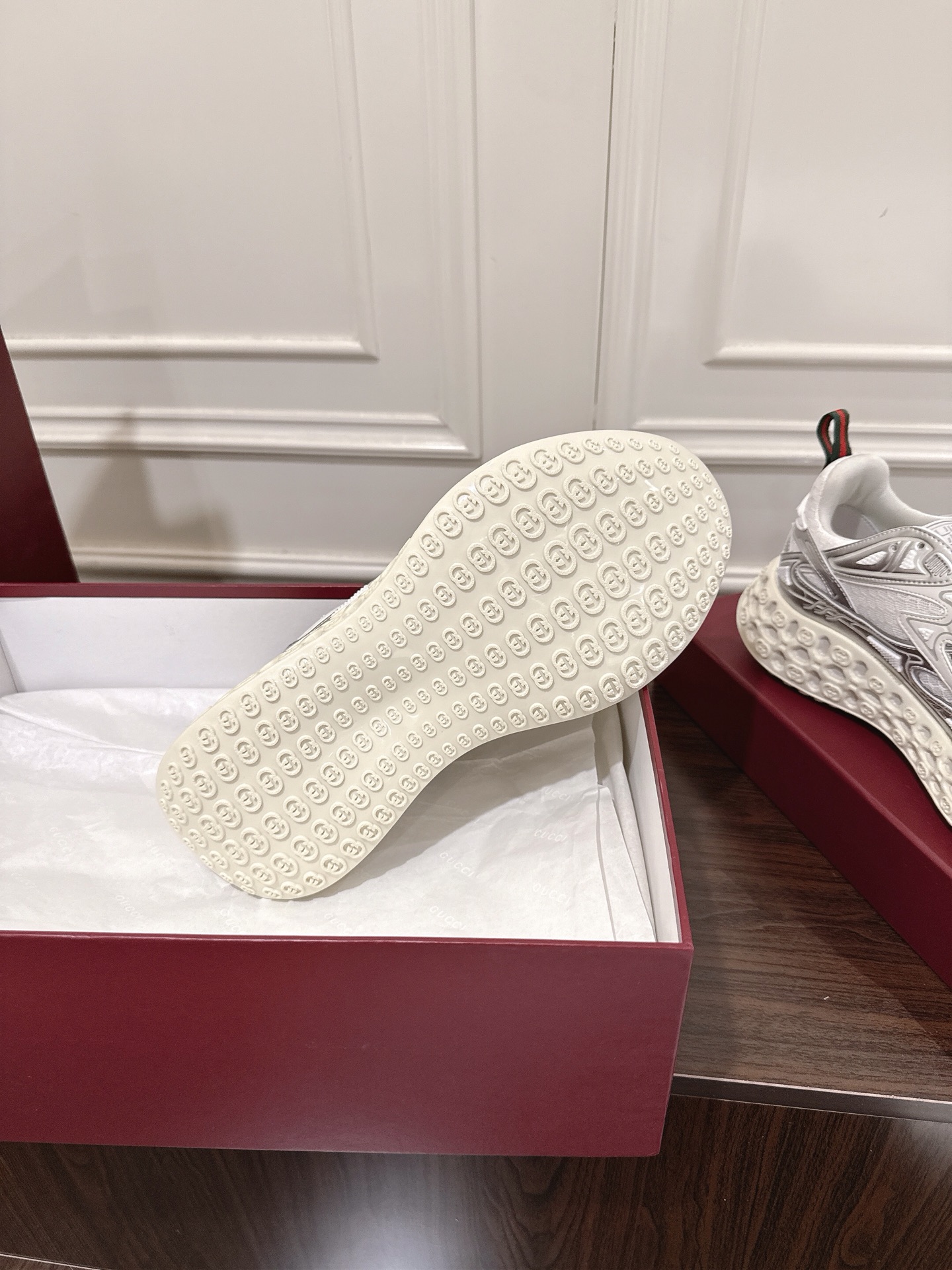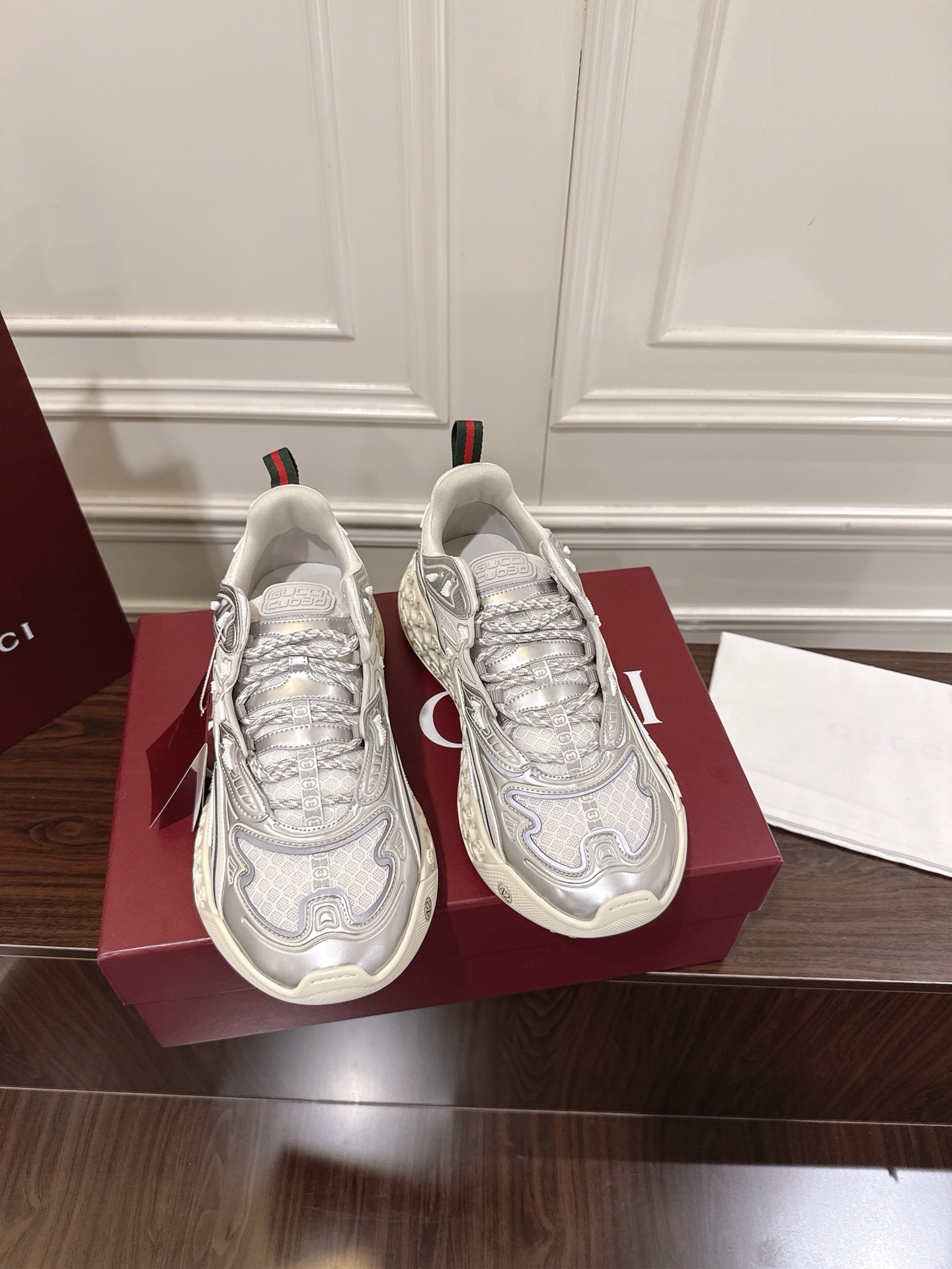 这款鞋子是AAAAA 1:1 质量 (非常棒). 使用了和原版一模一样的材料. 商标部分也保持了和古奇/Gucci一样. 图片拍摄是实物鞋子拍摄, 您所收到的实物保证和我们图片一模一样.