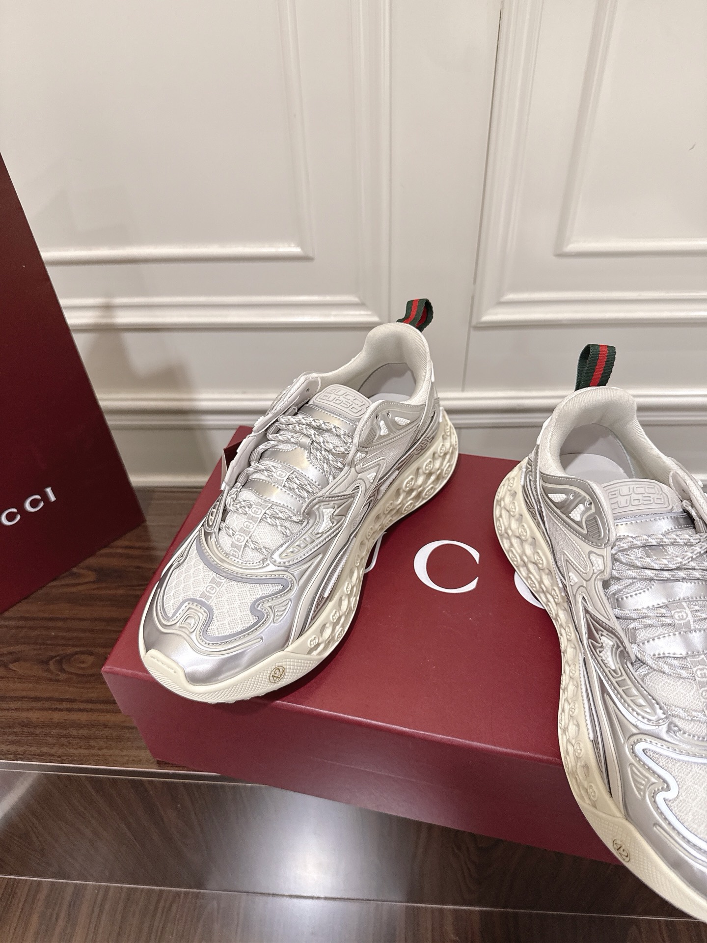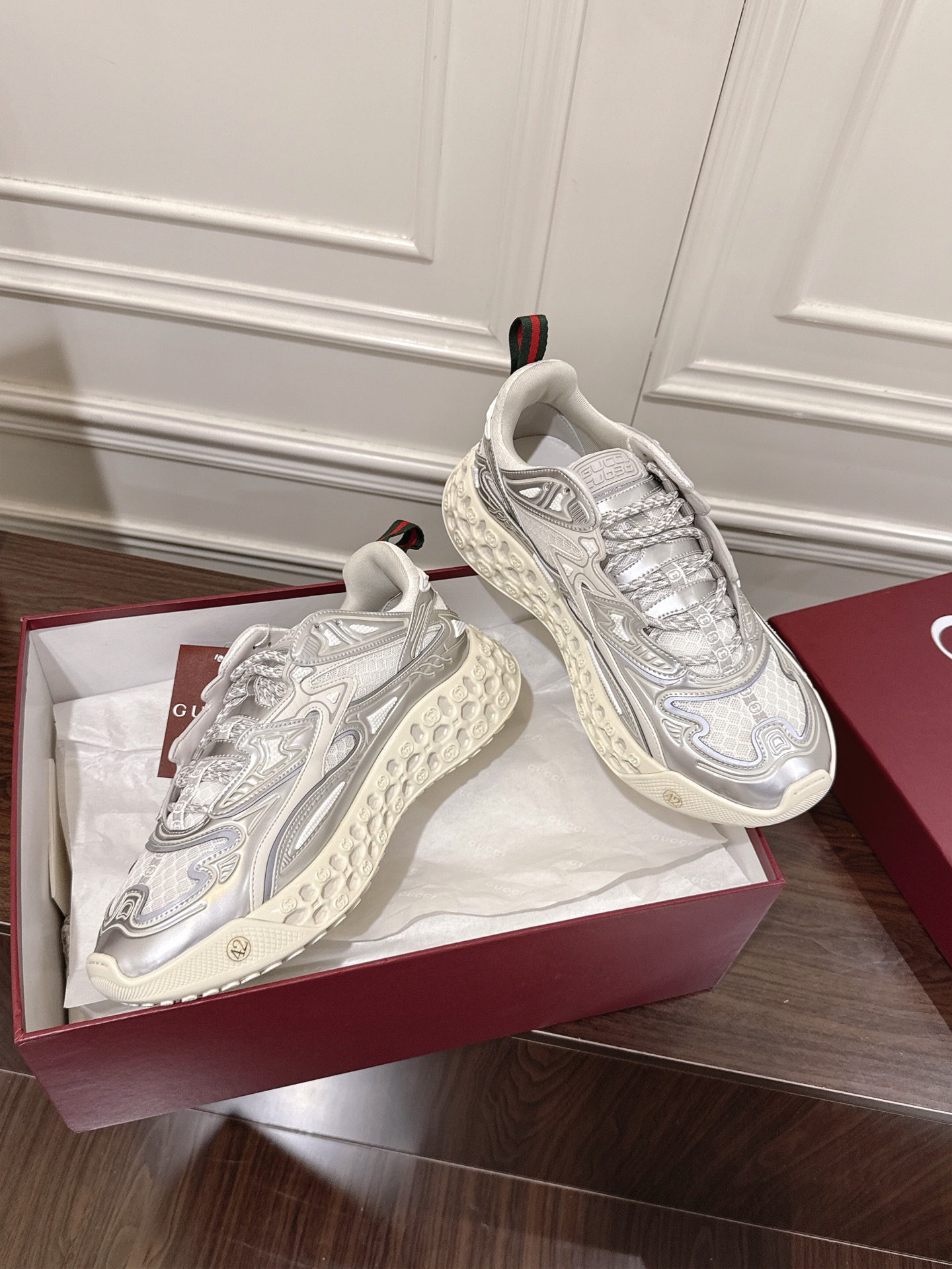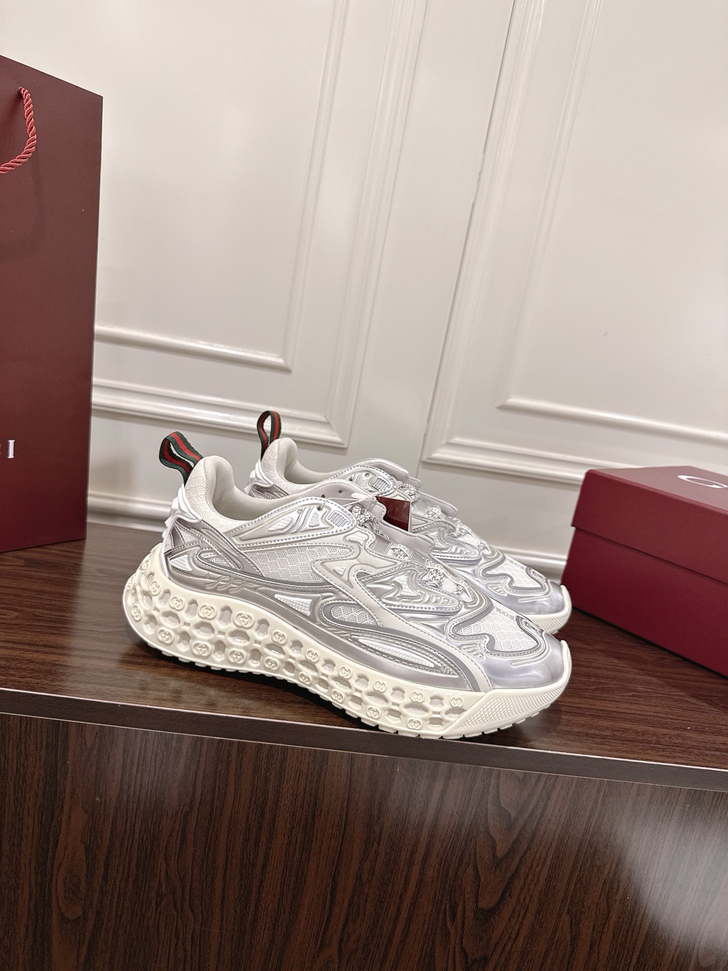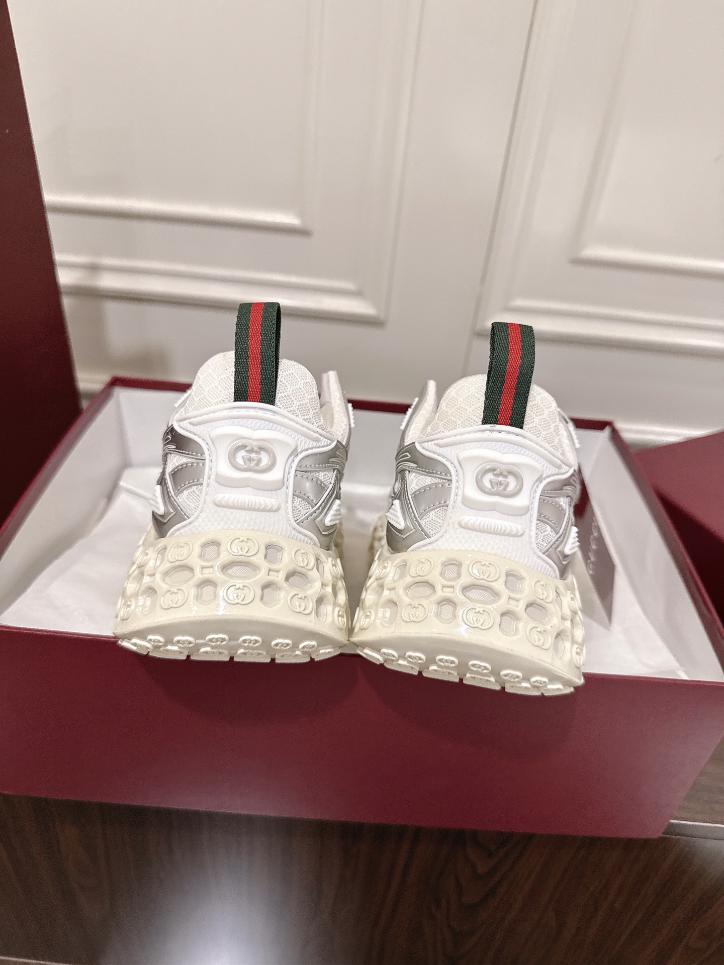 这款鞋子是AAAAA 1:1 质量 (非常棒). 使用了和原版一模一样的材料. 商标部分也保持了和古奇/Gucci一样. 图片拍摄是实物鞋子拍摄, 您所收到的实物保证和我们图片一模一样.
