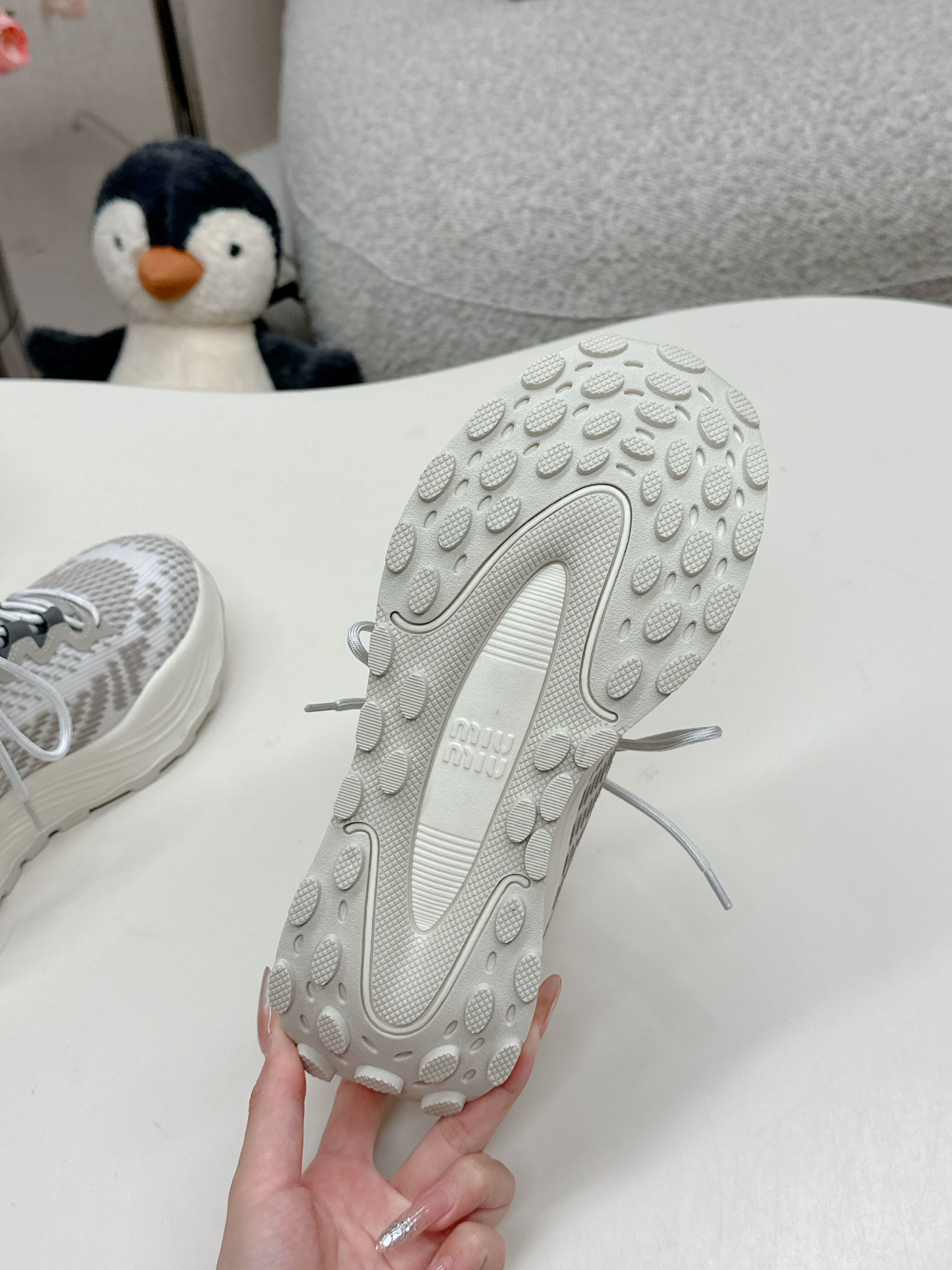 这款鞋子是AAAAA 1:1 质量 (非常棒). 使用了和原版一模一样的材料. 商标部分也保持了和缪缪/Miu Miu一样. 图片拍摄是实物鞋子拍摄, 您所收到的实物保证和我们图片一模一样.