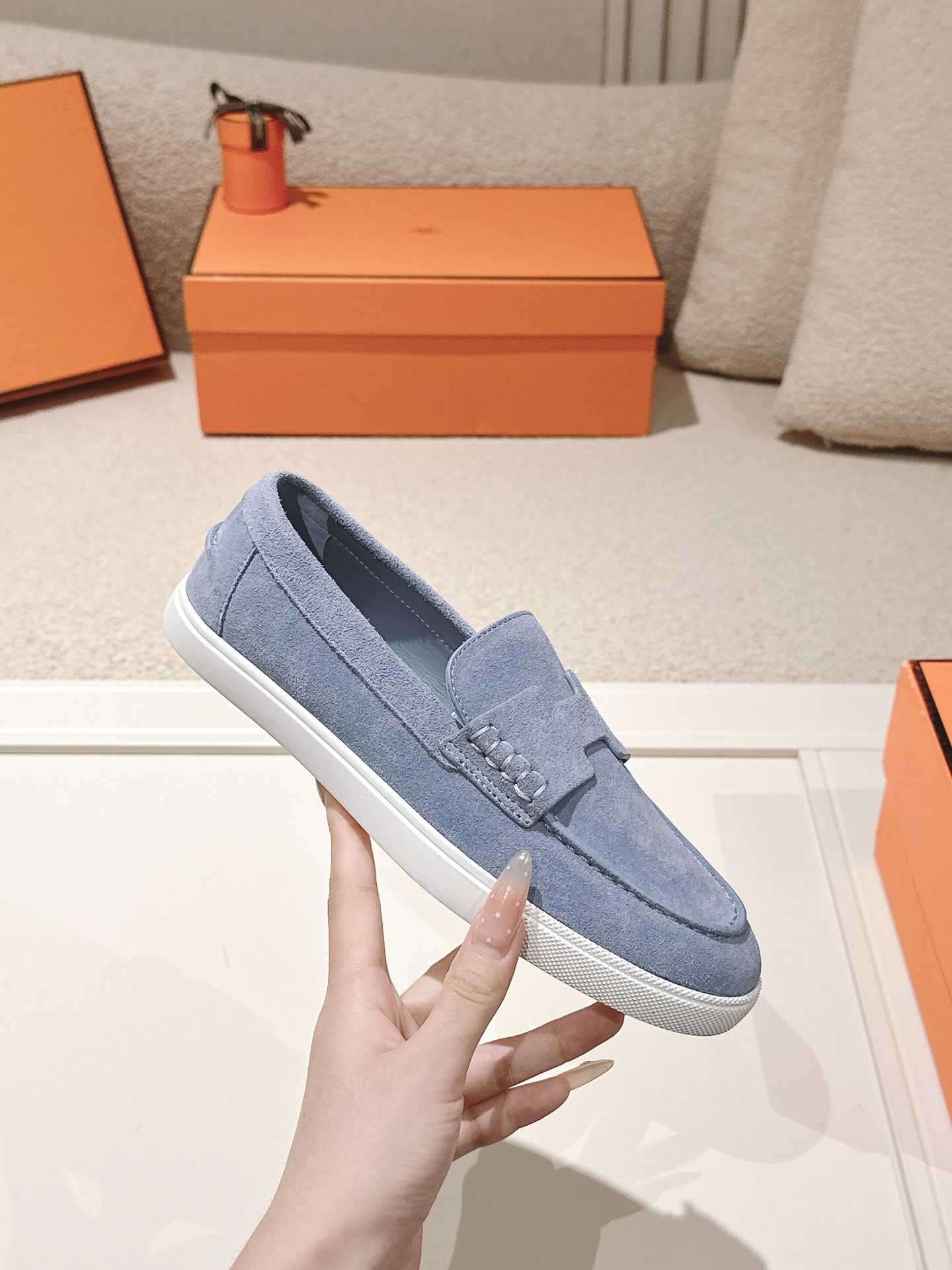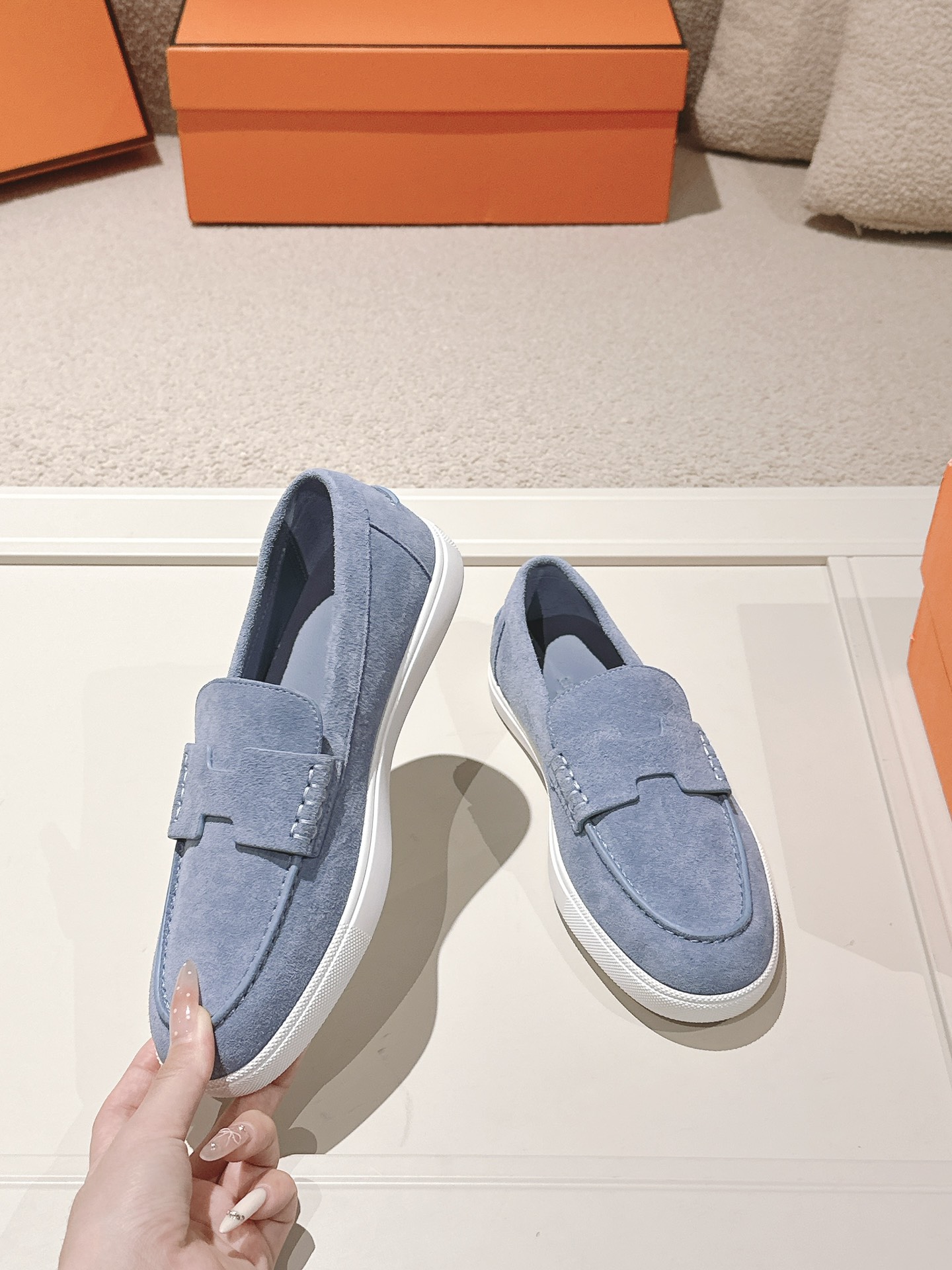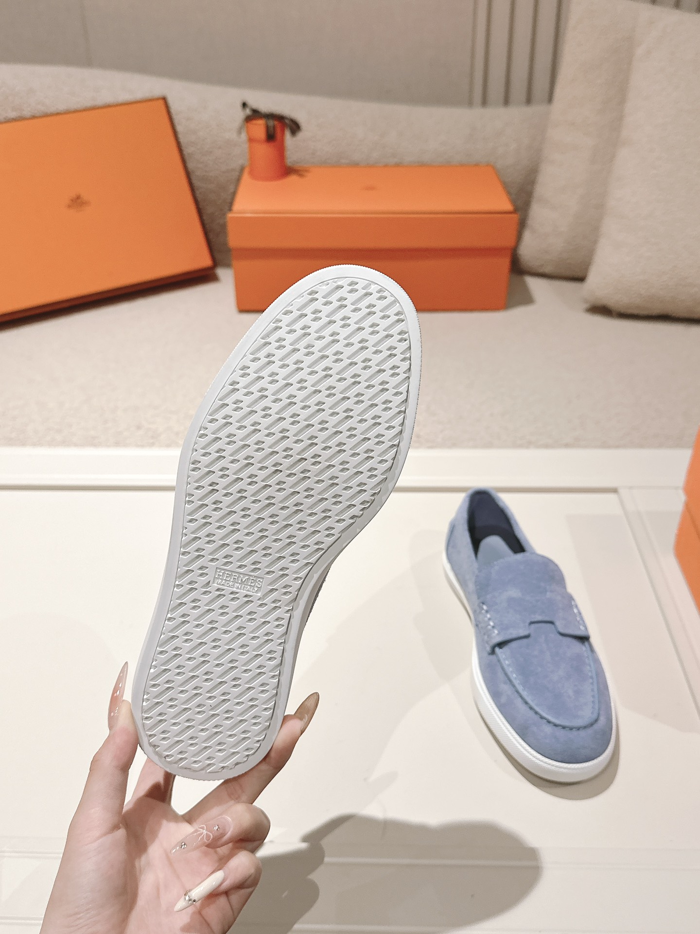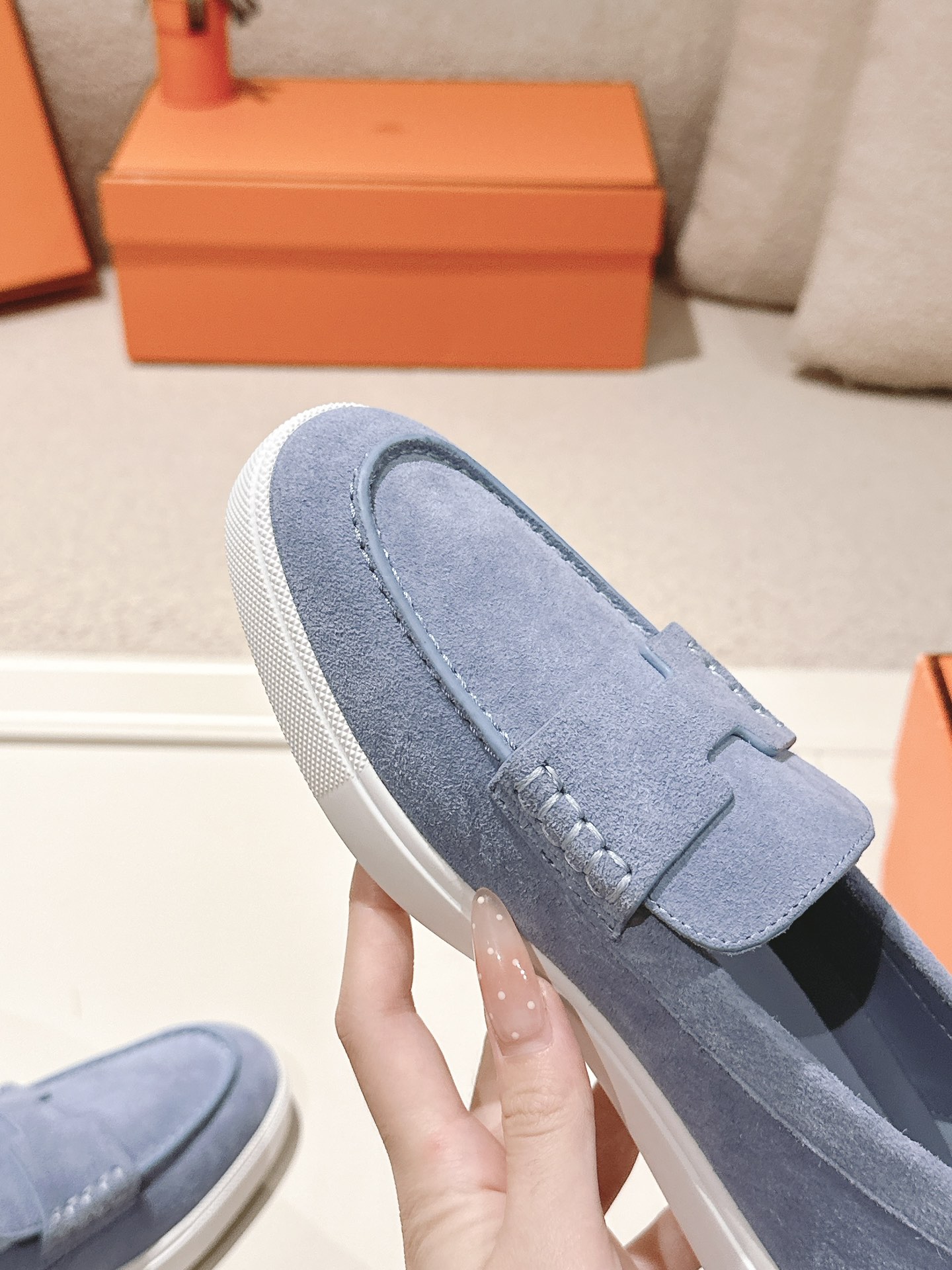 这款鞋子是AAAAA 1:1 质量 (非常棒). 使用了和原版一模一样的材料. 商标部分也保持了和爱马仕/Hermes一样. 图片拍摄是实物鞋子拍摄, 您所收到的实物保证和我们图片一模一样.