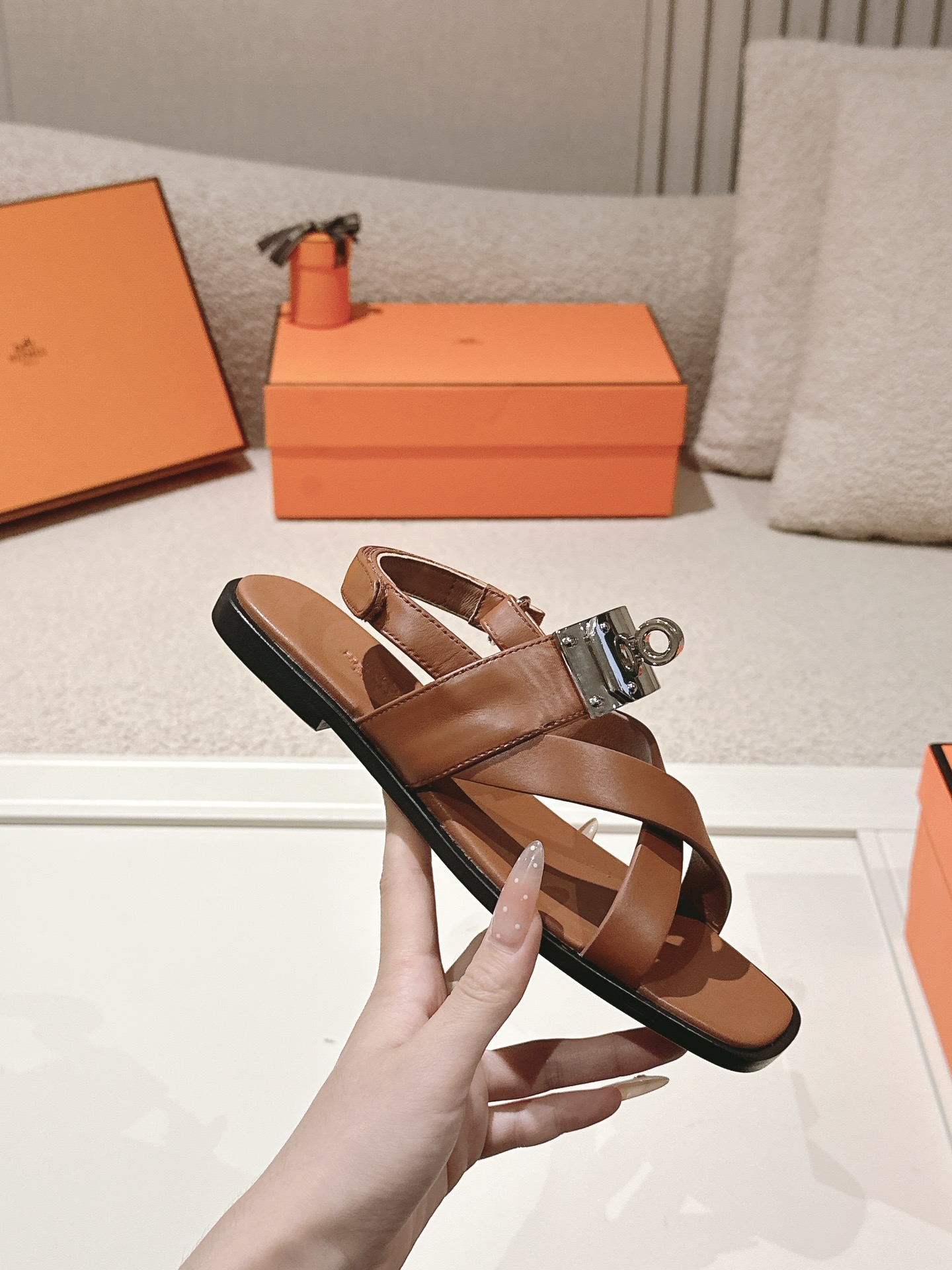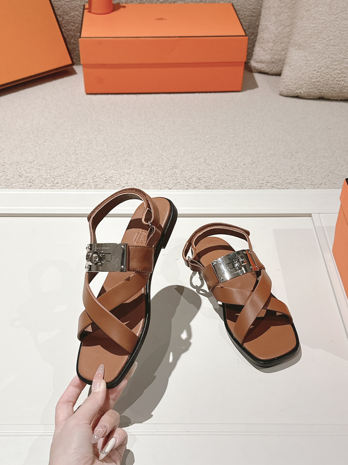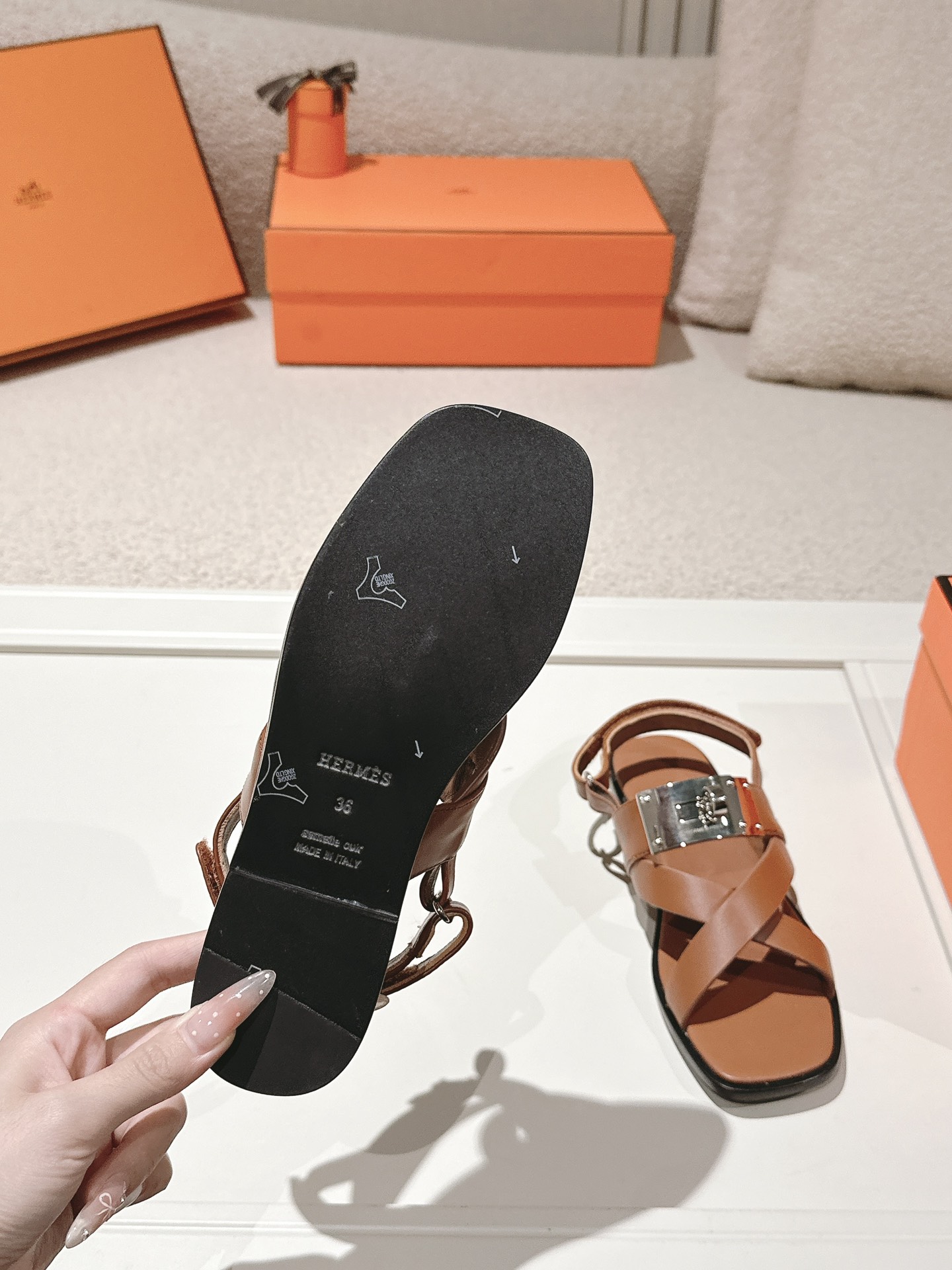 这款鞋子是AAAAA 1:1 质量 (非常棒). 使用了和原版一模一样的材料. 商标部分也保持了和爱马仕/Hermes一样. 图片拍摄是实物鞋子拍摄, 您所收到的实物保证和我们图片一模一样.