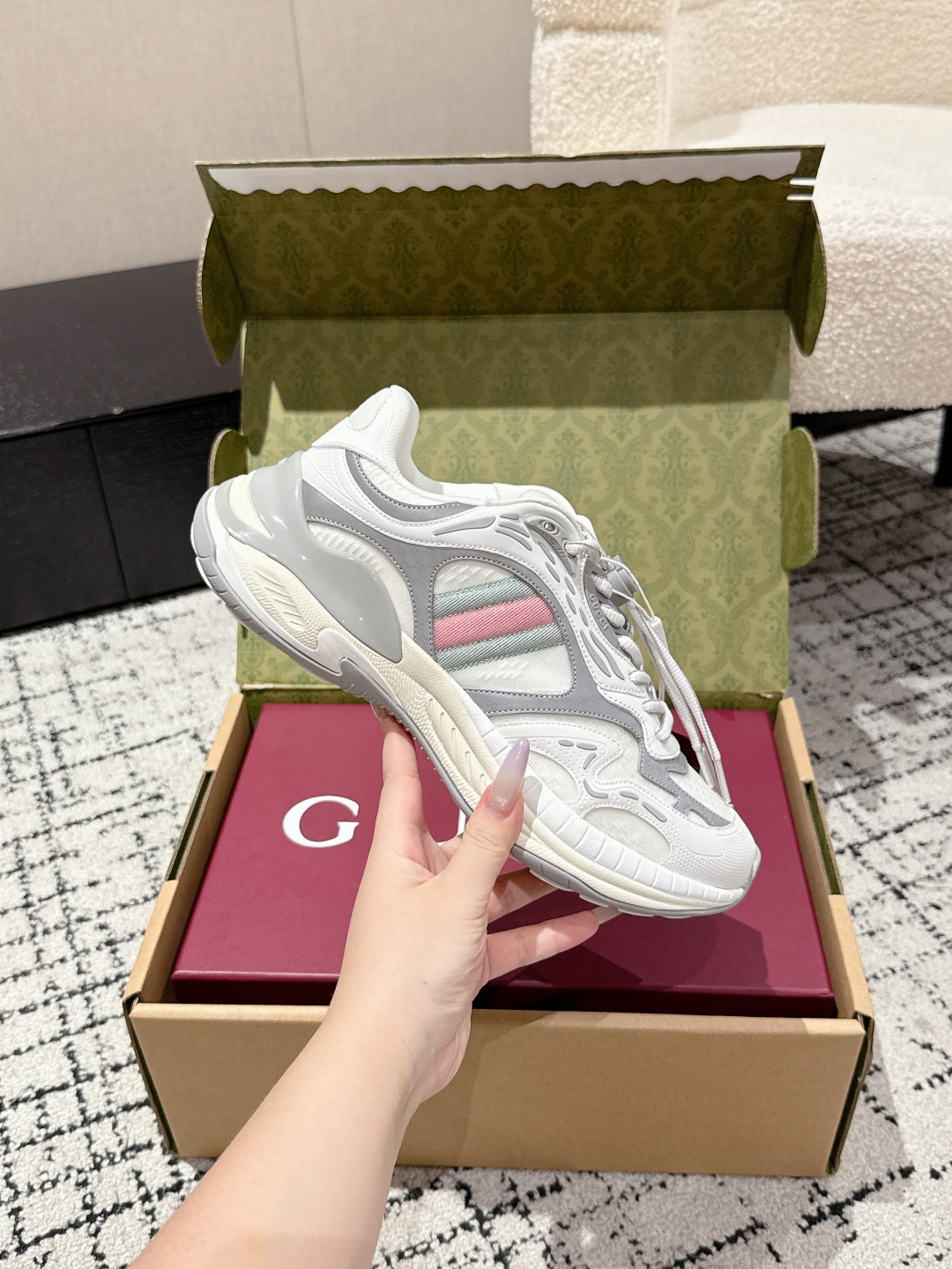 这款鞋子是AAAAA 1:1 质量 (非常棒). 使用了和原版一模一样的材料. 商标部分也保持了和古奇/Gucci一样. 图片拍摄是实物鞋子拍摄, 您所收到的实物保证和我们图片一模一样.
