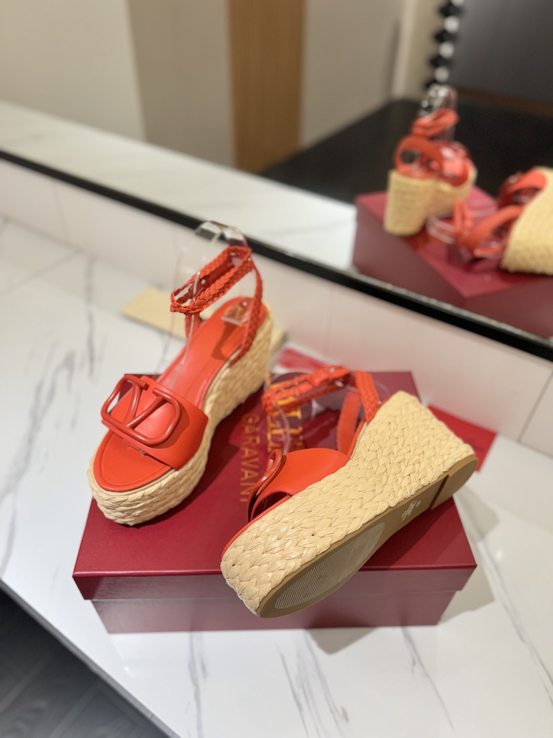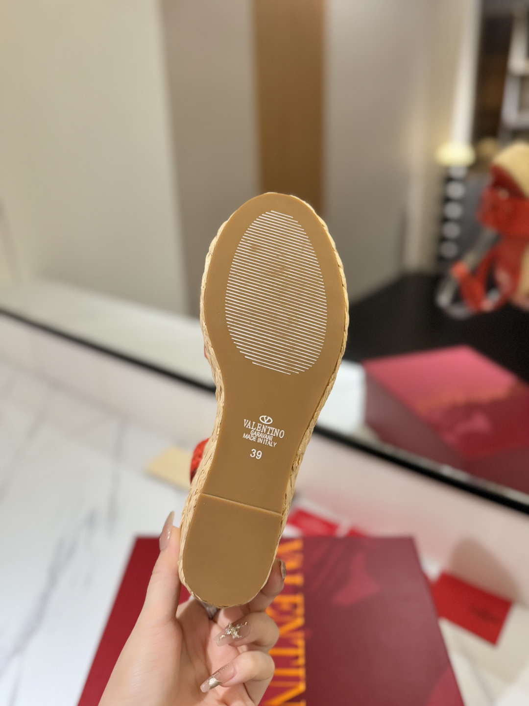 这款鞋子是AAAAA 1:1 质量 (非常棒). 使用了和原版一模一样的材料. 商标部分也保持了和华伦天奴/Valentino一样. 图片拍摄是实物鞋子拍摄, 您所收到的实物保证和我们图片一模一样.