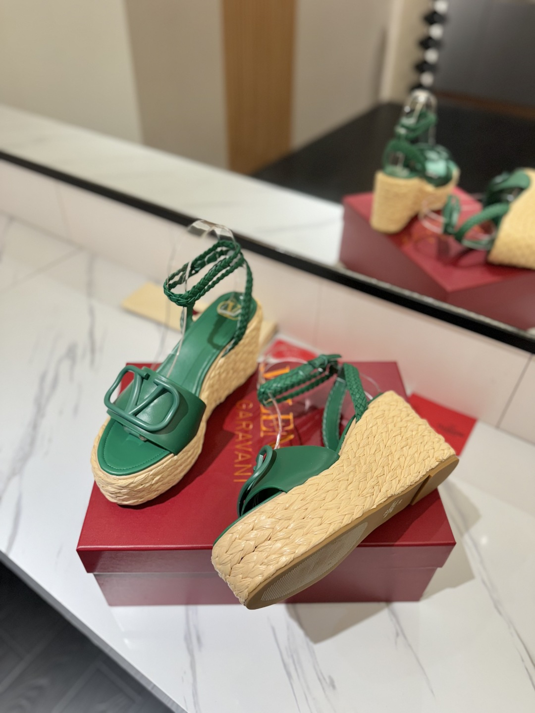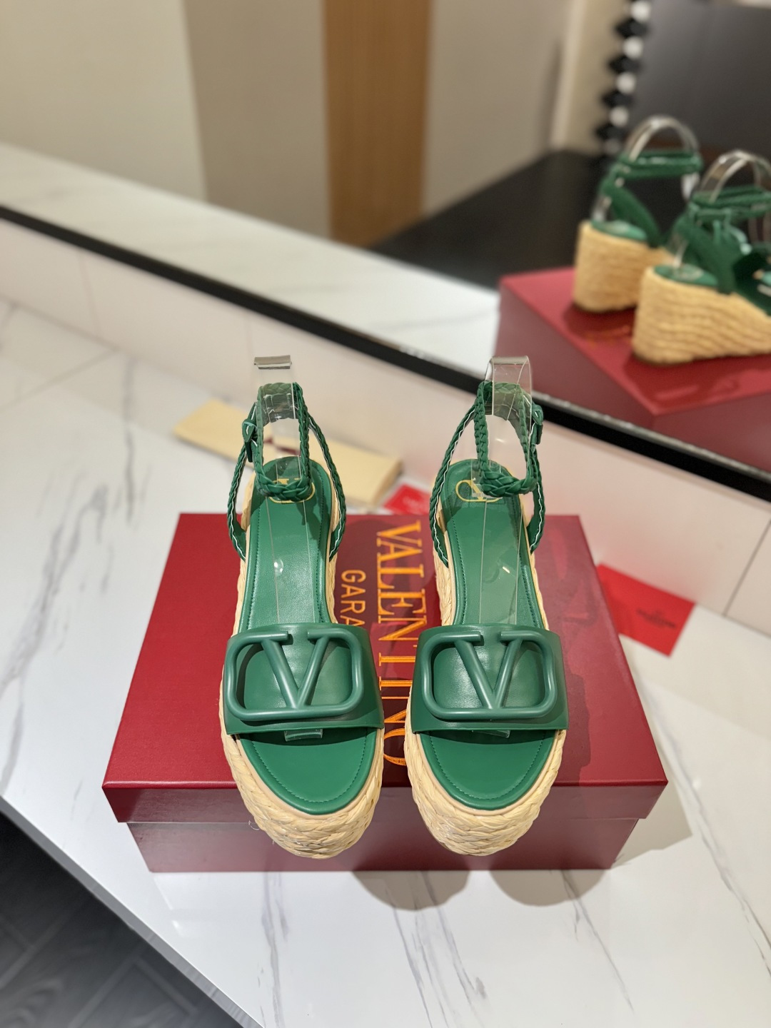这款鞋子是AAAAA 1:1 质量 (非常棒). 使用了和原版一模一样的材料. 商标部分也保持了和华伦天奴/Valentino一样. 图片拍摄是实物鞋子拍摄, 您所收到的实物保证和我们图片一模一样.