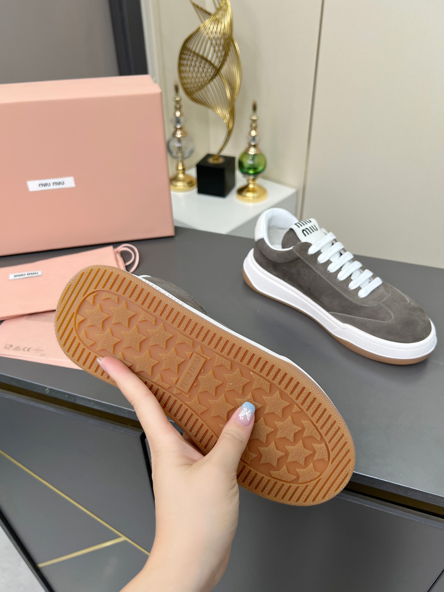 这款鞋子是AAAAA 1:1 质量 (非常棒). 使用了和原版一模一样的材料. 商标部分也保持了和缪缪/Miu Miu一样. 图片拍摄是实物鞋子拍摄, 您所收到的实物保证和我们图片一模一样.