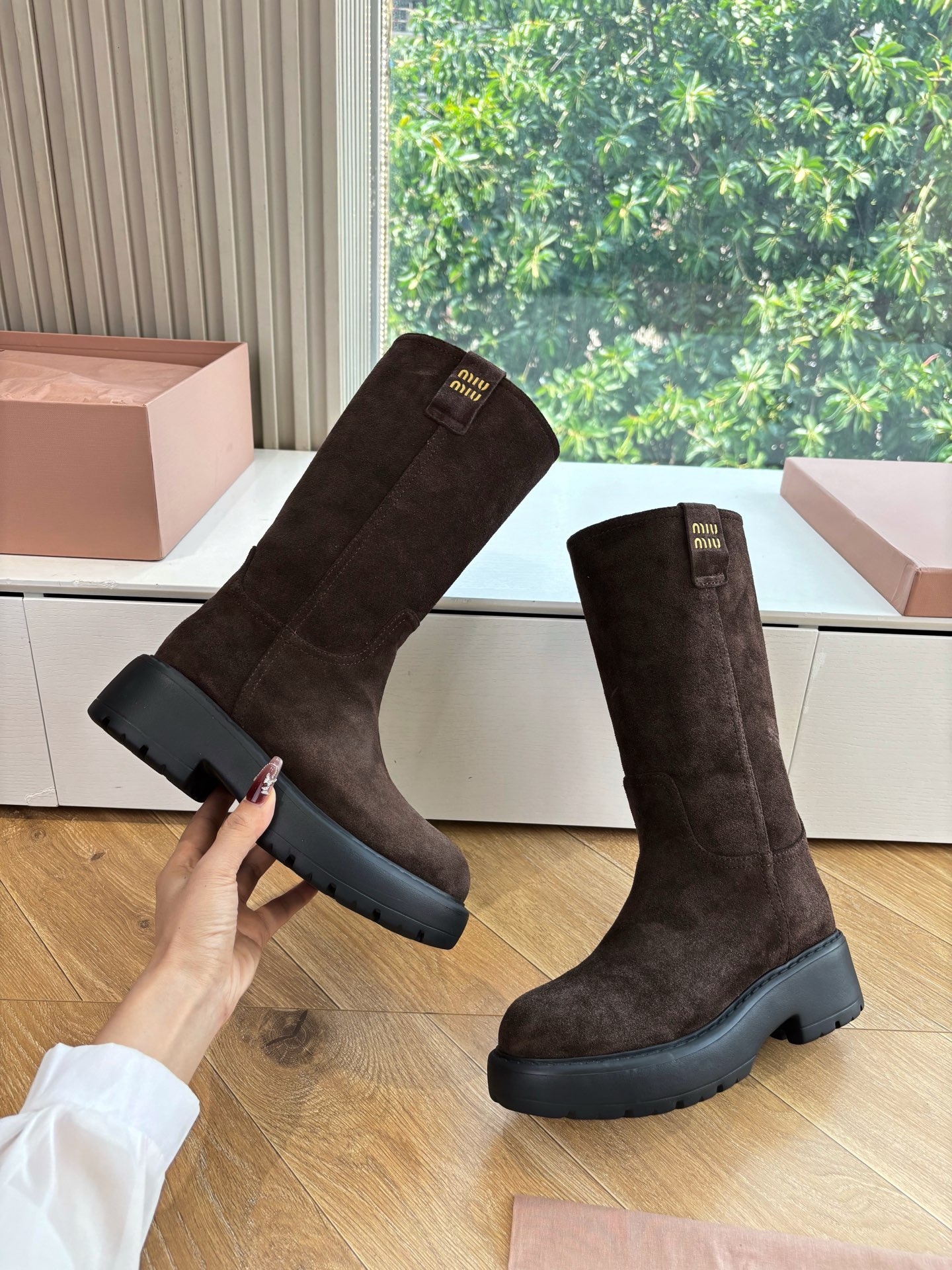 这款鞋子是AAAAA 1:1 质量 (非常棒). 使用了和原版一模一样的材料. 商标部分也保持了和缪缪/Miu Miu一样. 图片拍摄是实物鞋子拍摄, 您所收到的实物保证和我们图片一模一样.