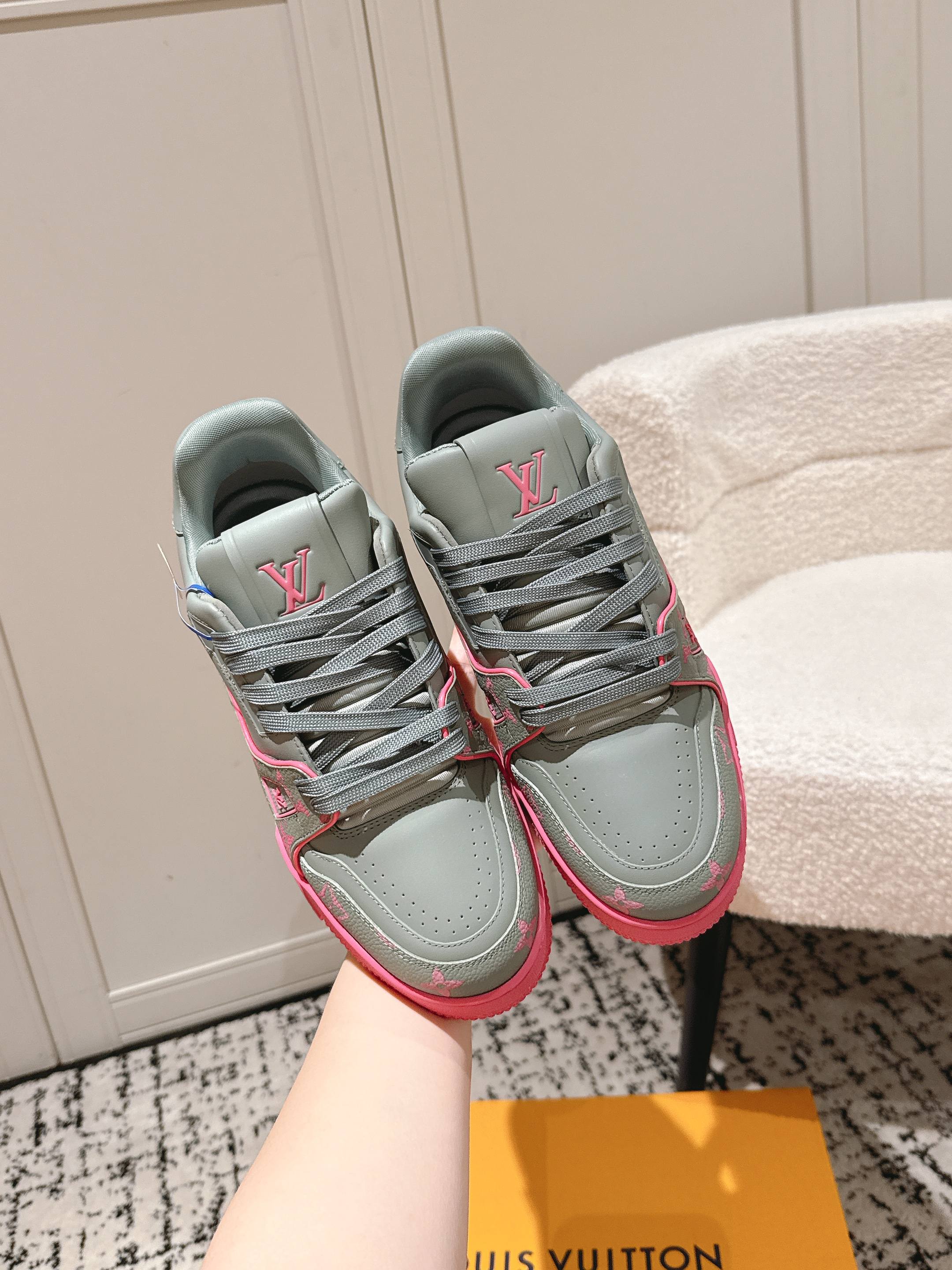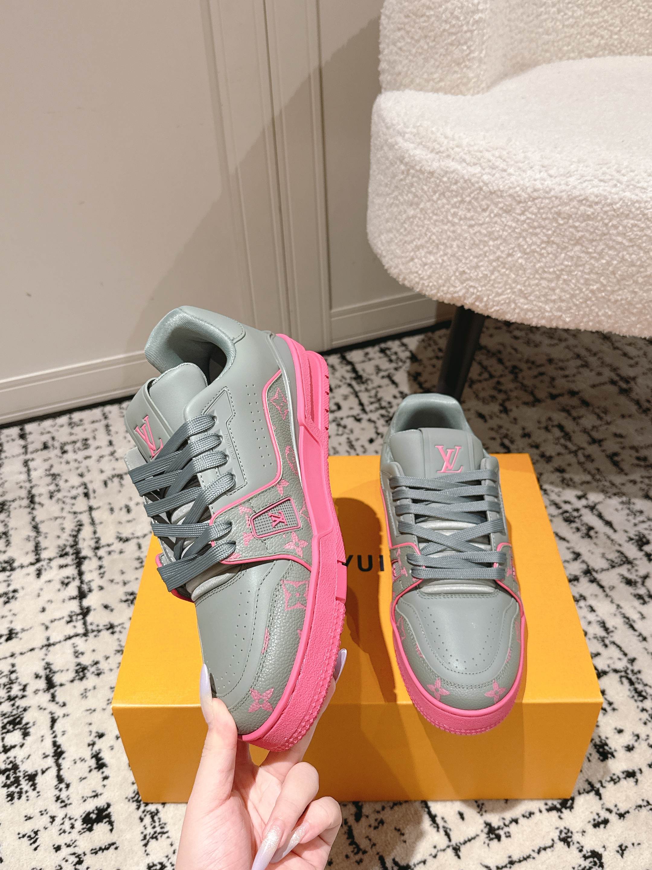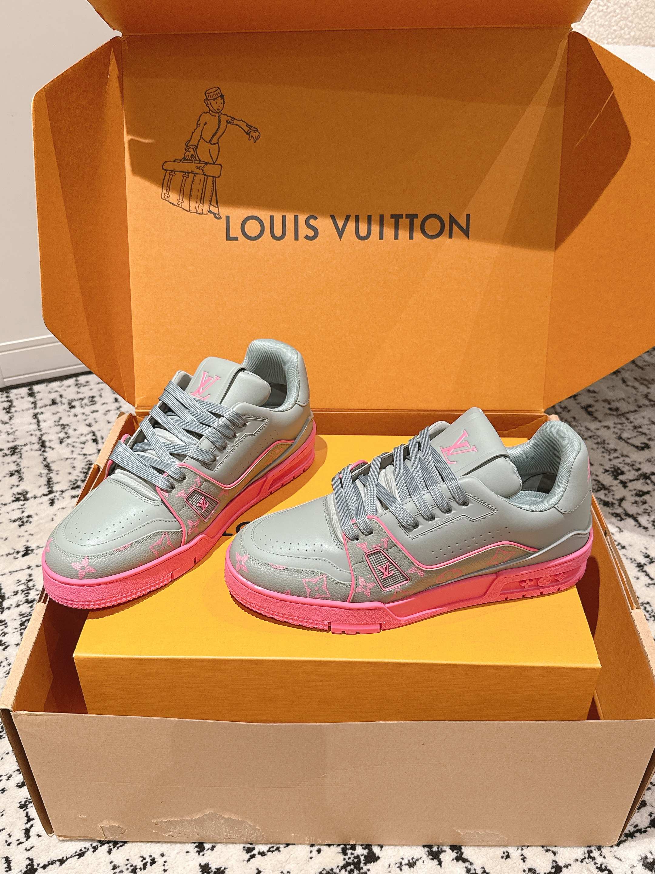 这款鞋子是AAAAA 1:1 质量 (非常棒). 使用了和原版一模一样的材料. 商标部分也保持了和路易威登/Louis Vuitton一样. 图片拍摄是实物鞋子拍摄, 您所收到的实物保证和我们图片一模一样.