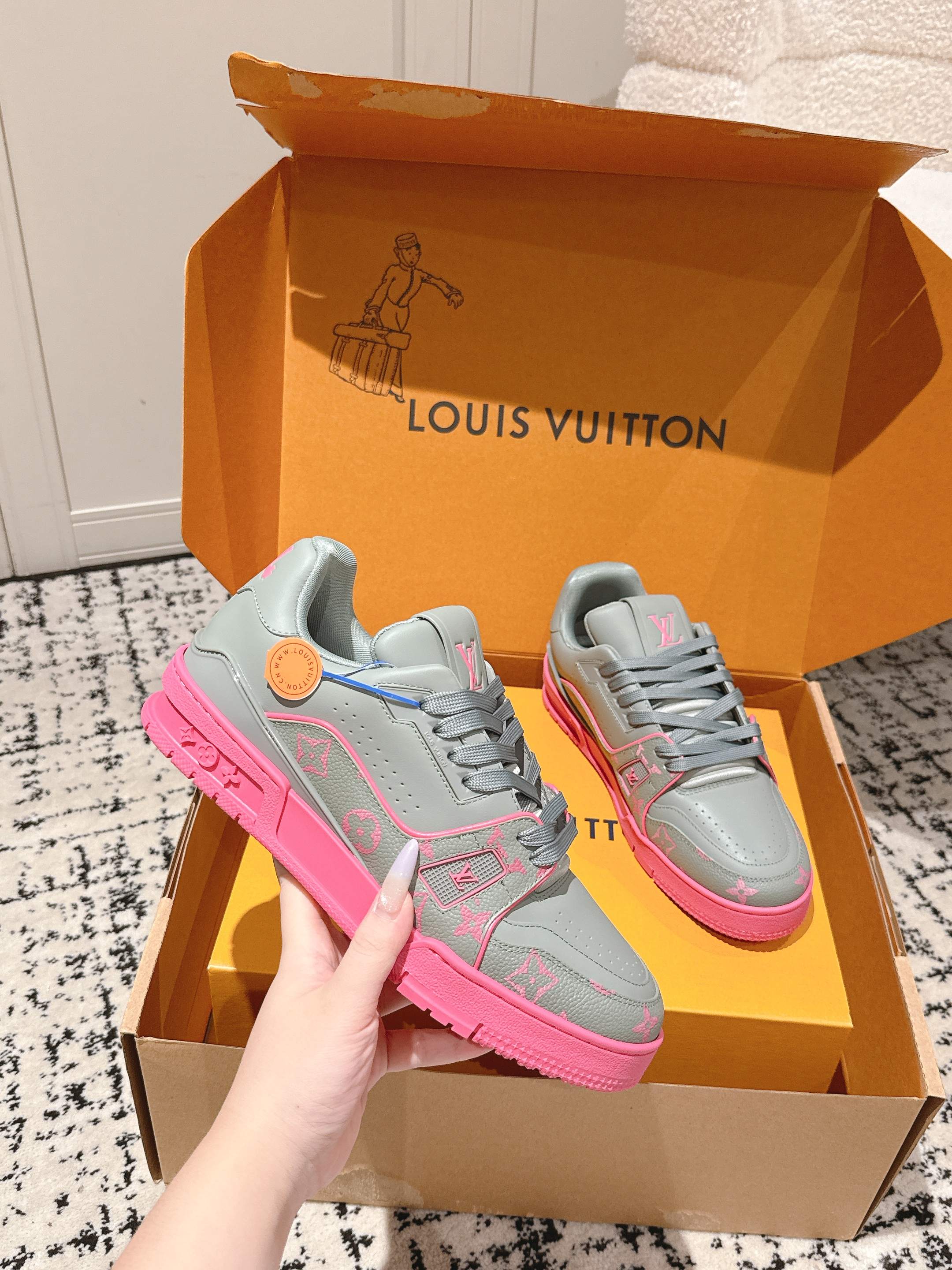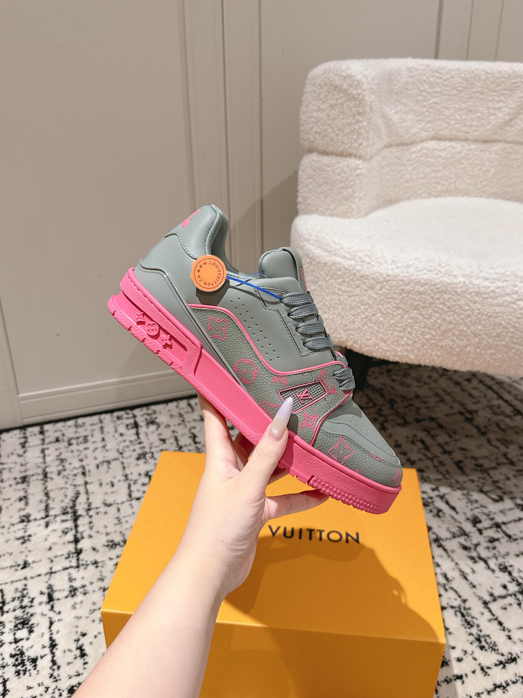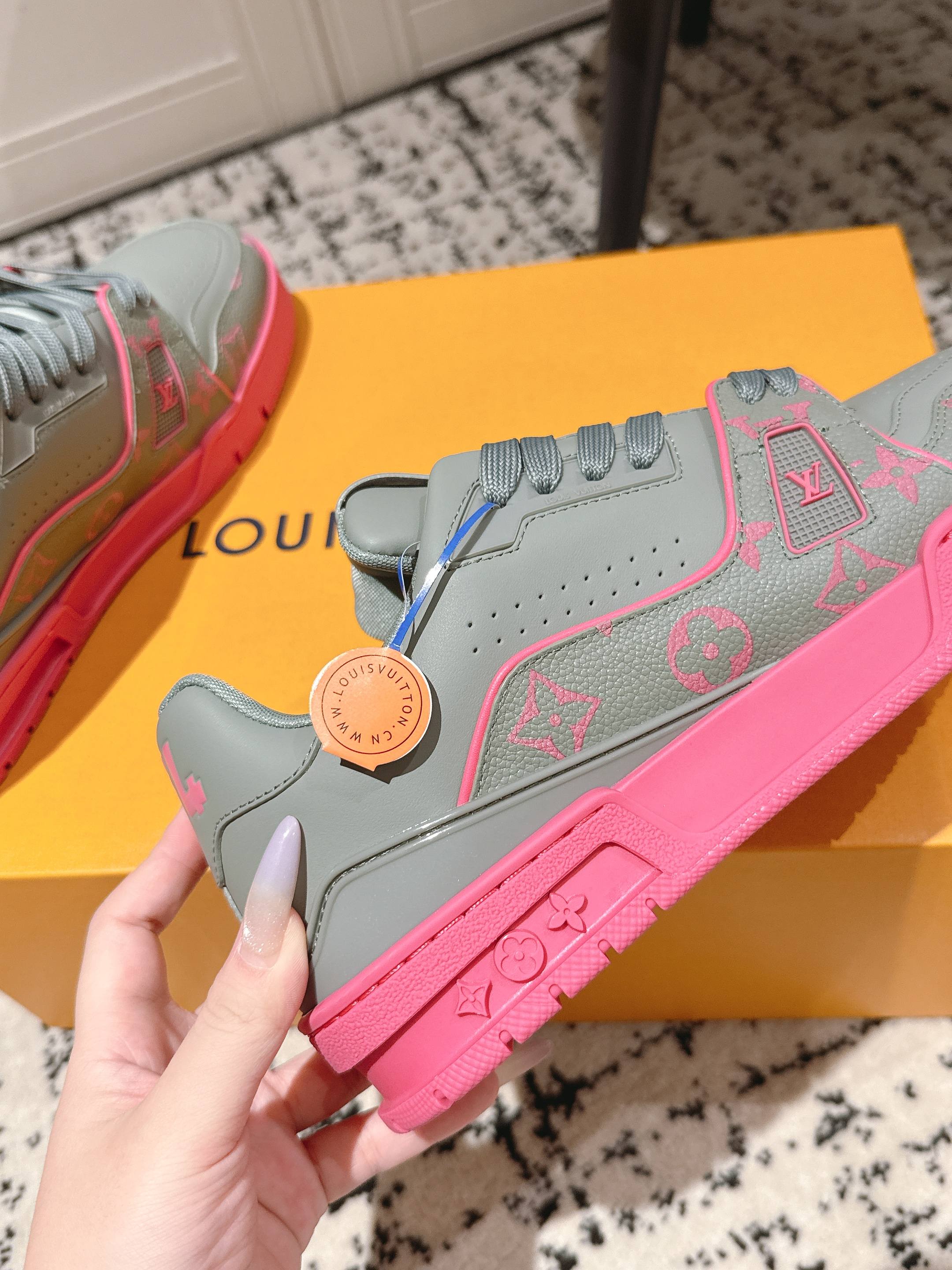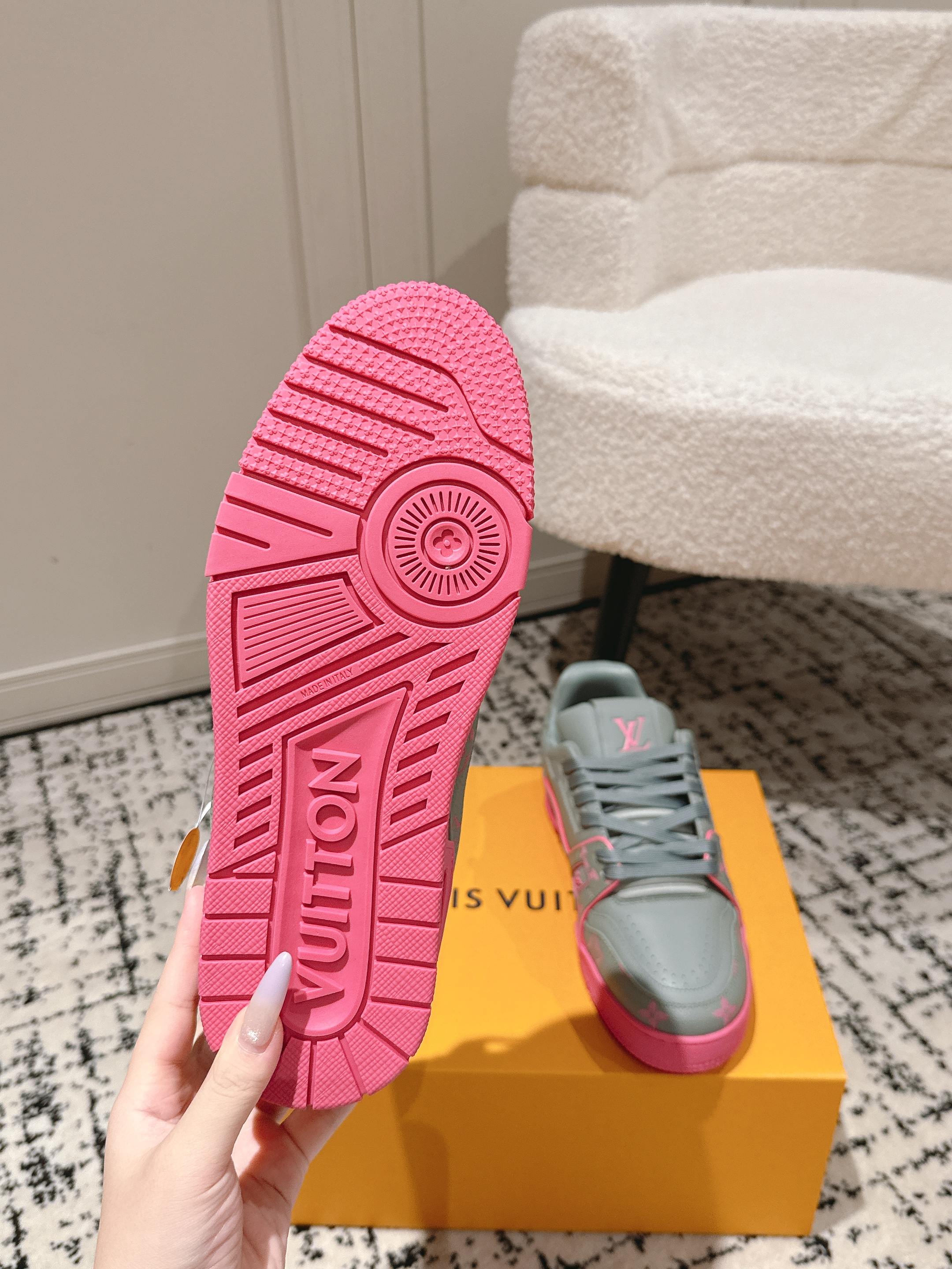 这款鞋子是AAAAA 1:1 质量 (非常棒). 使用了和原版一模一样的材料. 商标部分也保持了和路易威登/Louis Vuitton一样. 图片拍摄是实物鞋子拍摄, 您所收到的实物保证和我们图片一模一样.
