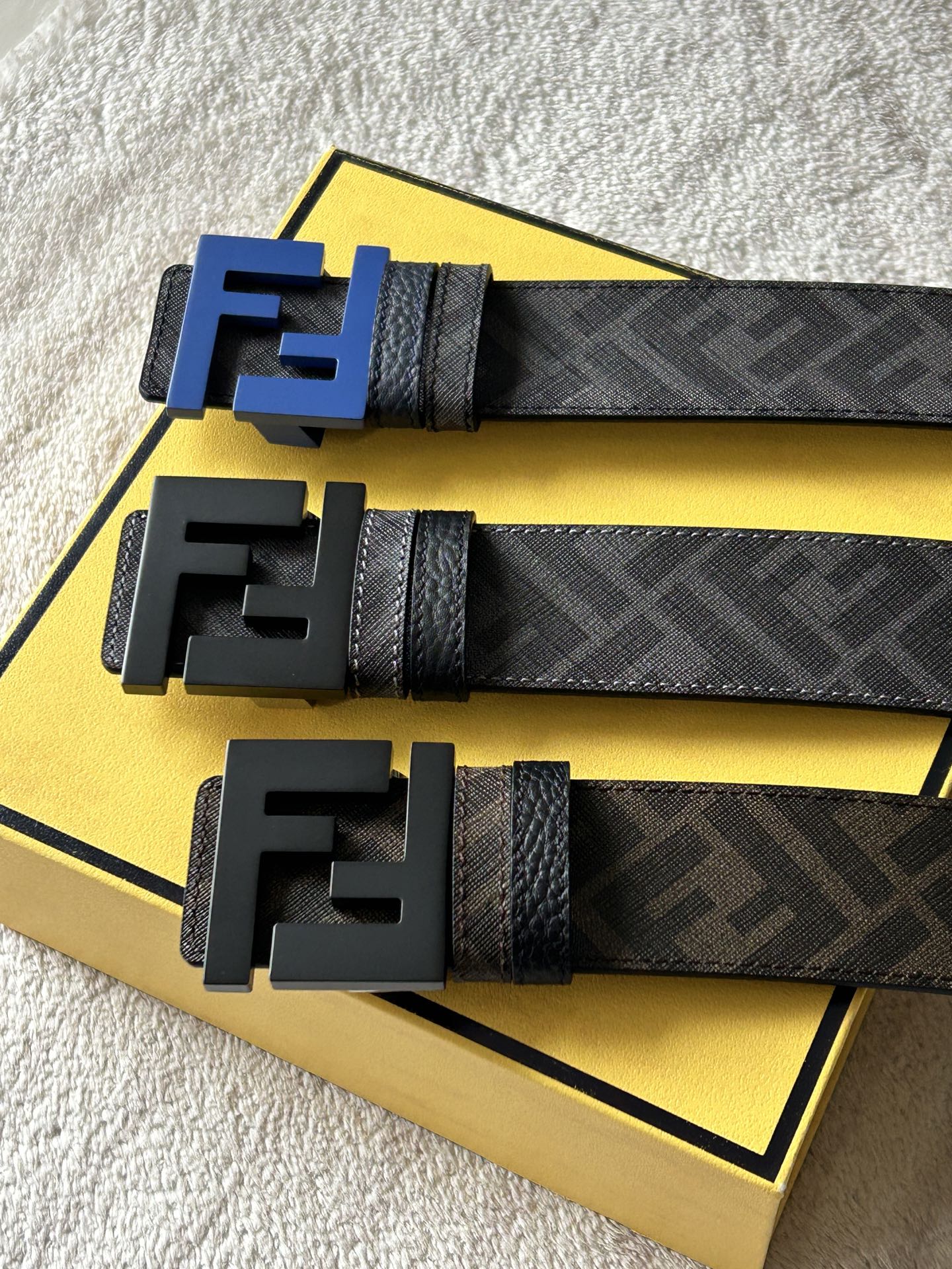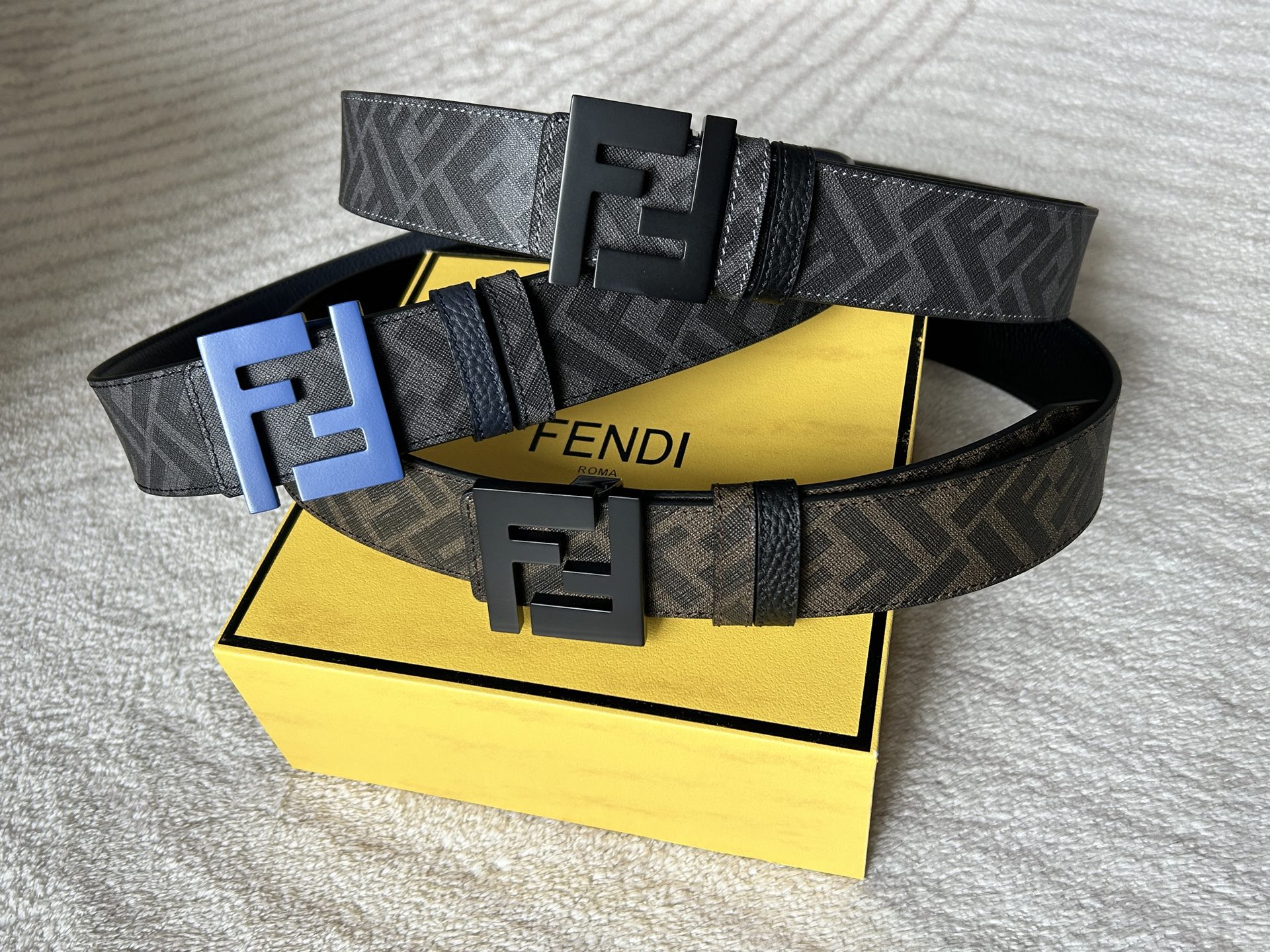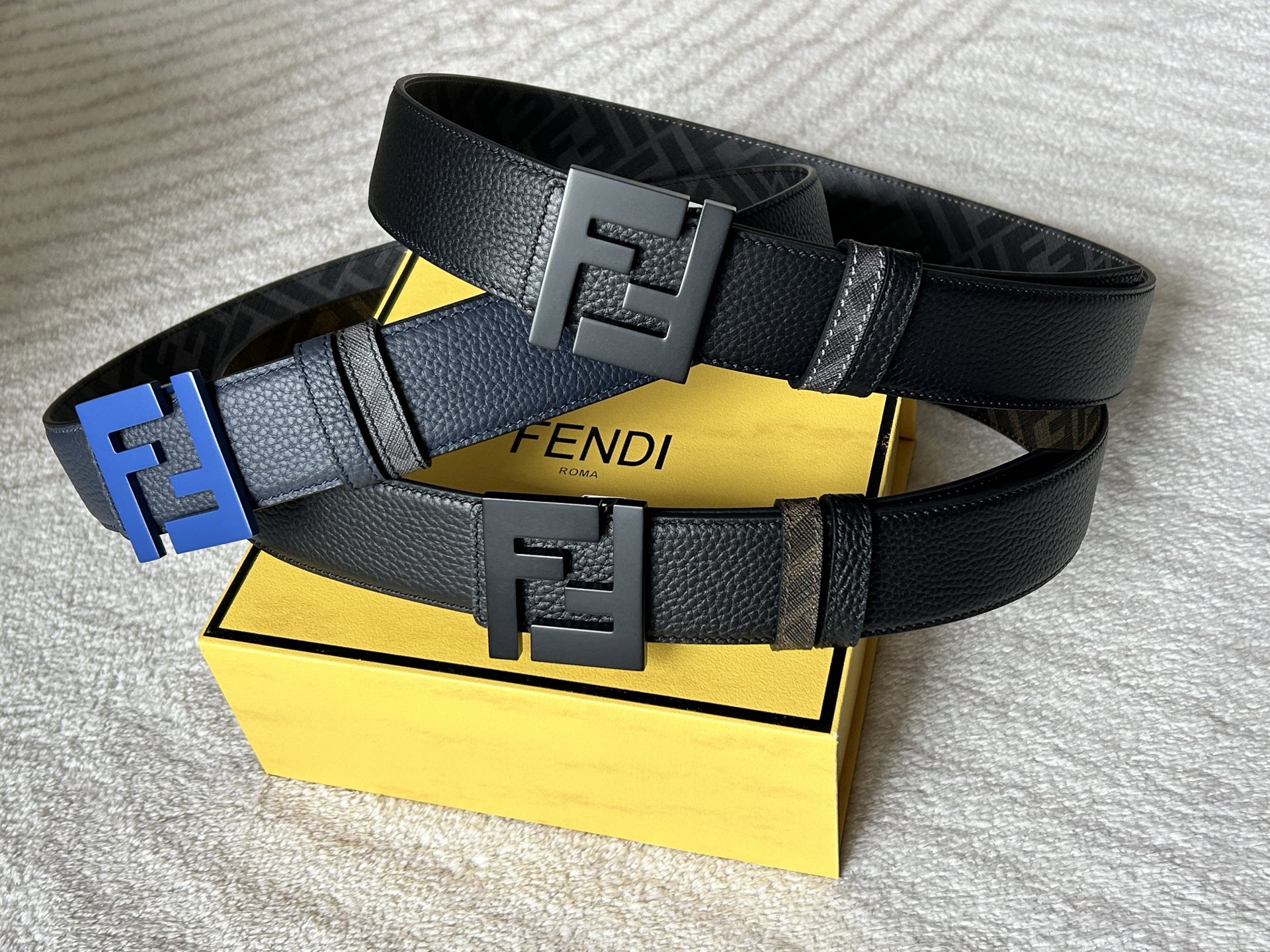 这款皮带是AAAAA 1:1 质量 (非常棒). 使用了和原版一模一样的材料. 商标部分也保持了和芬迪/Fendi一样. 图片拍摄是实物皮带拍摄, 您所收到的实物保证和我们图片一模一样.