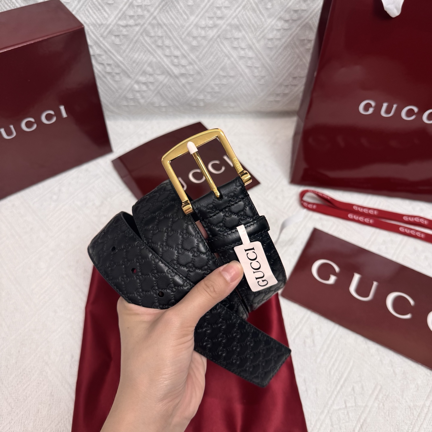 这款皮带是AAAAA 1:1 质量 (非常棒). 使用了和原版一模一样的材料. 商标部分也保持了和古奇/Gucci一样. 图片拍摄是实物皮带拍摄, 您所收到的实物保证和我们图片一模一样.