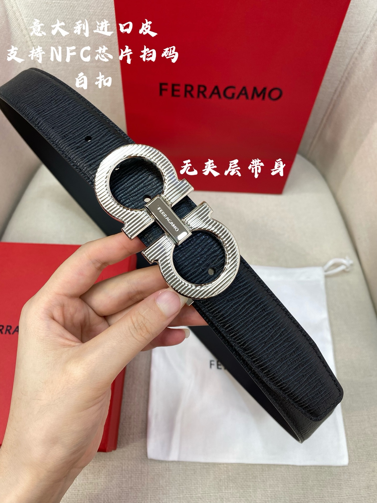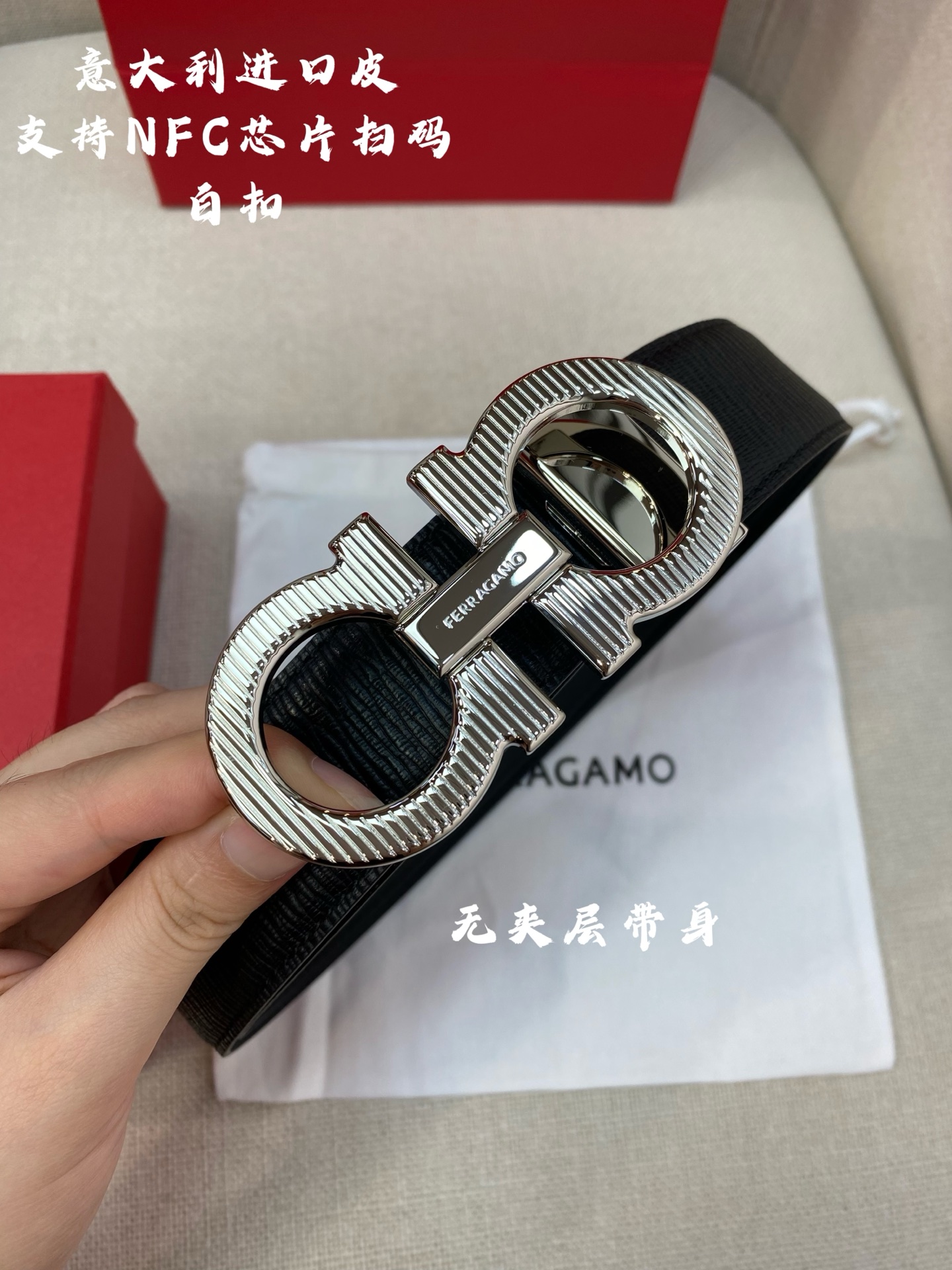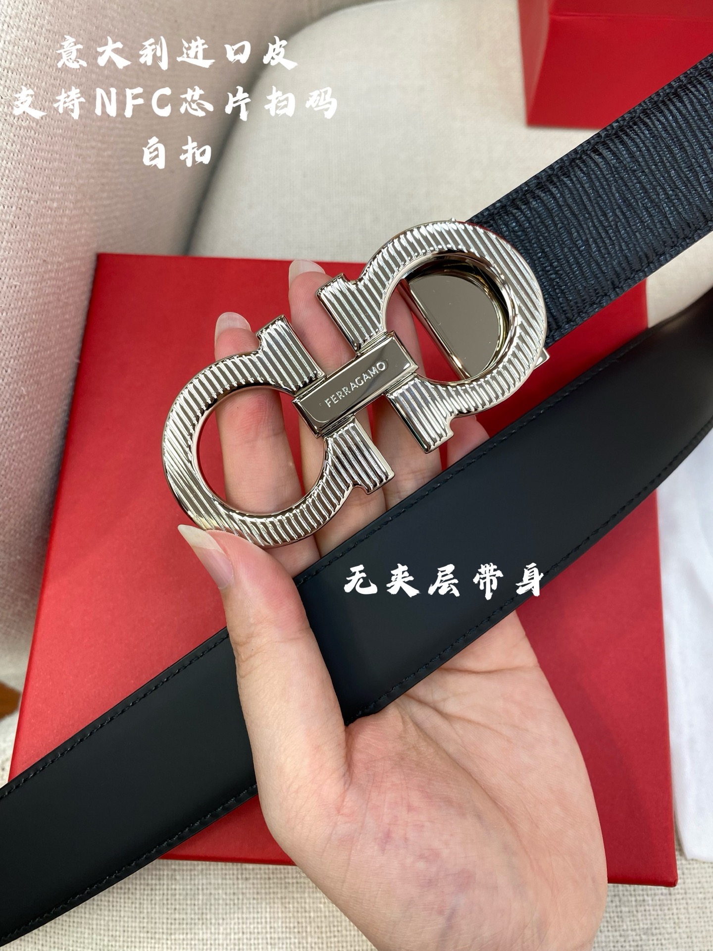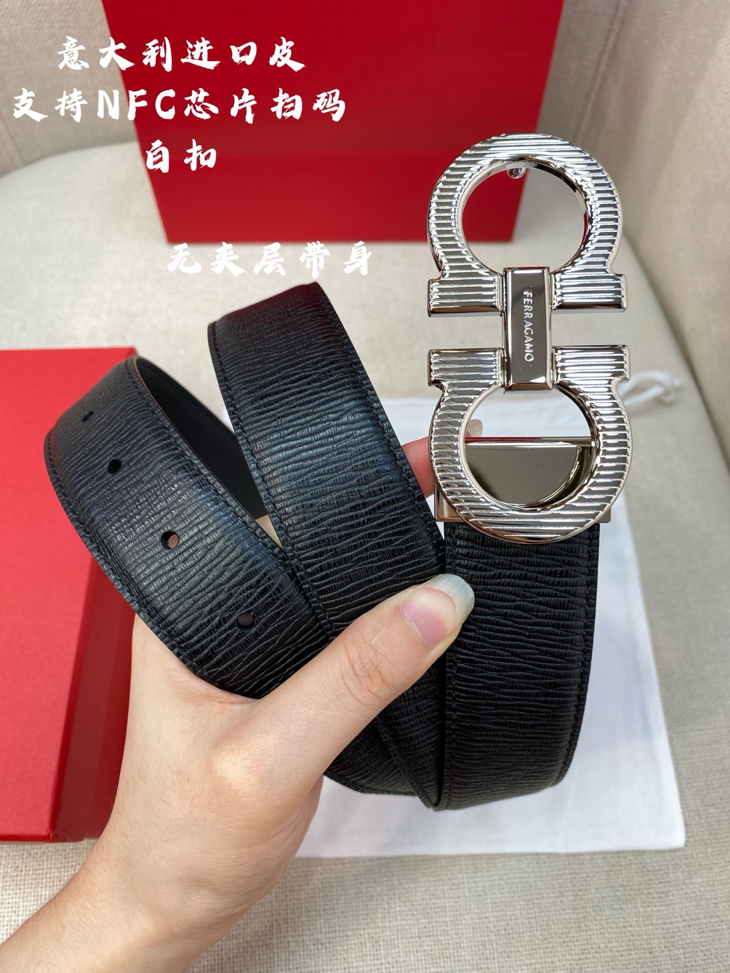 这款皮带是AAAAA 1:1 质量 (非常棒). 使用了和原版一模一样的材料. 商标部分也保持了和一样. 图片拍摄是实物皮带拍摄, 您所收到的实物保证和我们图片一模一样.