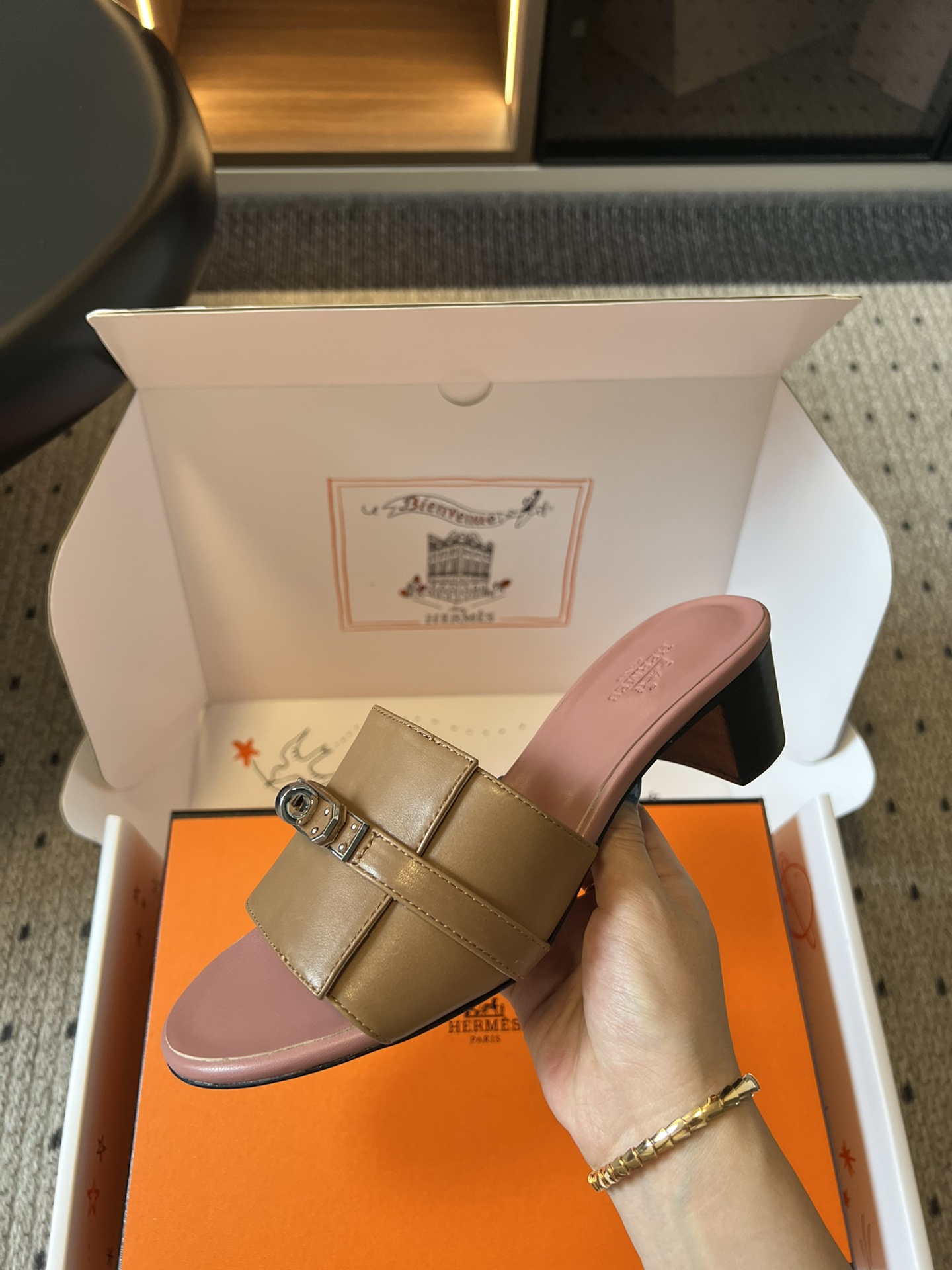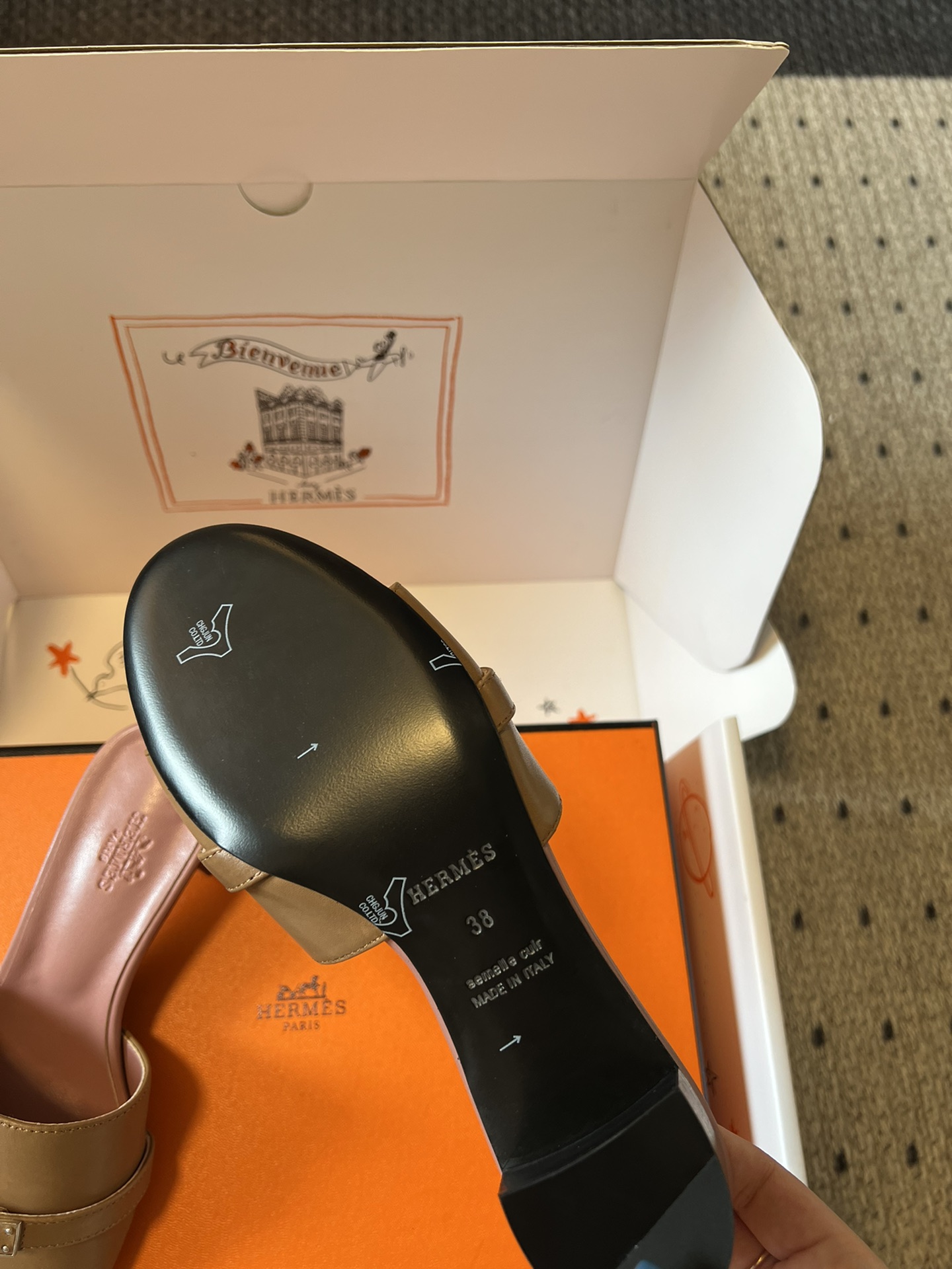 这款鞋子是AAAAA 1:1 质量 (非常棒). 使用了和原版一模一样的材料. 商标部分也保持了和爱马仕/Hermes一样. 图片拍摄是实物鞋子拍摄, 您所收到的实物保证和我们图片一模一样.