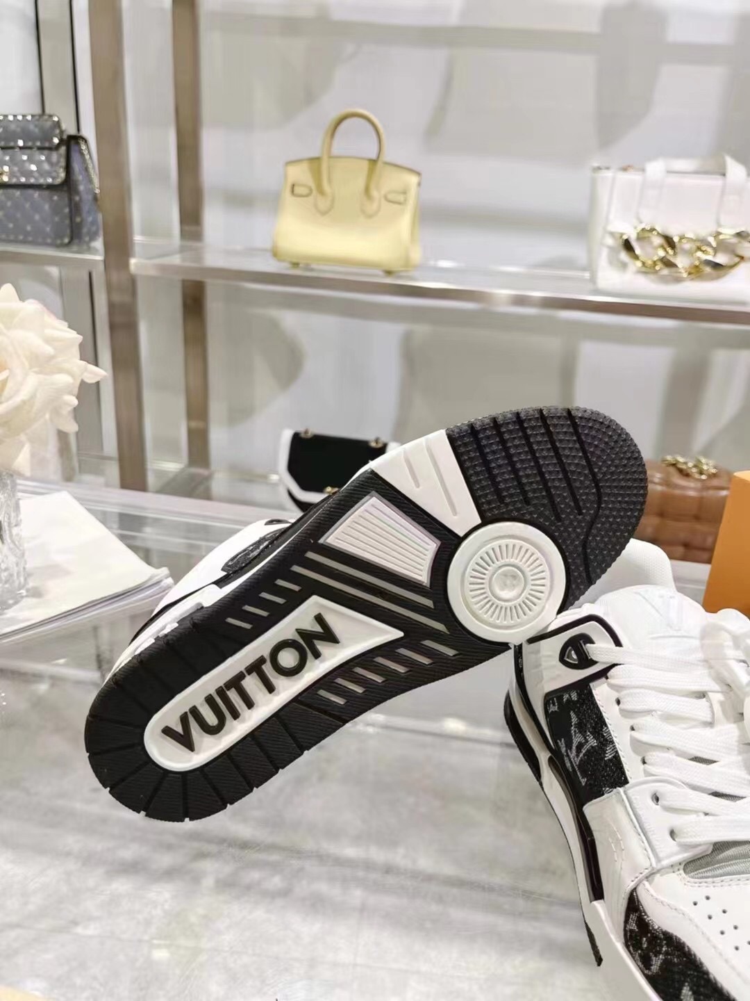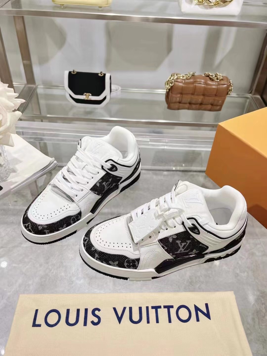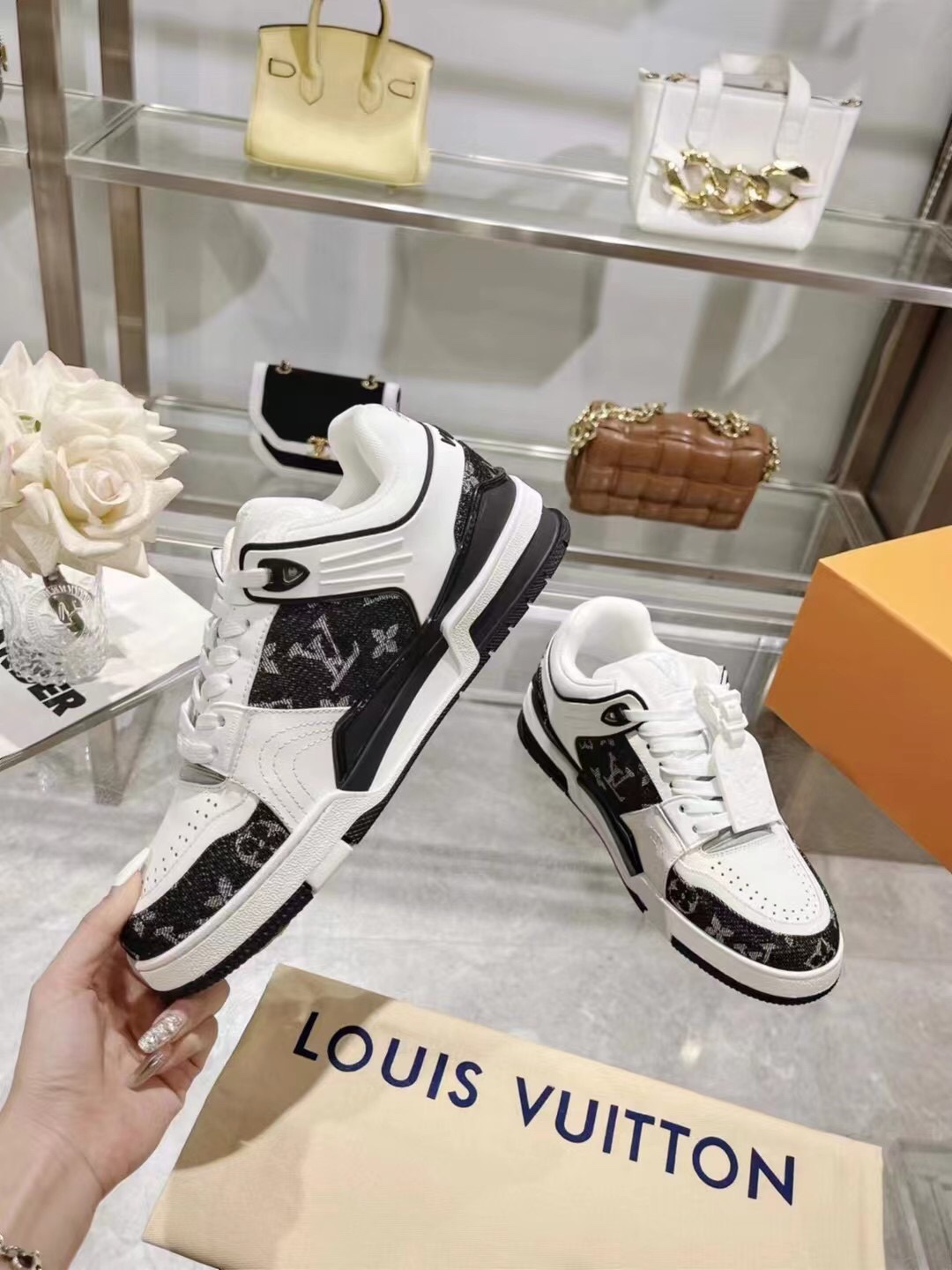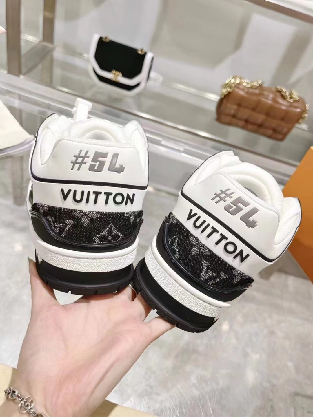 这款鞋子是AAAAA 1:1 质量 (非常棒). 使用了和原版一模一样的材料. 商标部分也保持了和路易威登/Louis Vuitton一样. 图片拍摄是实物鞋子拍摄, 您所收到的实物保证和我们图片一模一样.