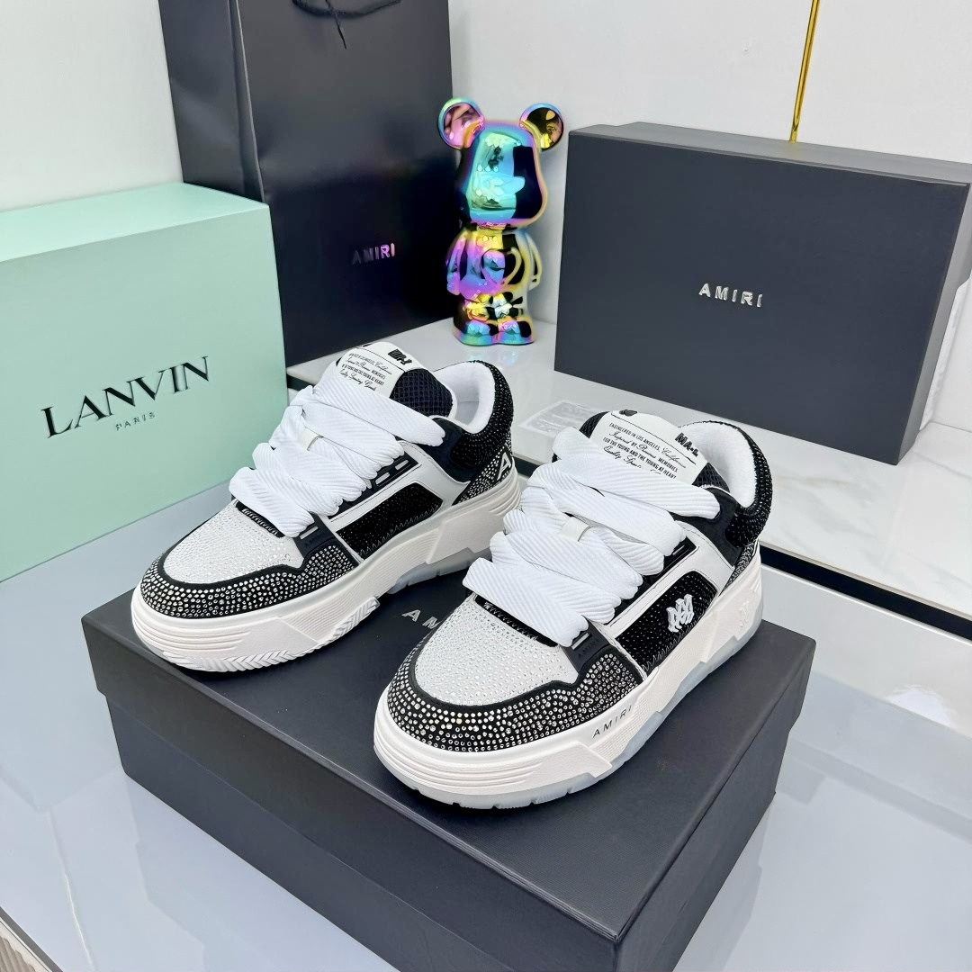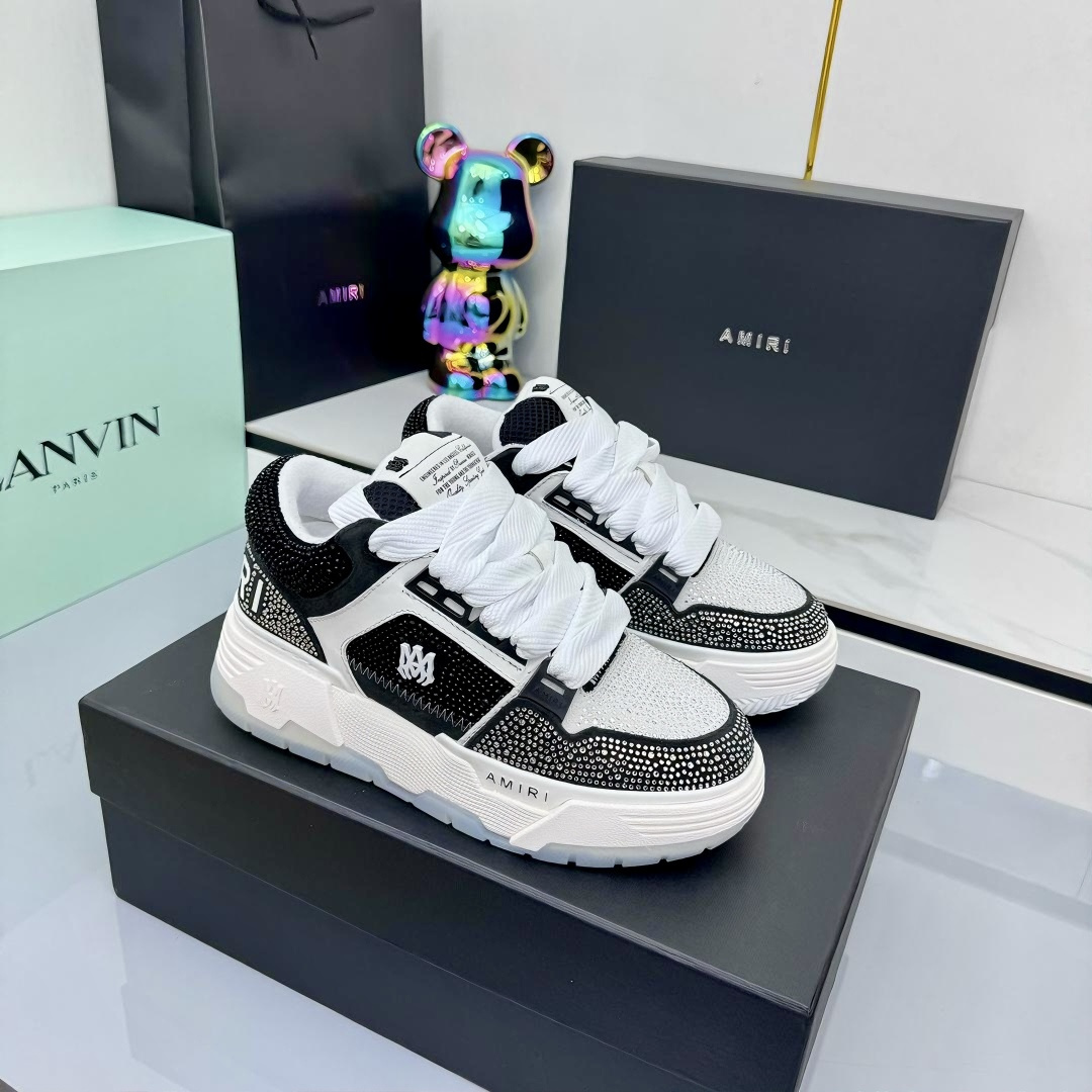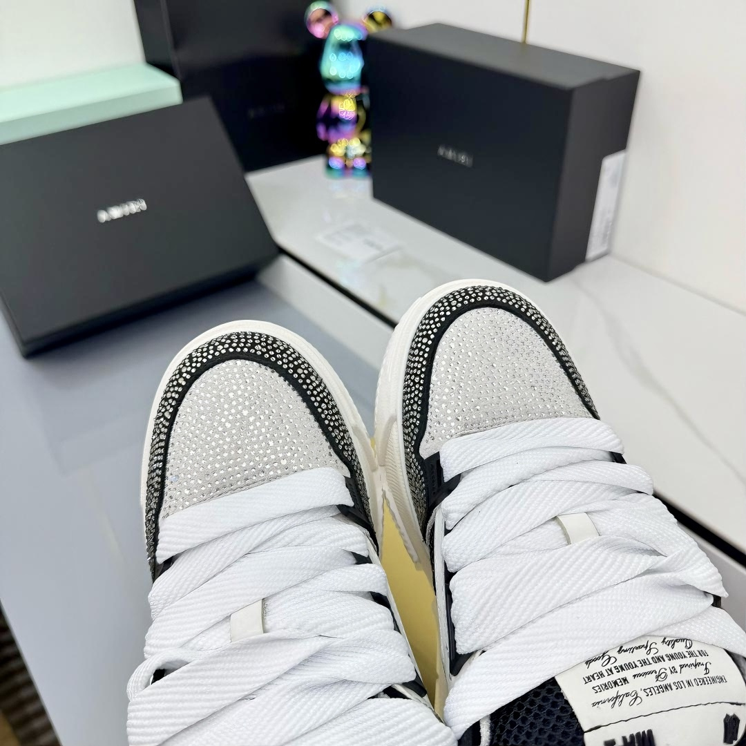 这款鞋子是AAAAA 1:1 质量 (非常棒). 使用了和原版一模一样的材料. 商标部分也保持了和AMIRI一样. 图片拍摄是实物鞋子拍摄, 您所收到的实物保证和我们图片一模一样.