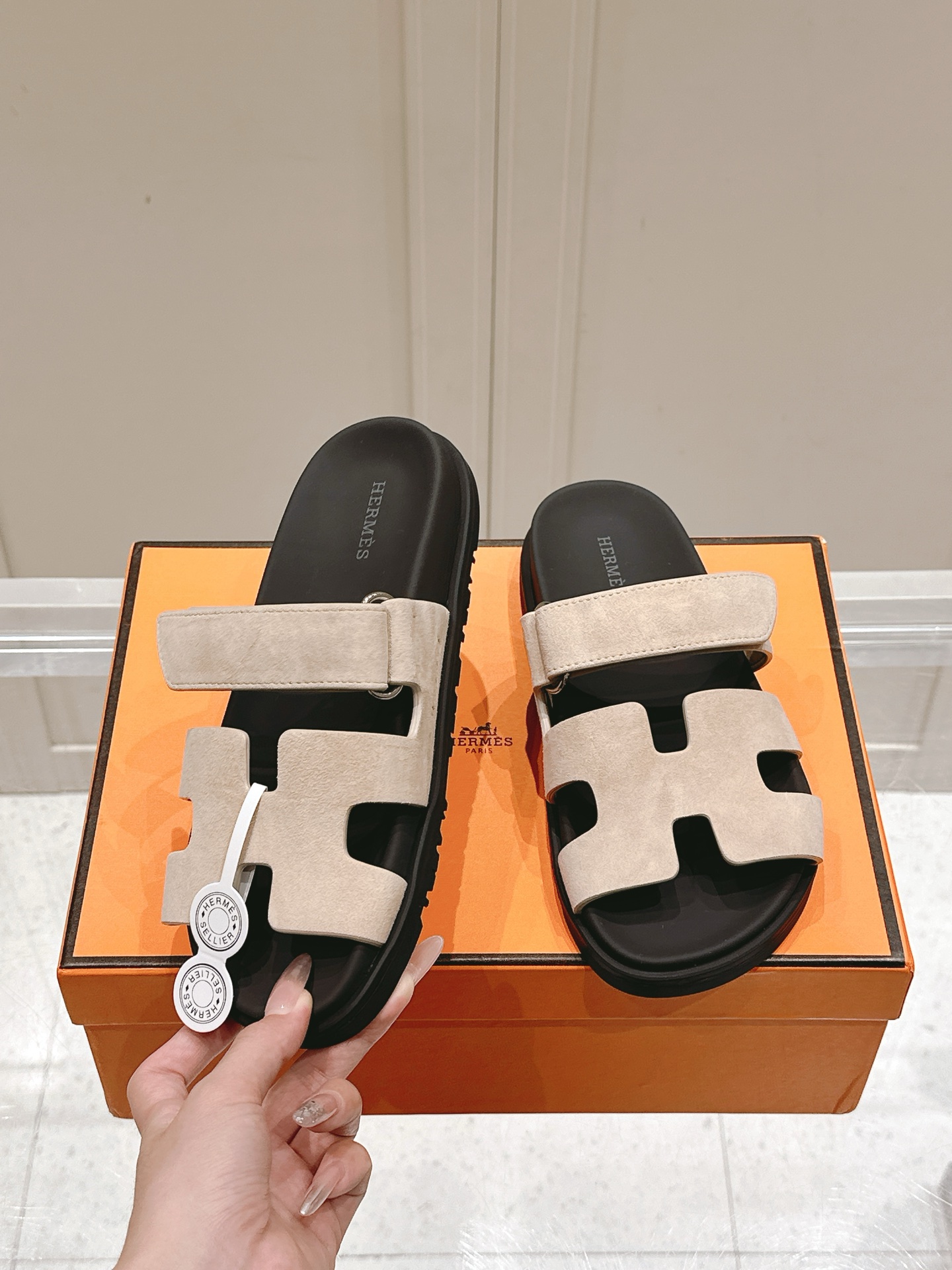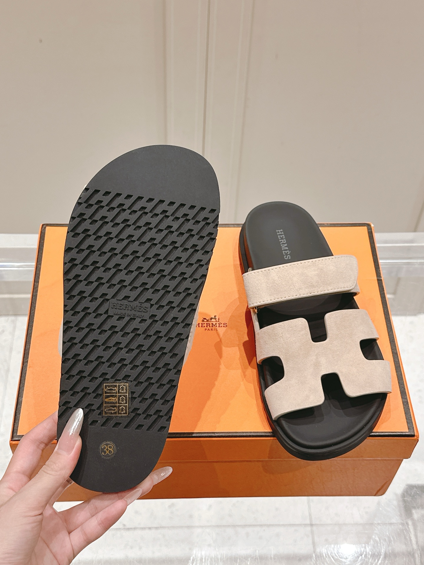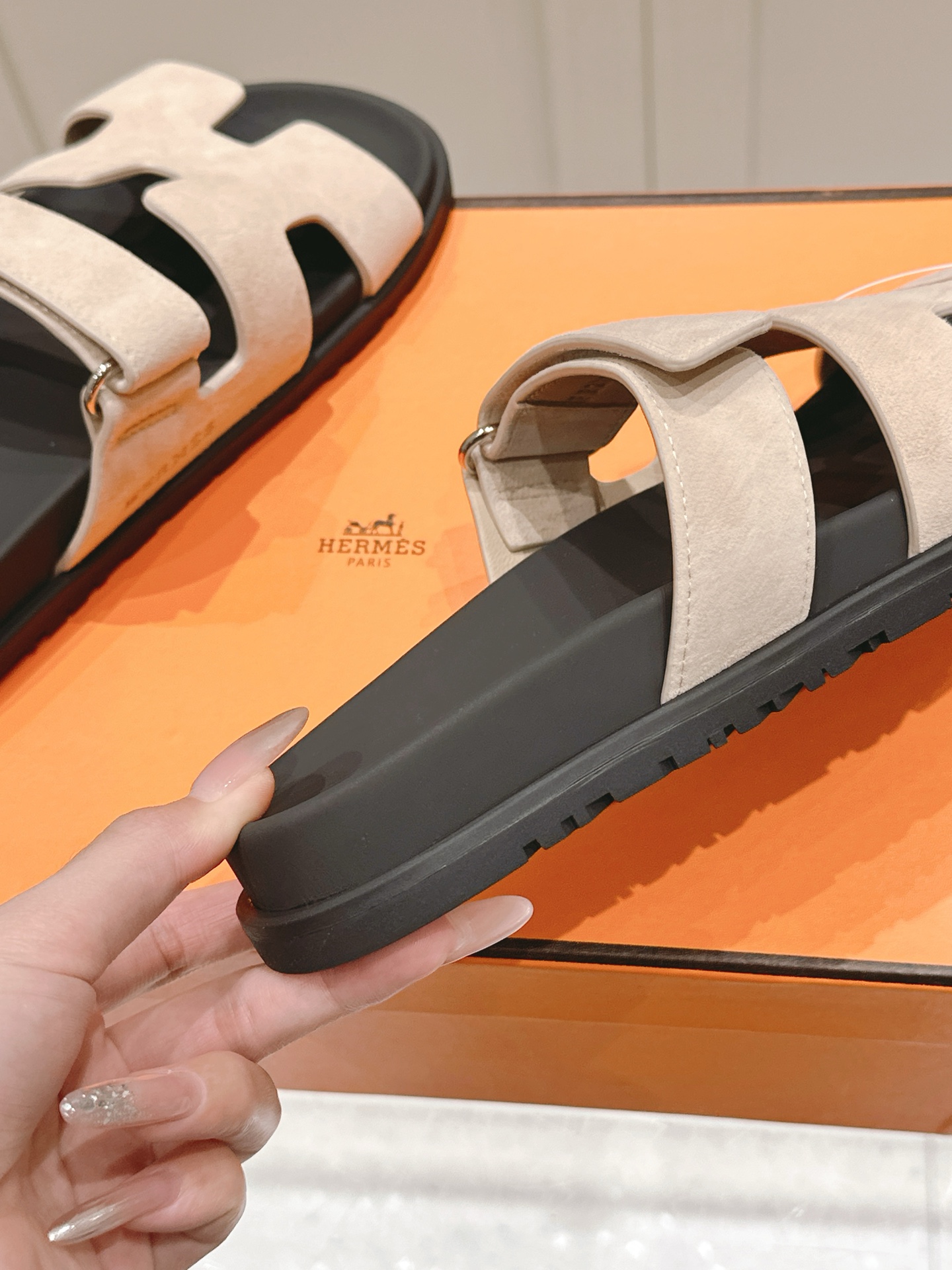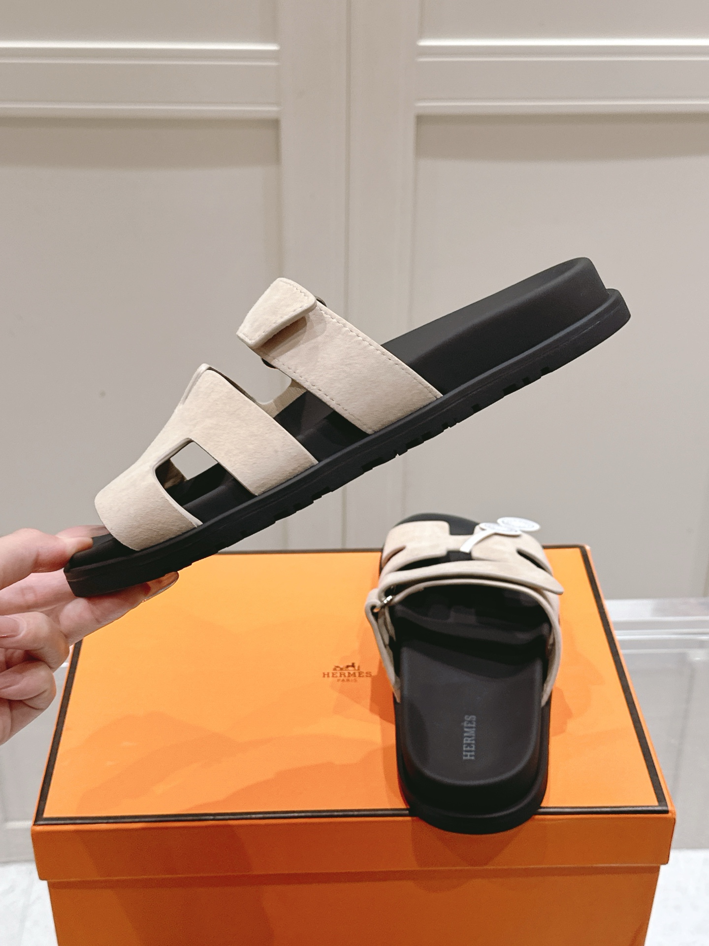 这款鞋子是AAAAA 1:1 质量 (非常棒). 使用了和原版一模一样的材料. 商标部分也保持了和爱马仕/Hermes一样. 图片拍摄是实物鞋子拍摄, 您所收到的实物保证和我们图片一模一样.