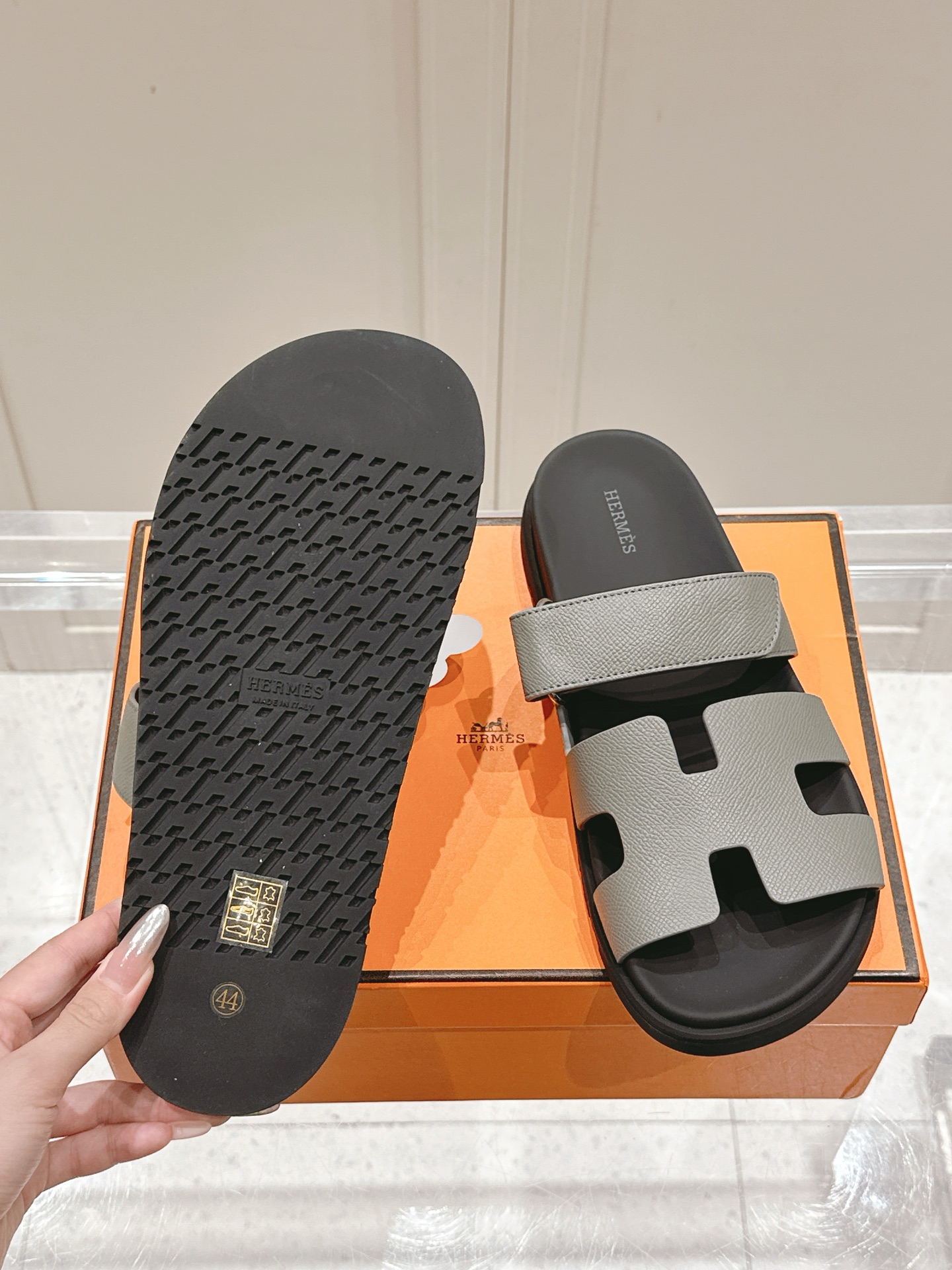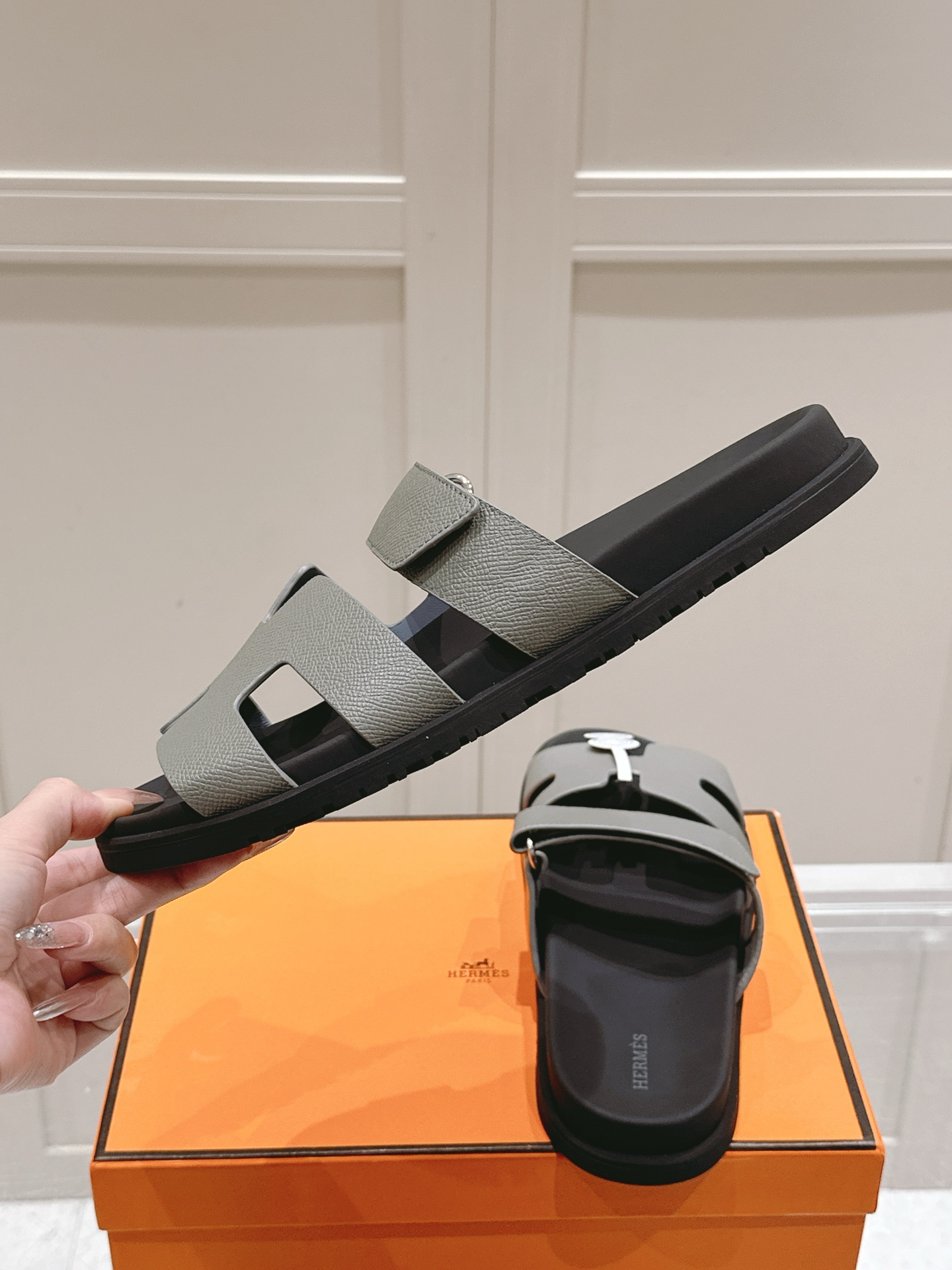 这款鞋子是AAAAA 1:1 质量 (非常棒). 使用了和原版一模一样的材料. 商标部分也保持了和爱马仕/Hermes一样. 图片拍摄是实物鞋子拍摄, 您所收到的实物保证和我们图片一模一样.