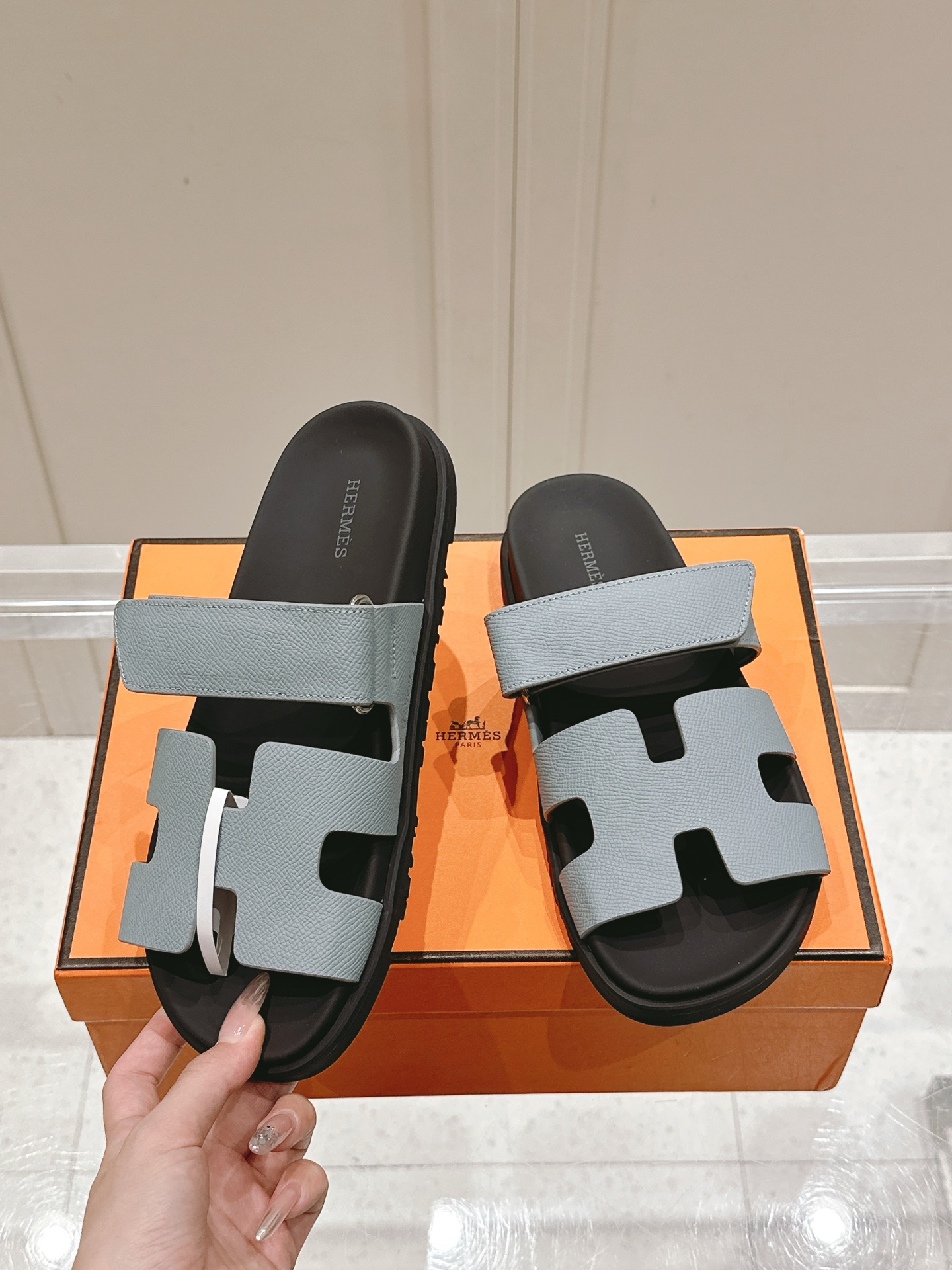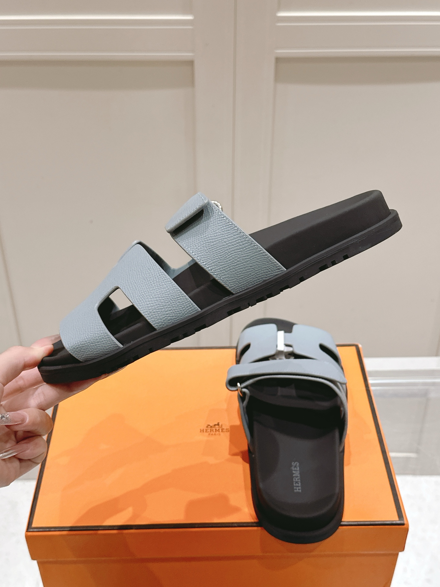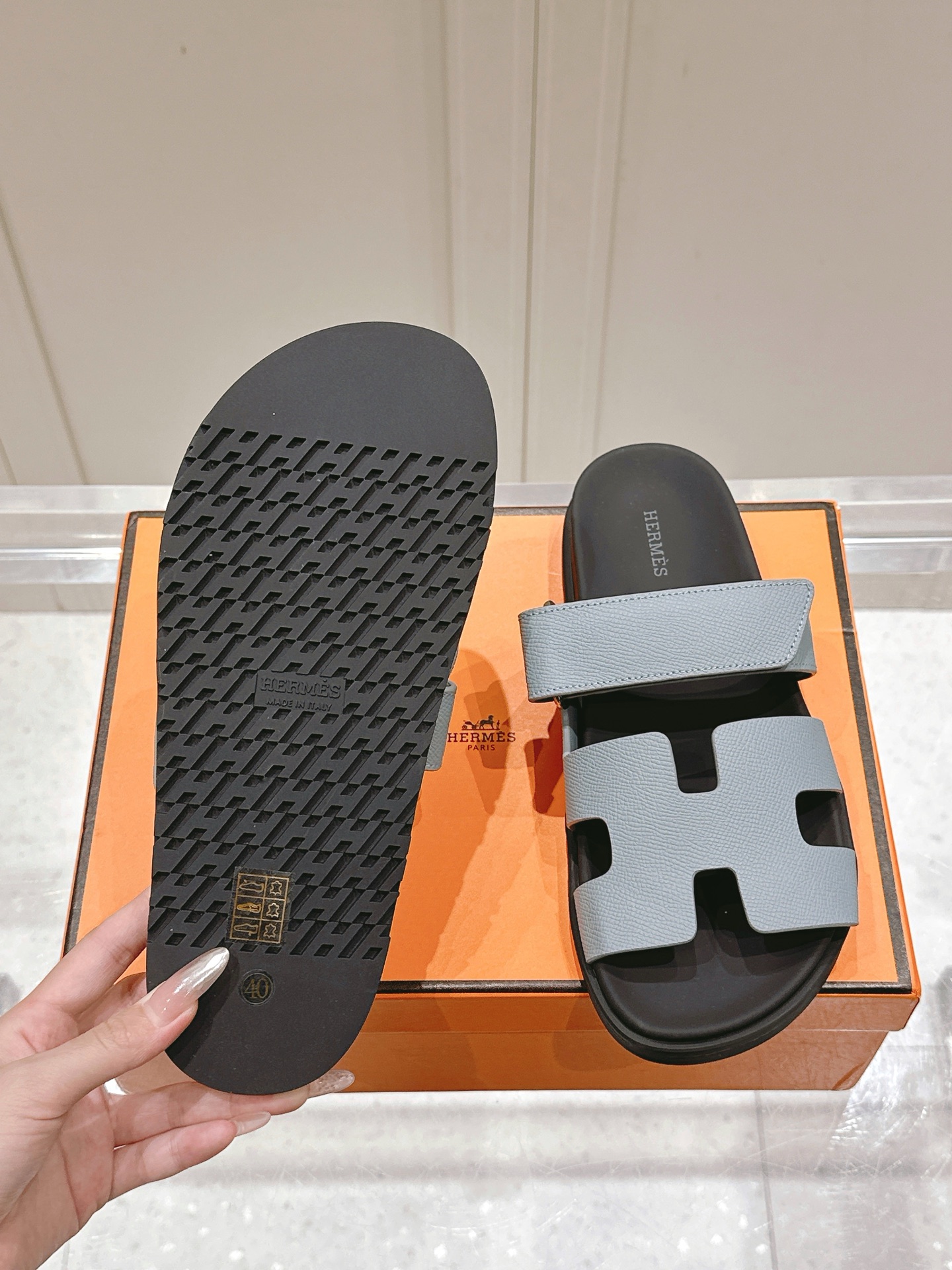 这款鞋子是AAAAA 1:1 质量 (非常棒). 使用了和原版一模一样的材料. 商标部分也保持了和爱马仕/Hermes一样. 图片拍摄是实物鞋子拍摄, 您所收到的实物保证和我们图片一模一样.