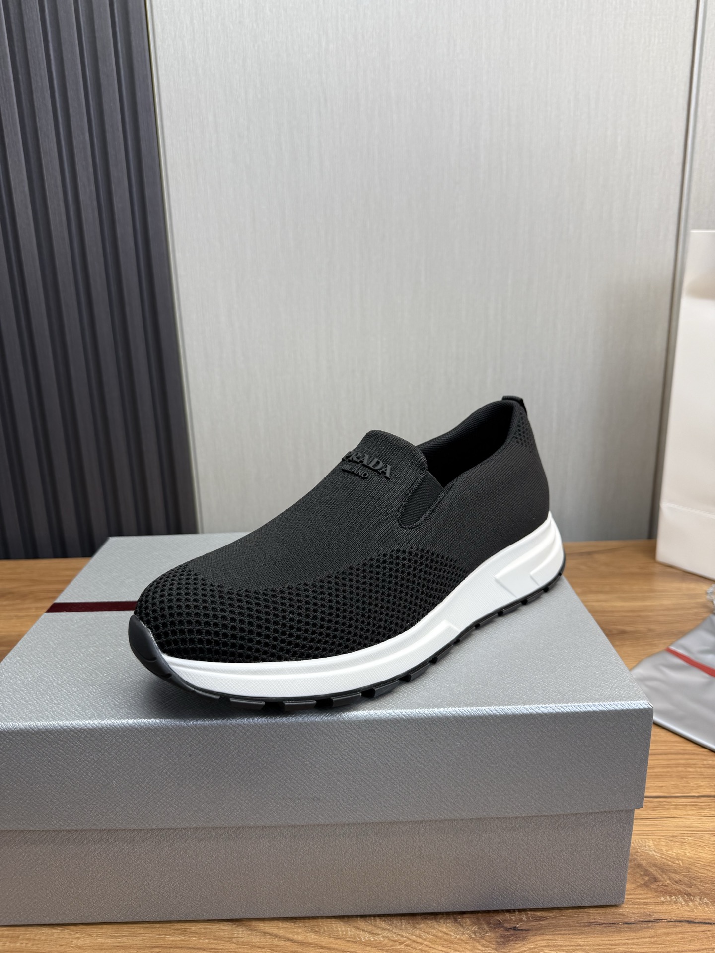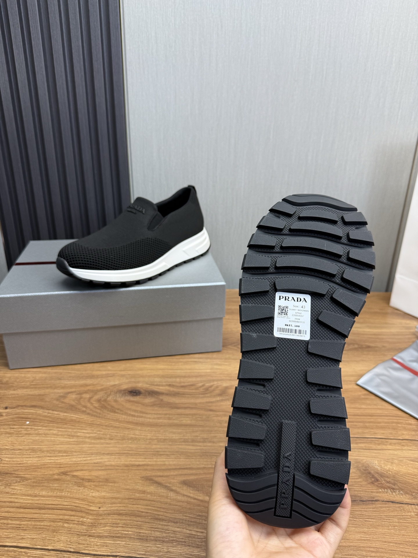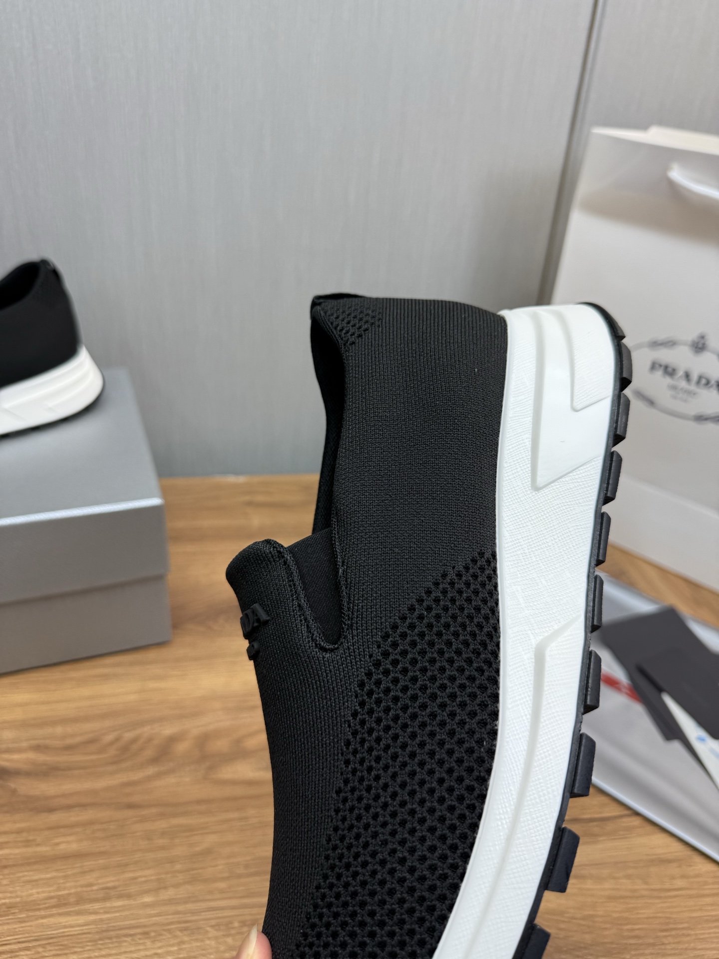 这款鞋子是AAAAA 1:1 质量 (非常棒). 使用了和原版一模一样的材料. 商标部分也保持了和普拉达/Prada一样. 图片拍摄是实物鞋子拍摄, 您所收到的实物保证和我们图片一模一样.