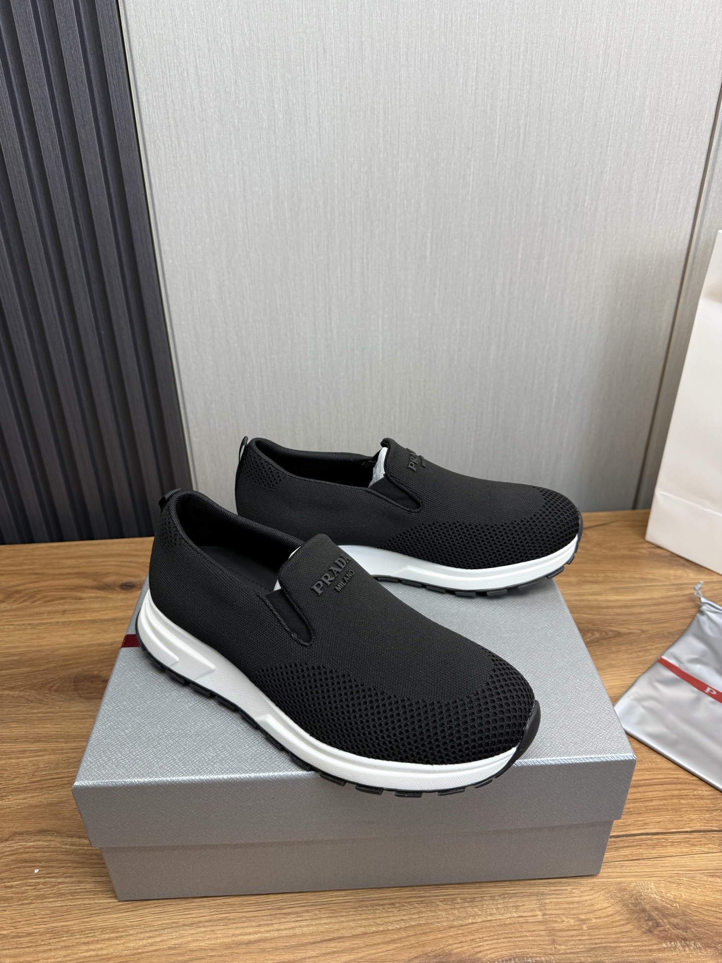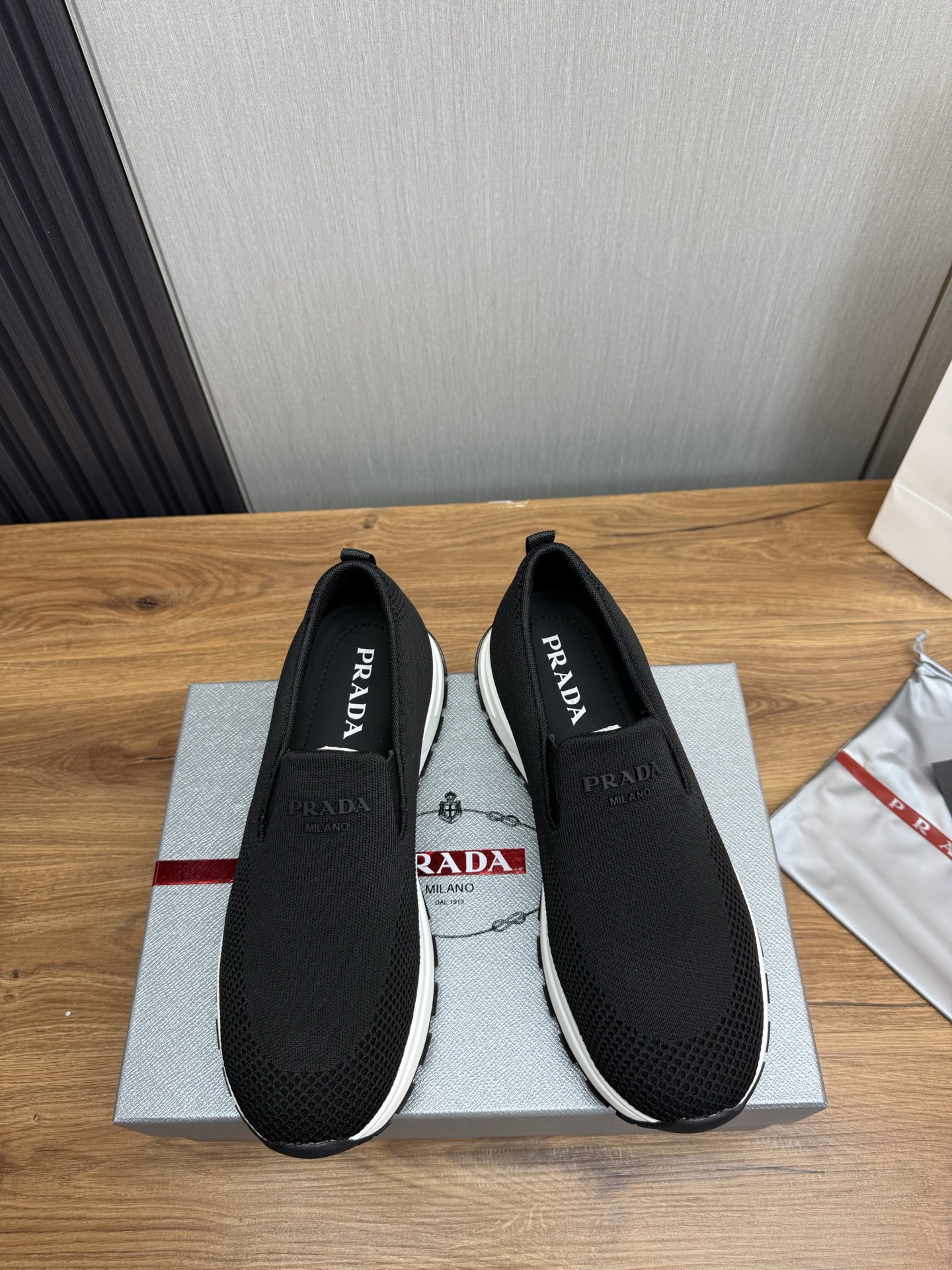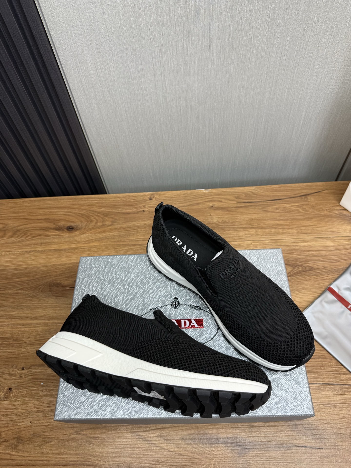 这款鞋子是AAAAA 1:1 质量 (非常棒). 使用了和原版一模一样的材料. 商标部分也保持了和普拉达/Prada一样. 图片拍摄是实物鞋子拍摄, 您所收到的实物保证和我们图片一模一样.