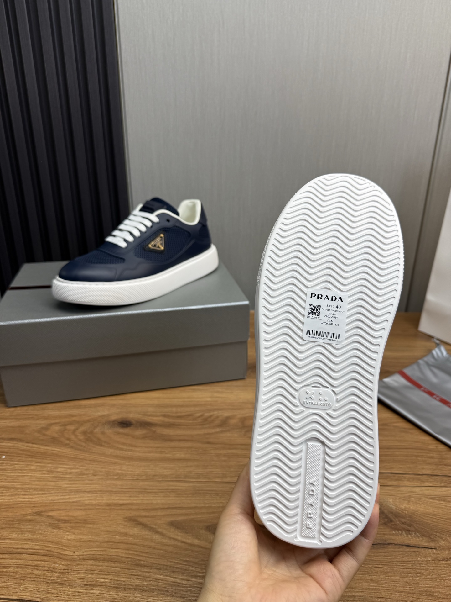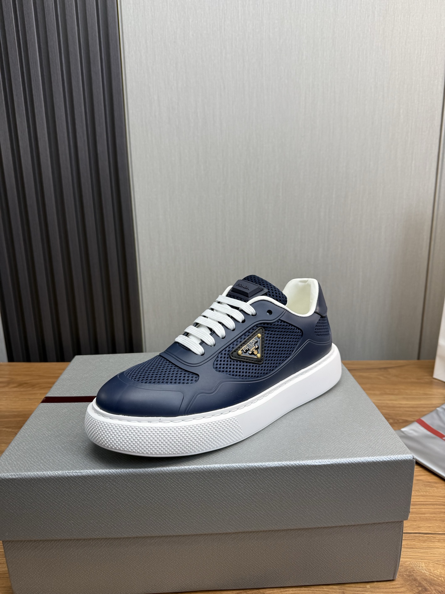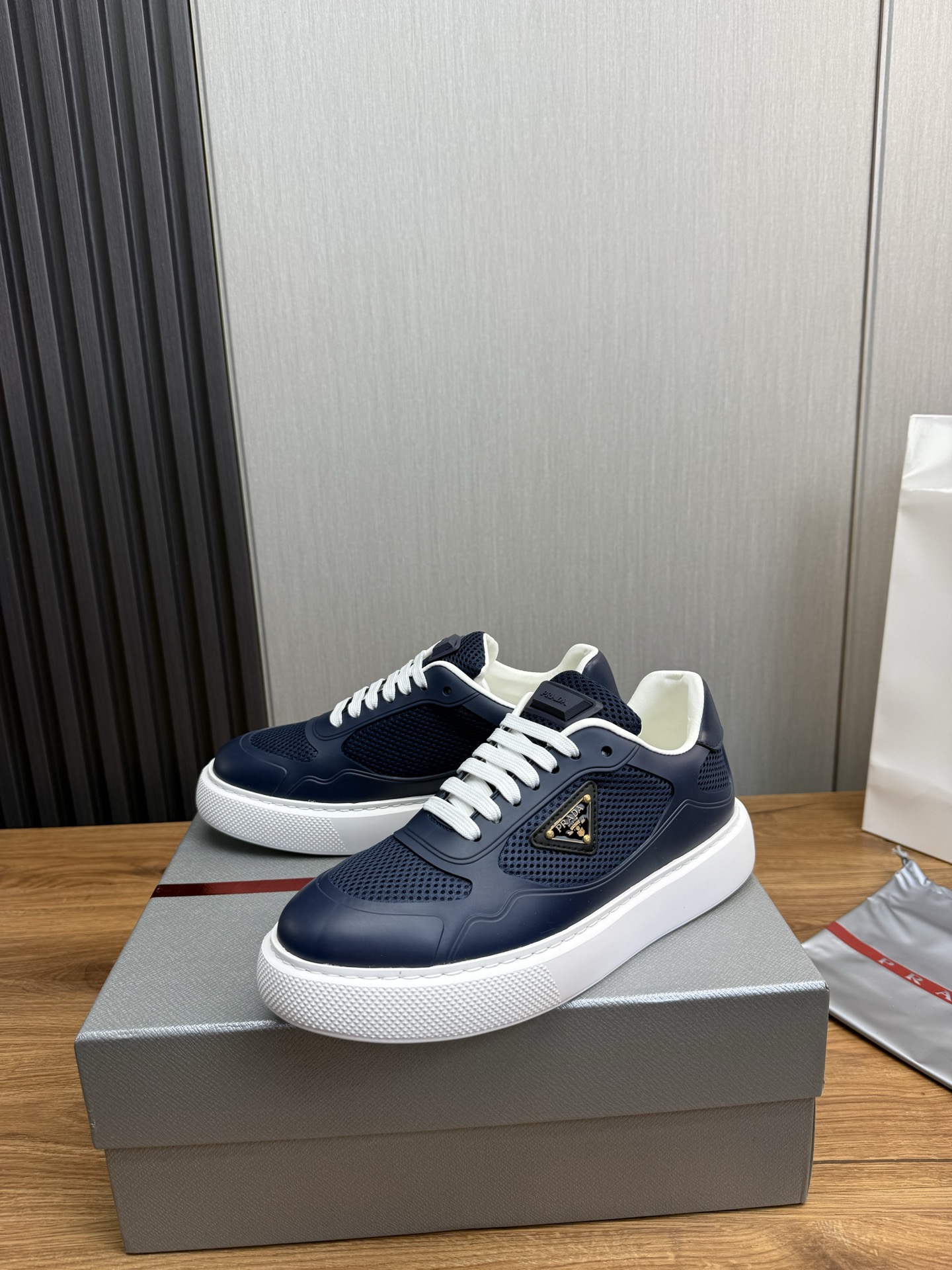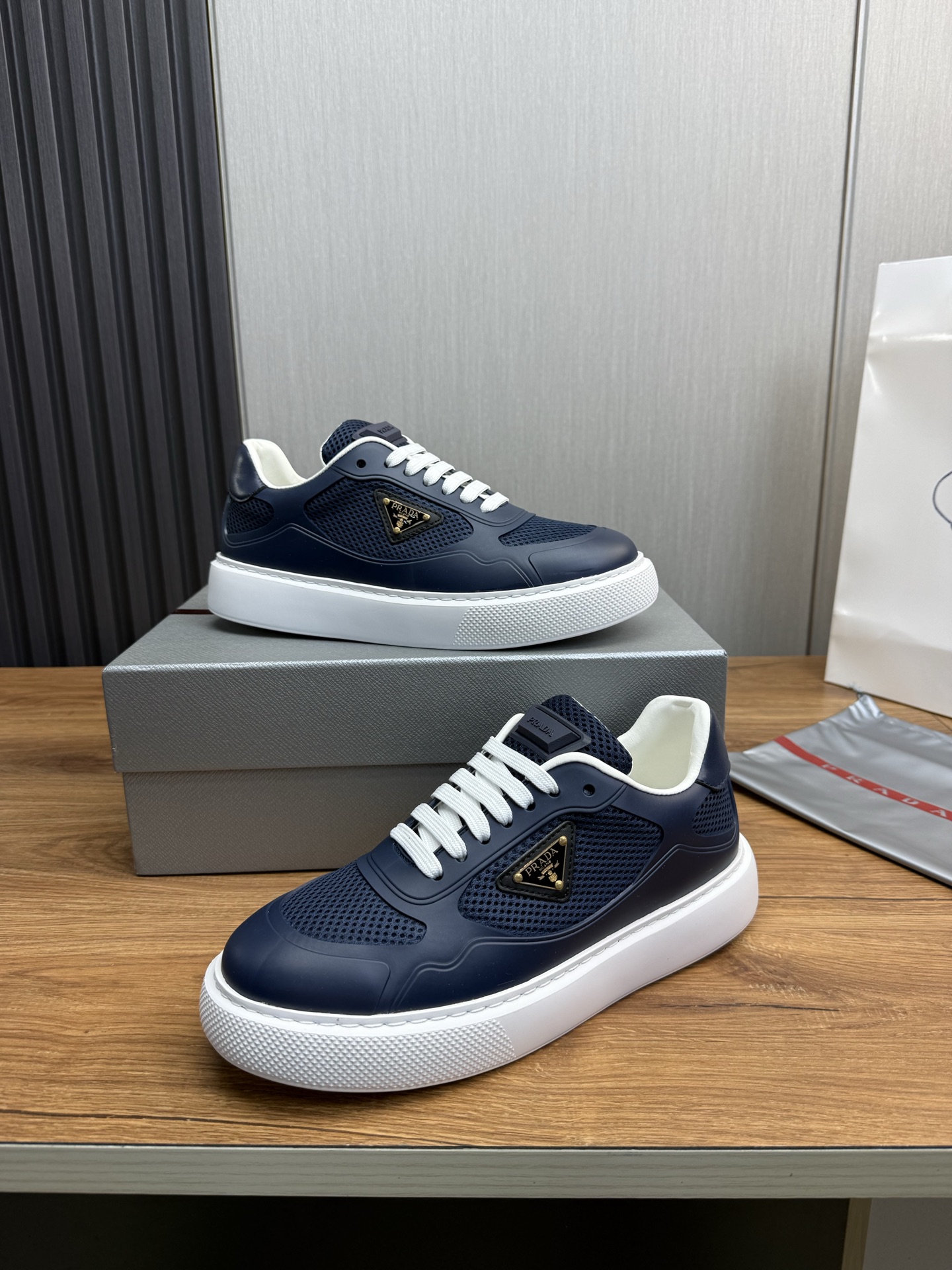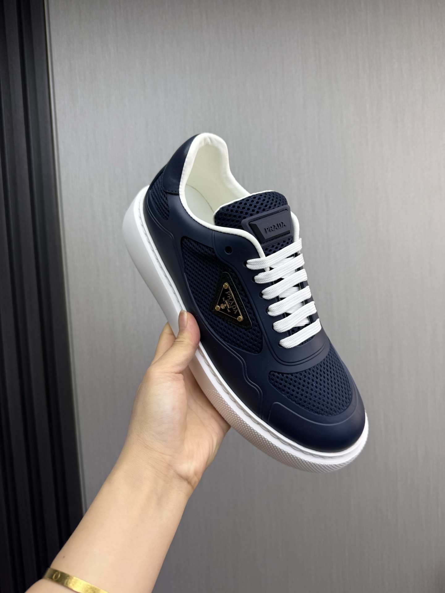 这款鞋子是AAAAA 1:1 质量 (非常棒). 使用了和原版一模一样的材料. 商标部分也保持了和普拉达/Prada一样. 图片拍摄是实物鞋子拍摄, 您所收到的实物保证和我们图片一模一样.