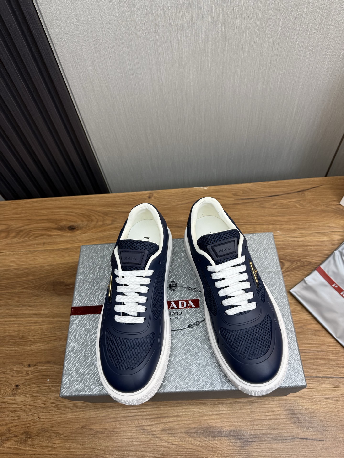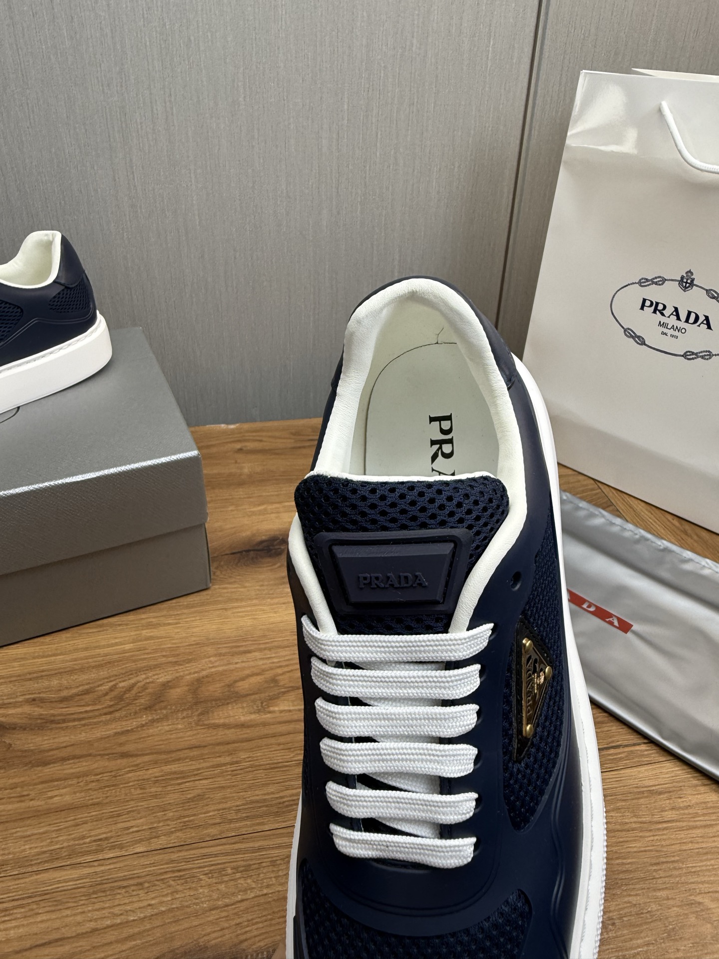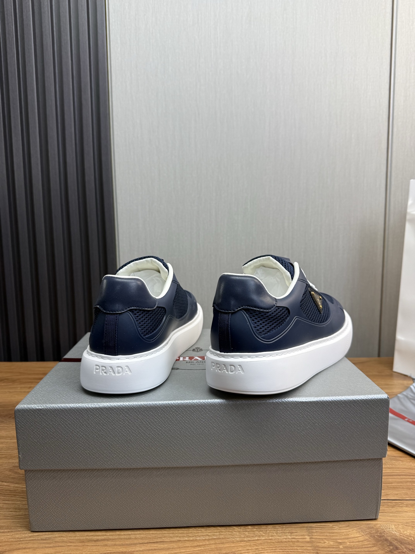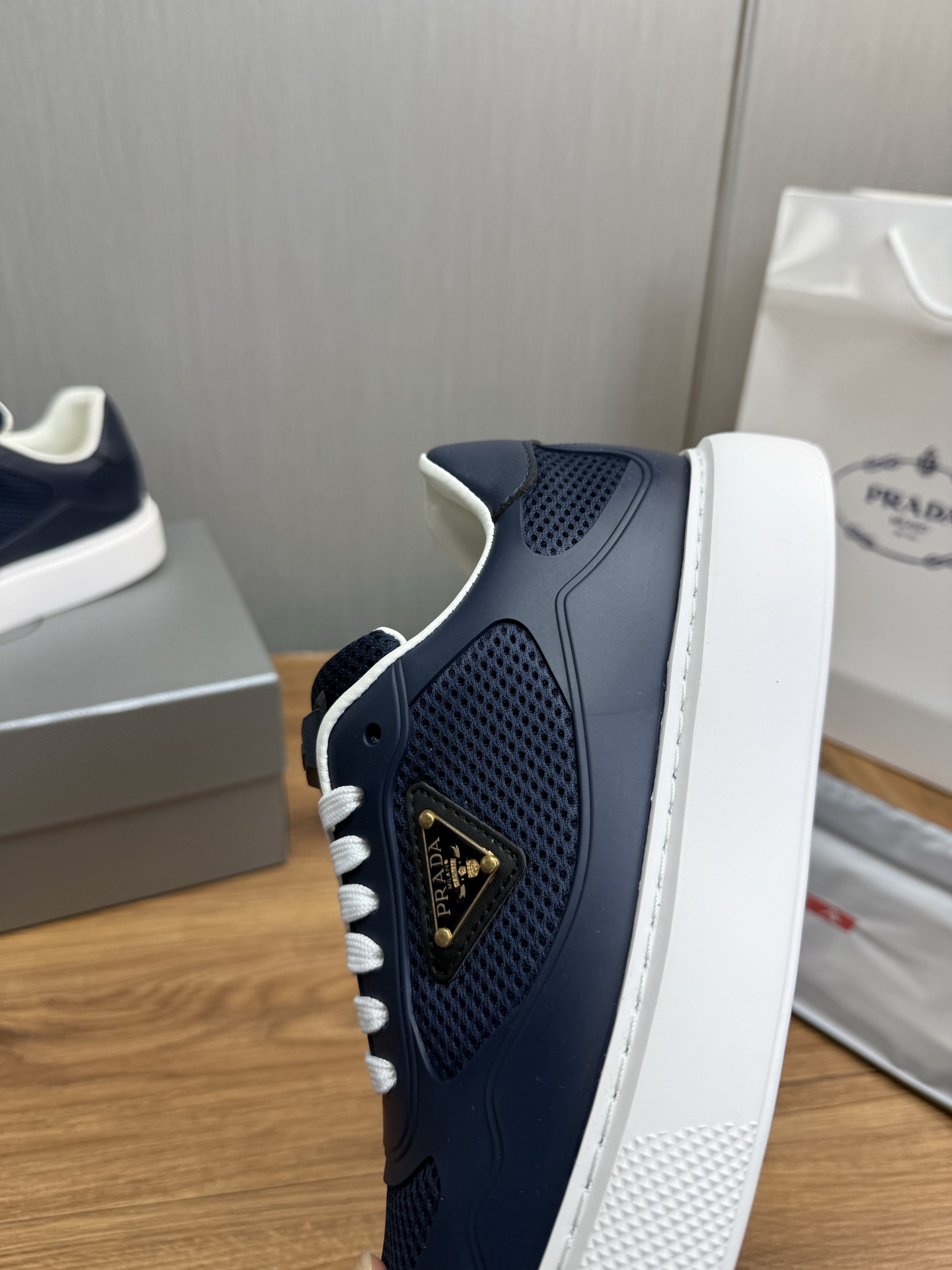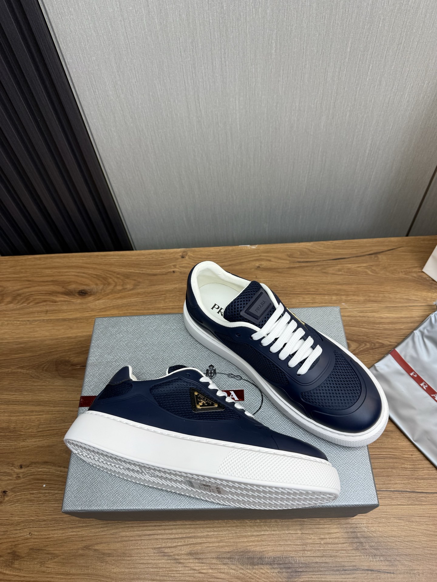 这款鞋子是AAAAA 1:1 质量 (非常棒). 使用了和原版一模一样的材料. 商标部分也保持了和普拉达/Prada一样. 图片拍摄是实物鞋子拍摄, 您所收到的实物保证和我们图片一模一样.