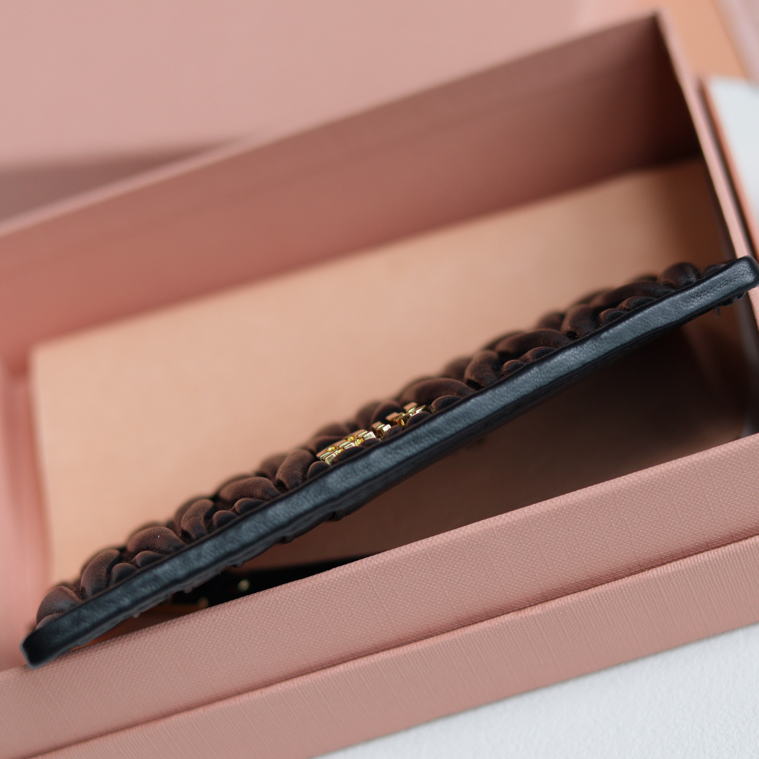 这款包包是AAAAA 1:1 质量 (非常棒). 使用了和原版一模一样的材料. 商标部分也保持了和缪缪/Miu Miu一样. 图片拍摄是实物包包拍摄, 您所收到的实物保证和我们图片一模一样.