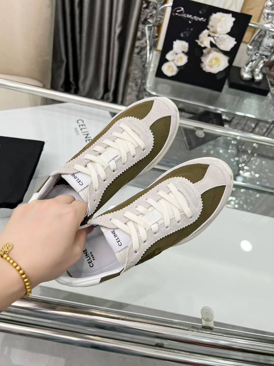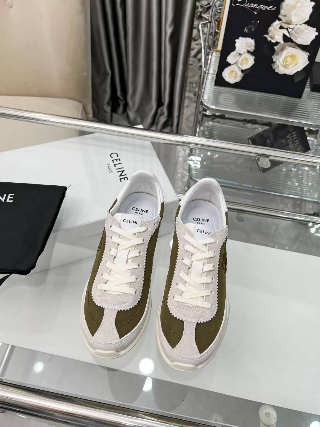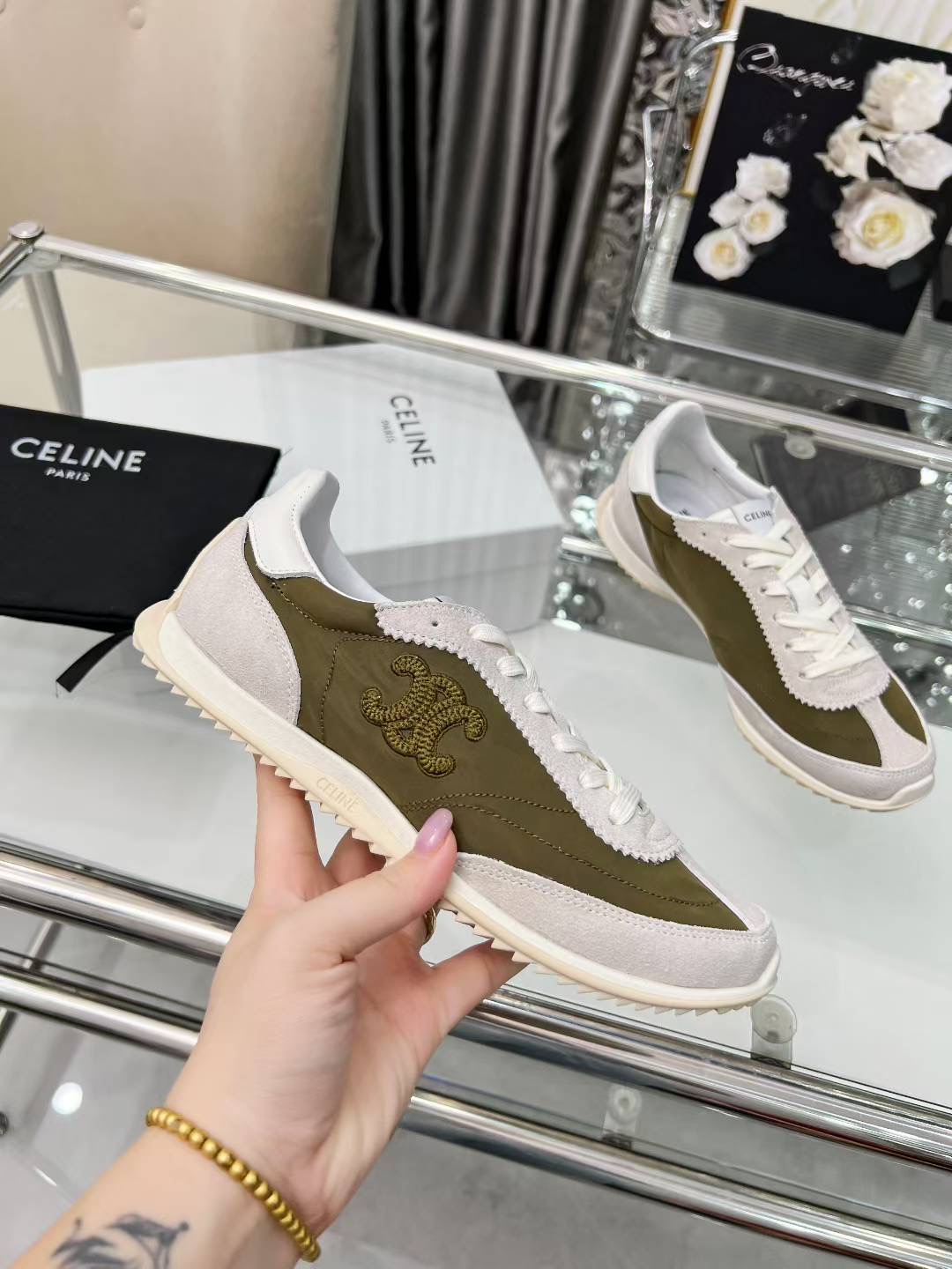 这款鞋子是AAAAA 1:1 质量 (非常棒). 使用了和原版一模一样的材料. 商标部分也保持了和思琳/Celine一样. 图片拍摄是实物鞋子拍摄, 您所收到的实物保证和我们图片一模一样.